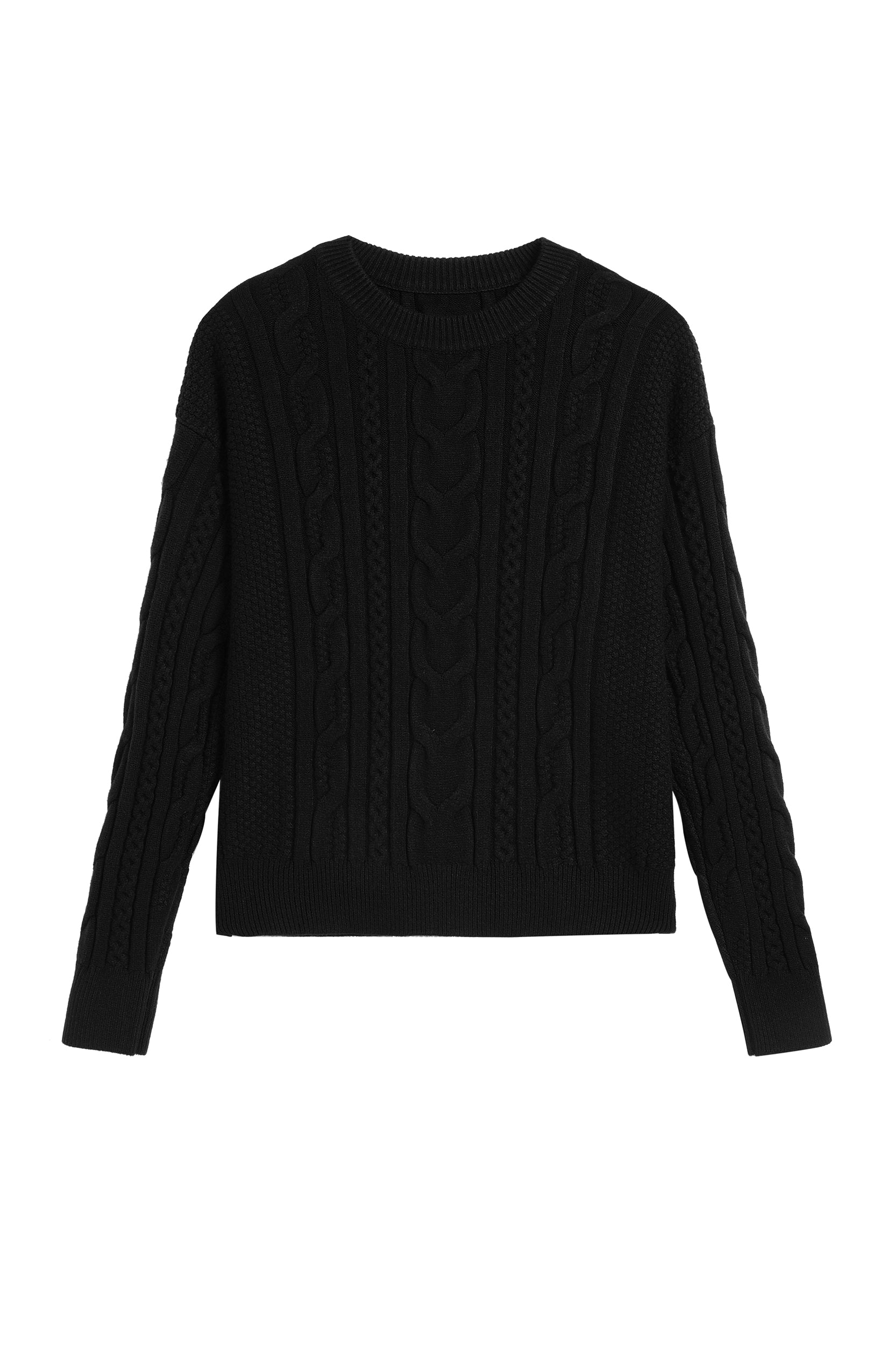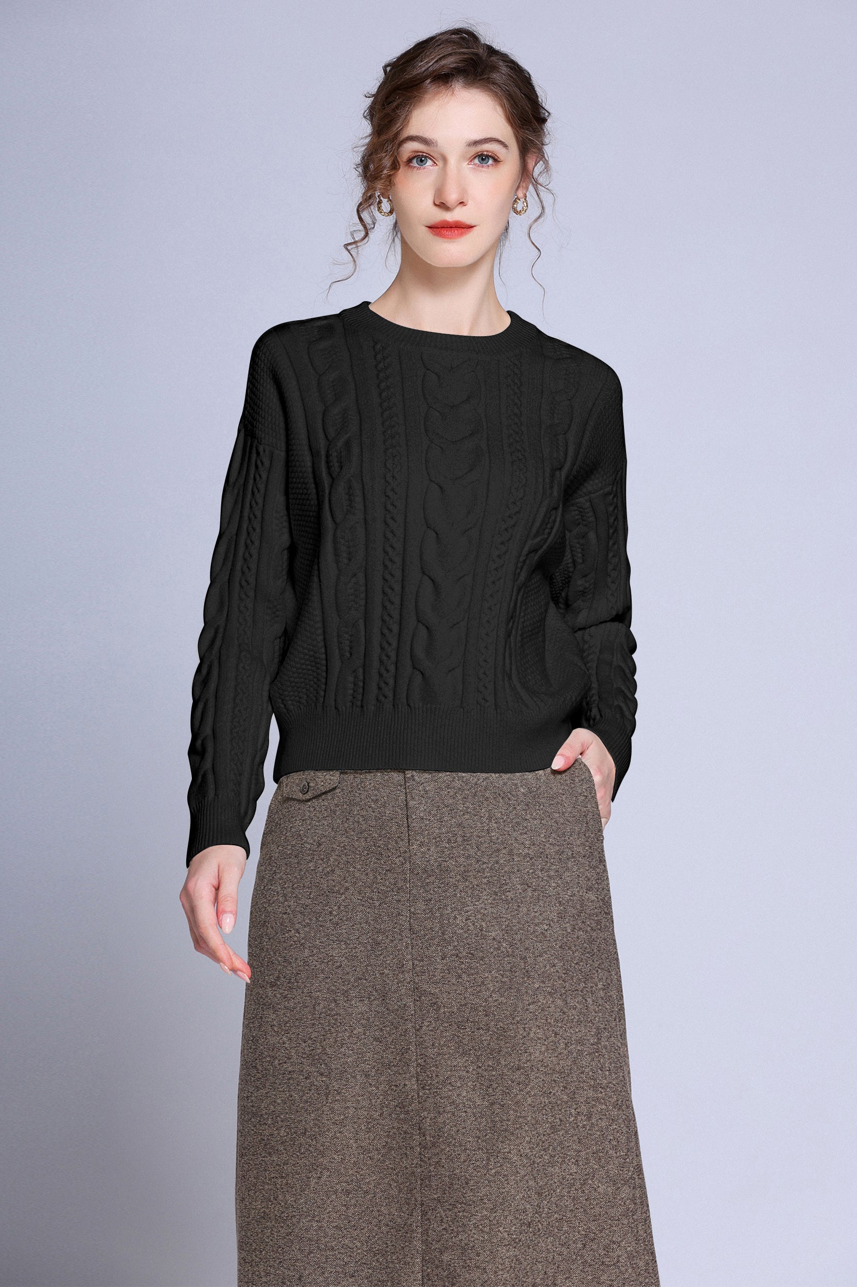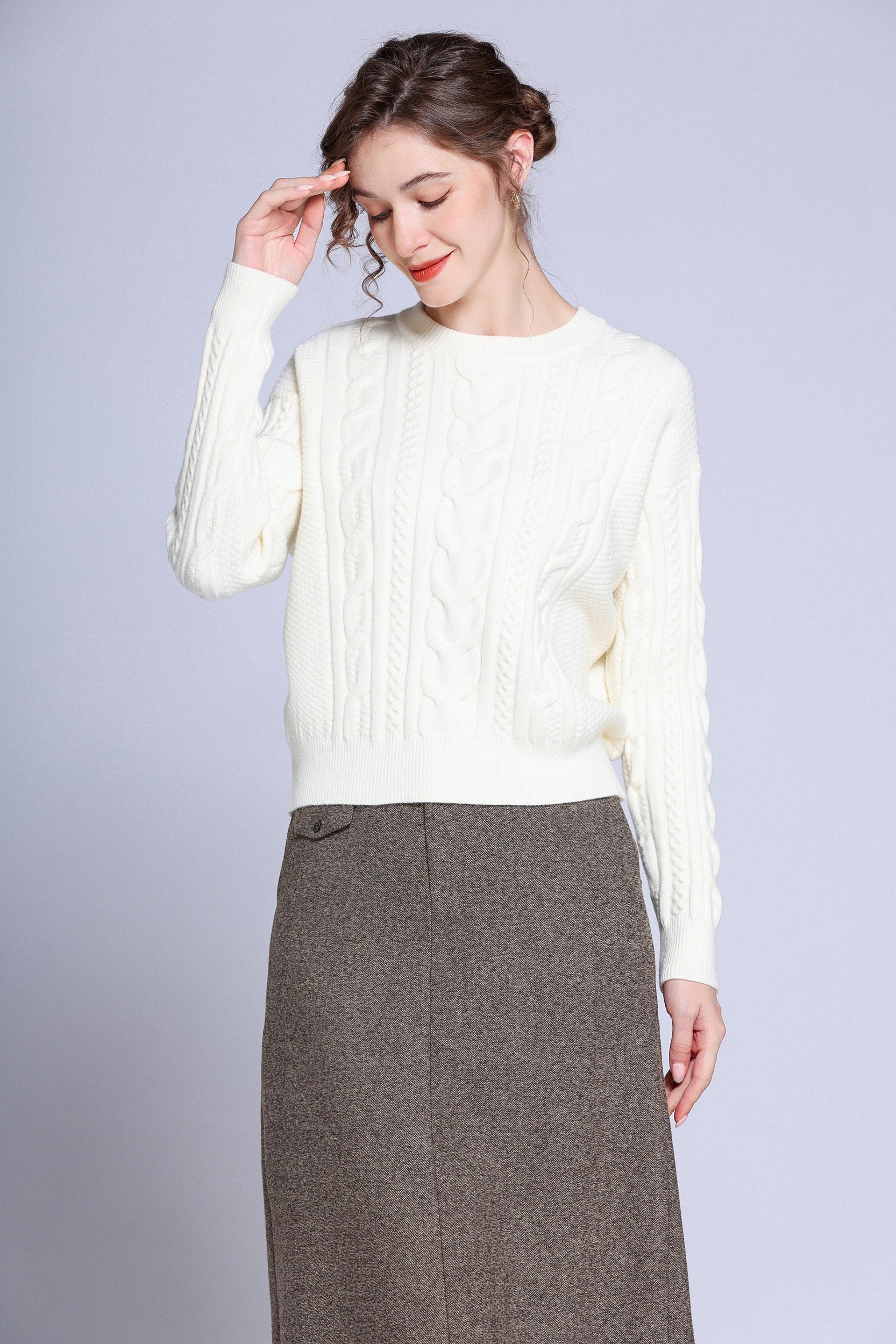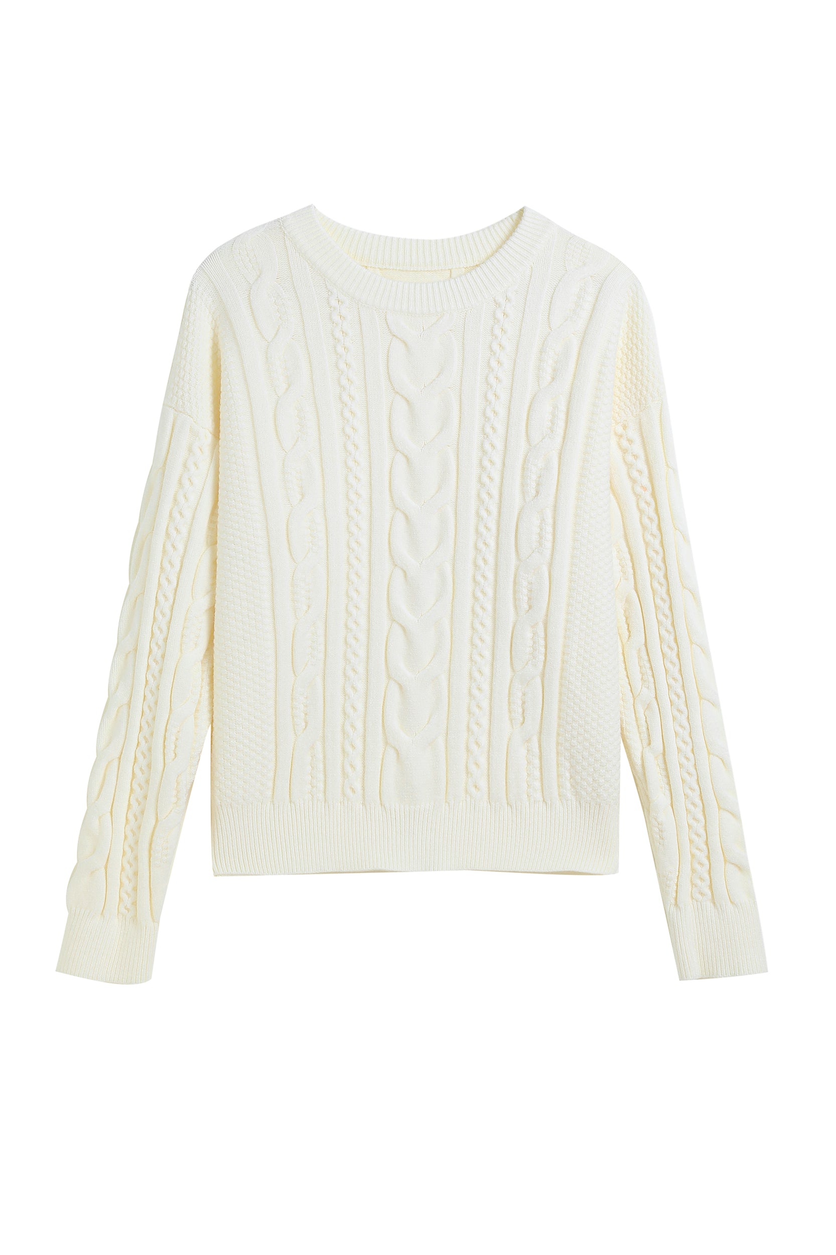 Embrace the cozy charm of this sweater. Featuring a timeless cable-knit design and a relaxed fit, it provides warmth without compromising on style. The soft fabric ensures comfort, making it ideal for cool weather layering or standalone wear.
