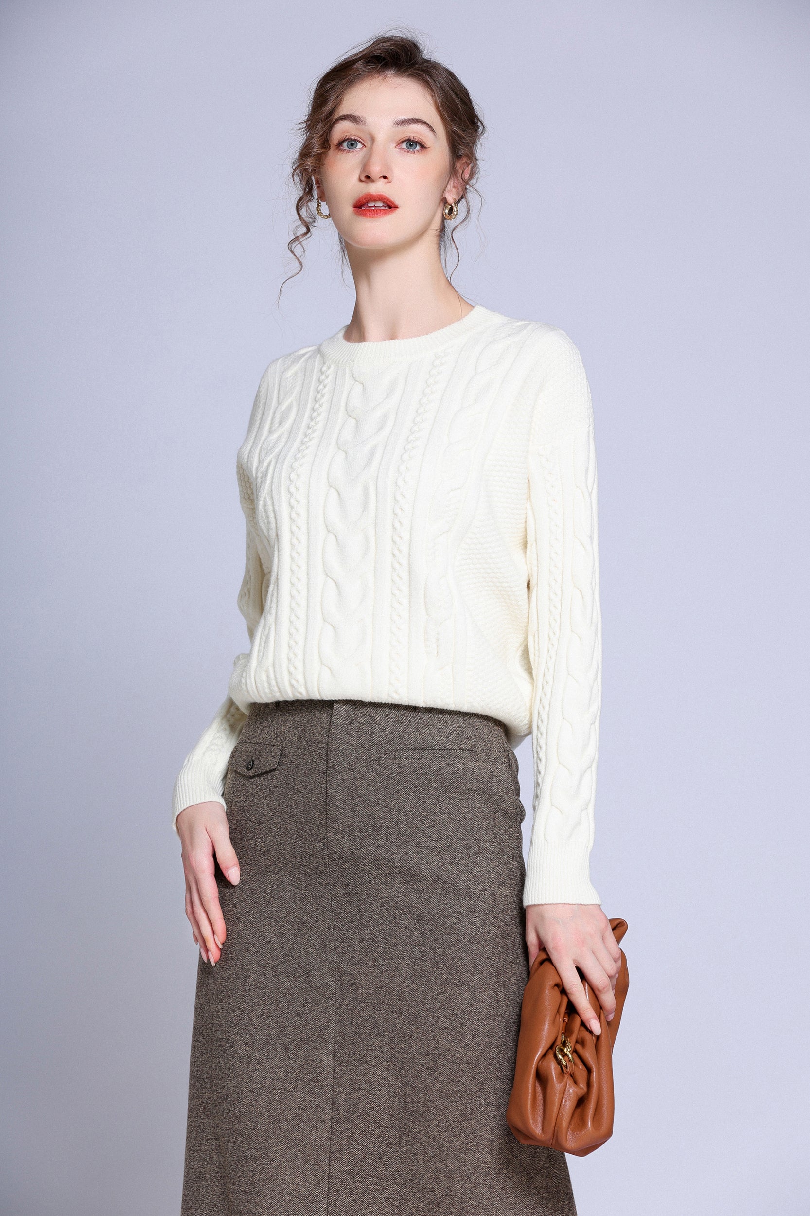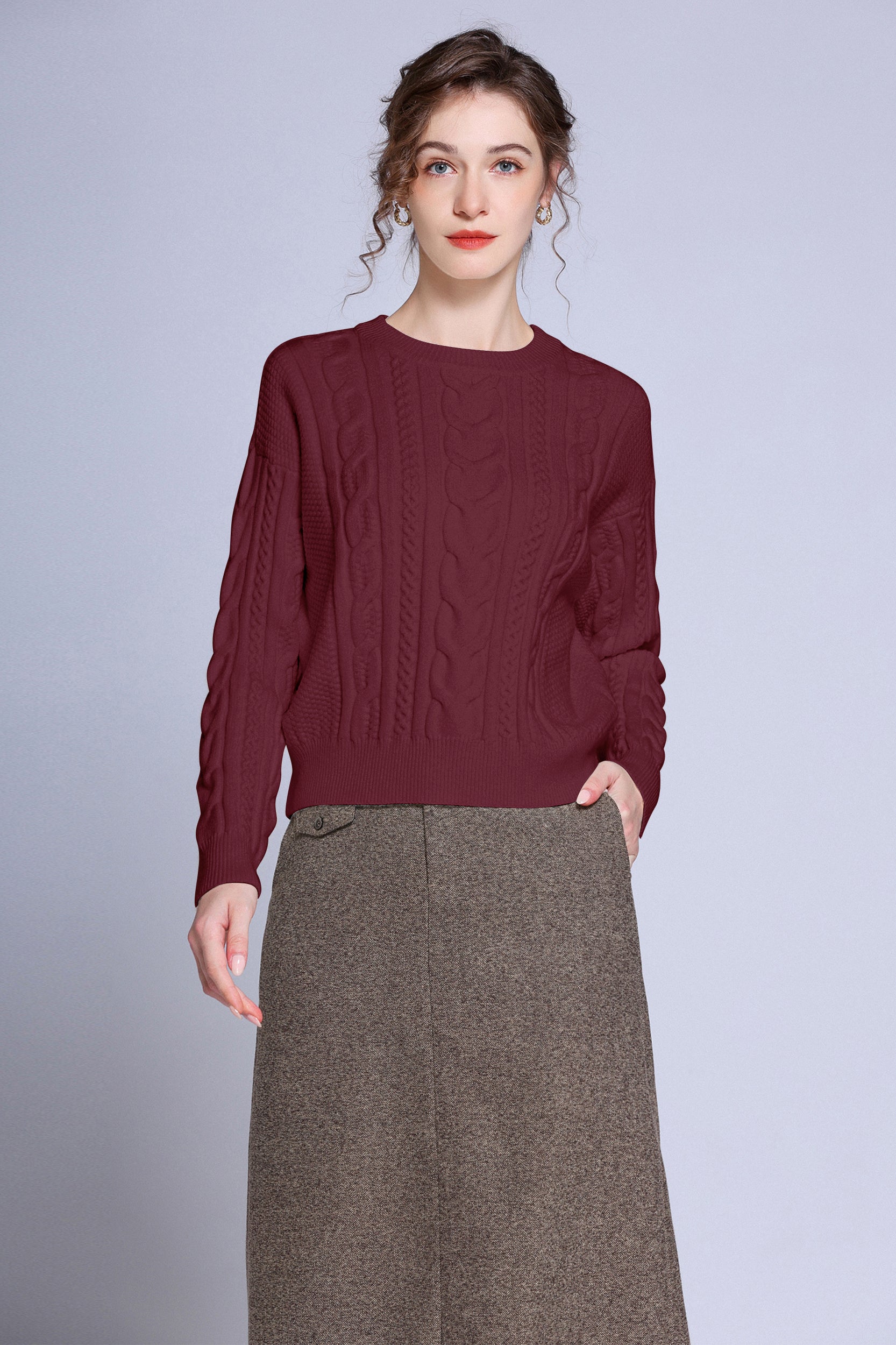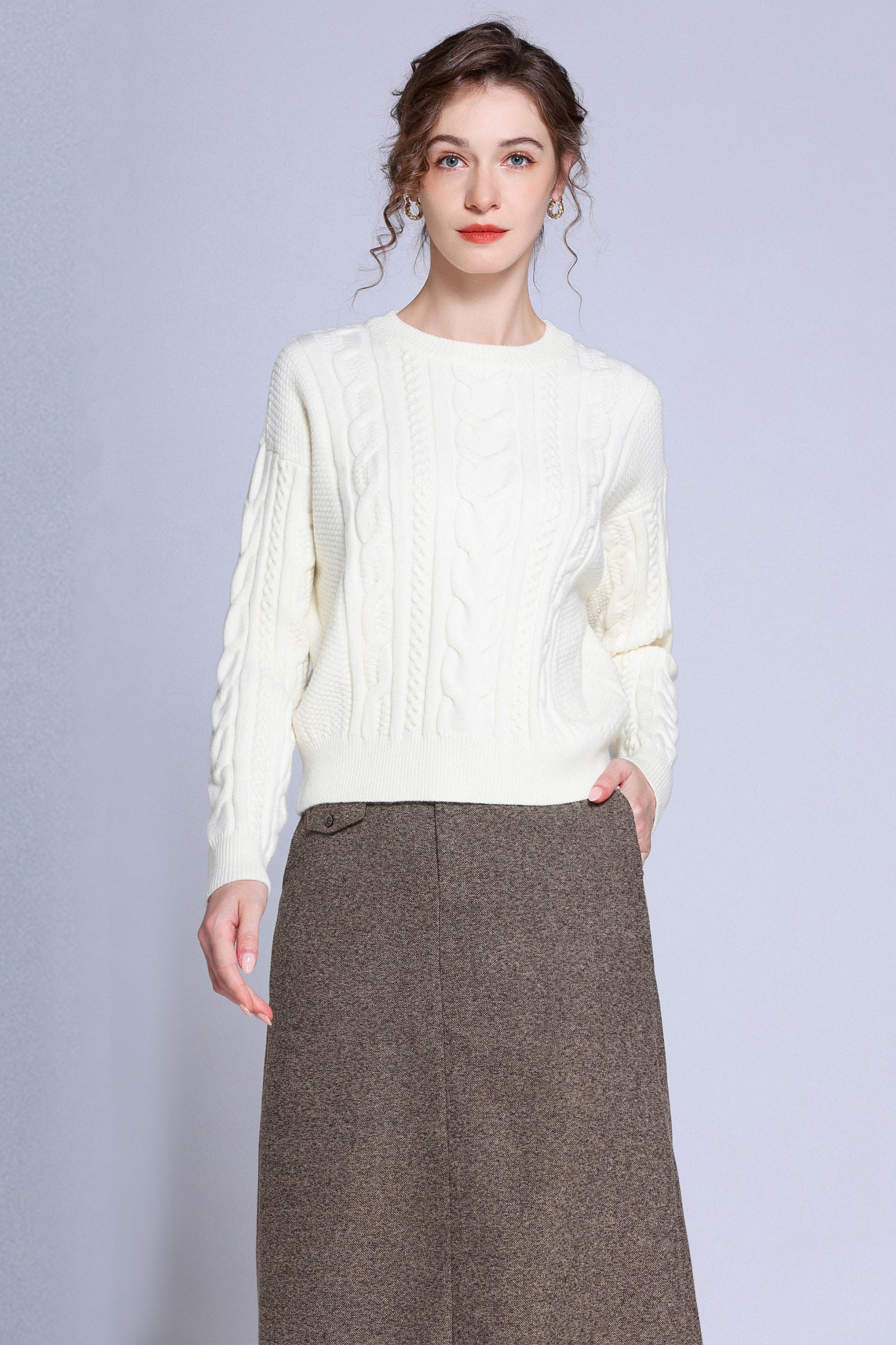 Embrace the cozy charm of this sweater. Featuring a timeless cable-knit design and a relaxed fit, it provides warmth without compromising on style. The soft fabric ensures comfort, making it ideal for cool weather layering or standalone wear.