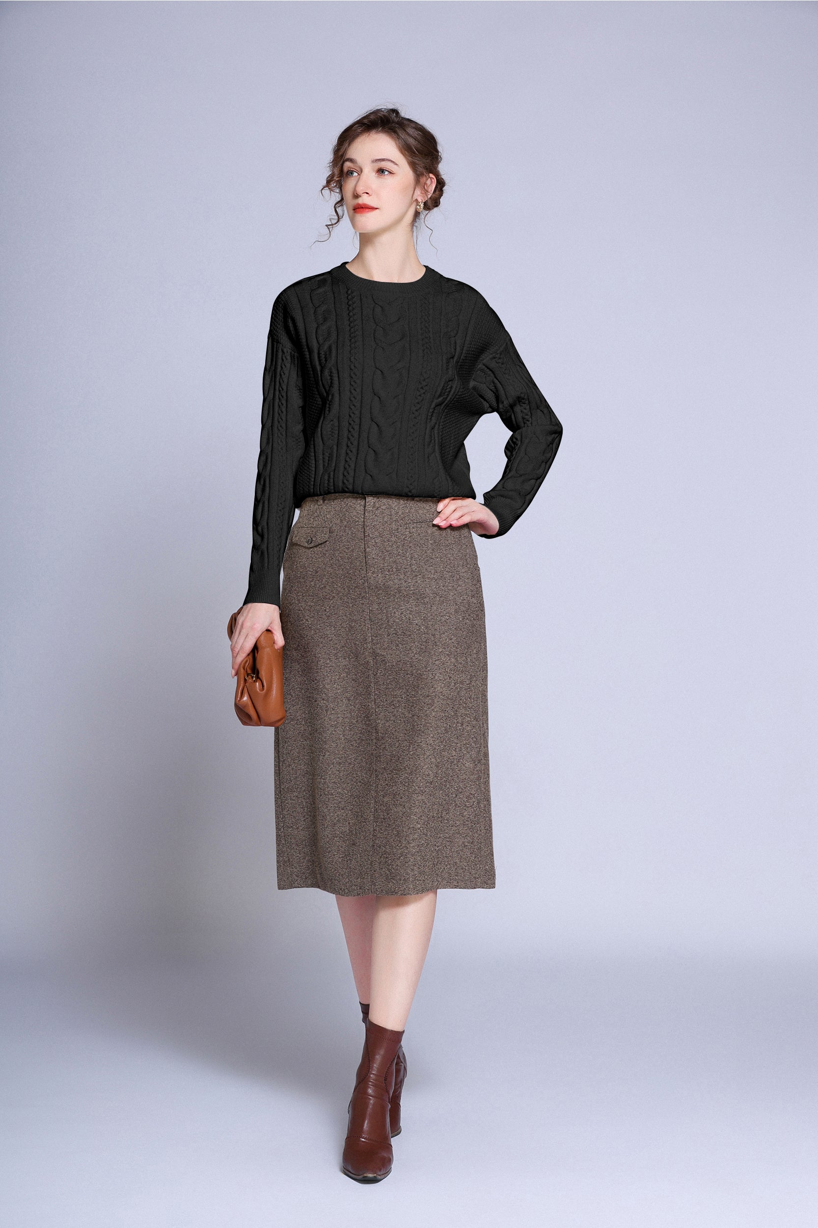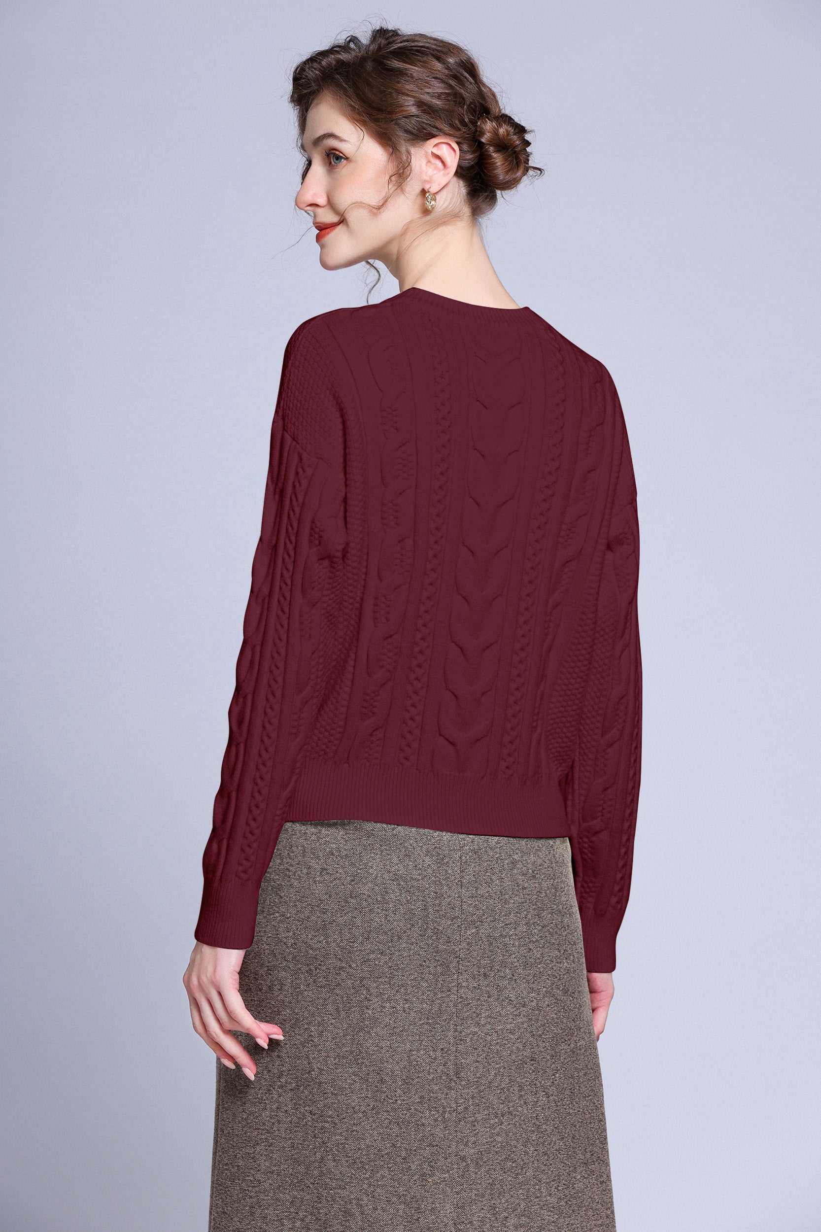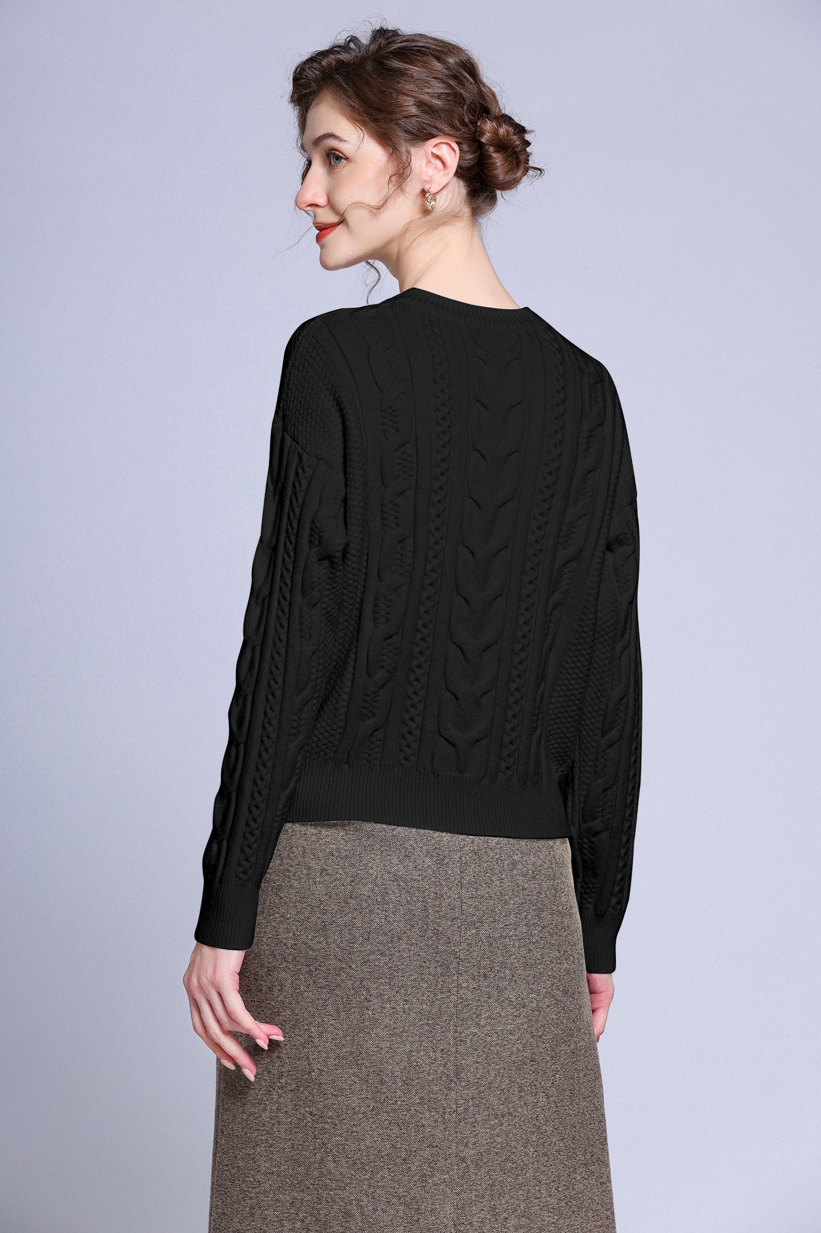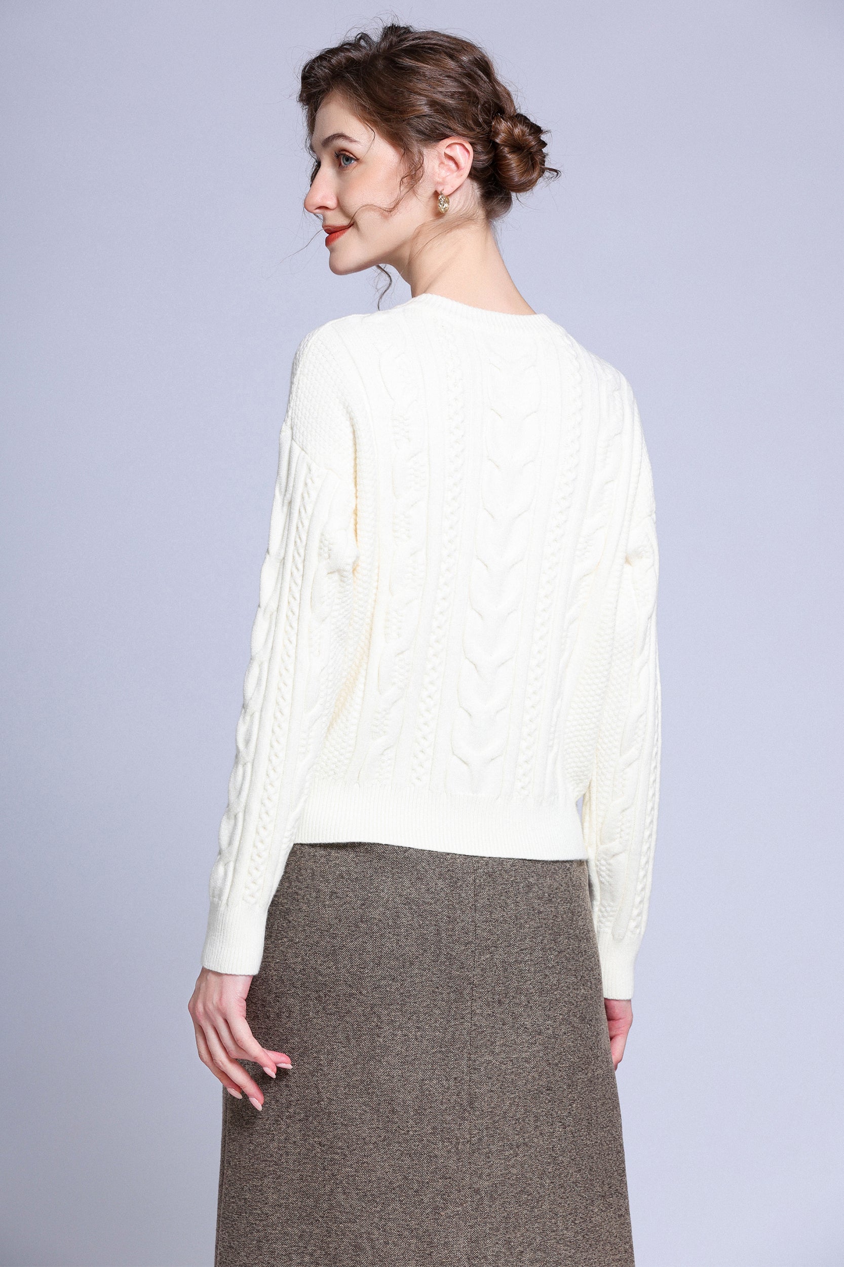 Embrace the cozy charm of this sweater. Featuring a timeless cable-knit design and a relaxed fit, it provides warmth without compromising on style. The soft fabric ensures comfort, making it ideal for cool weather layering or standalone wear.