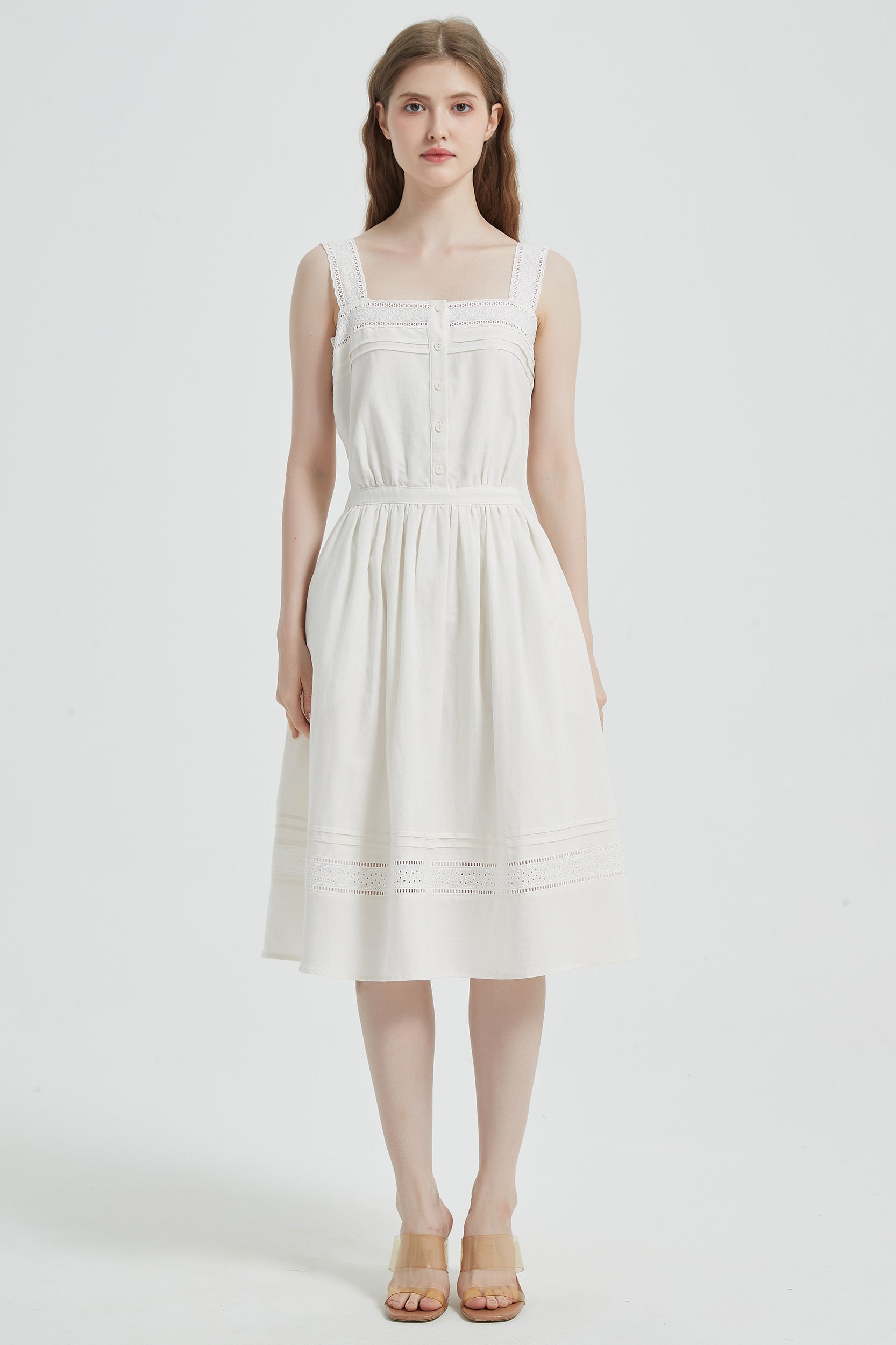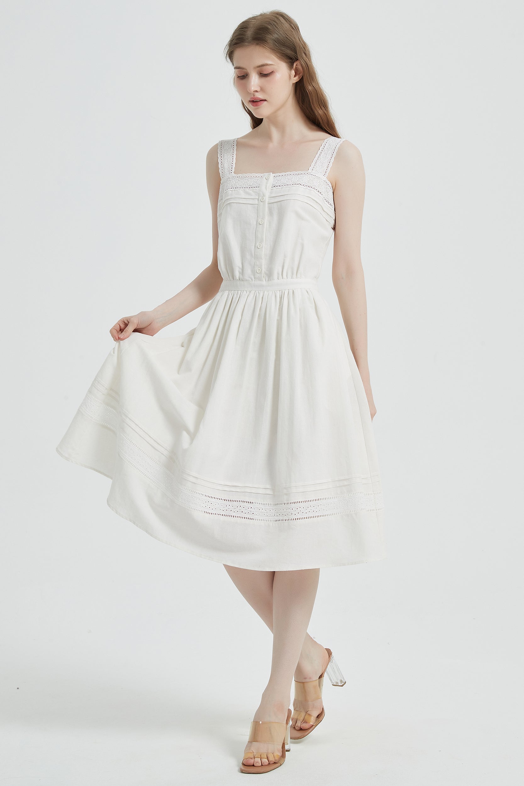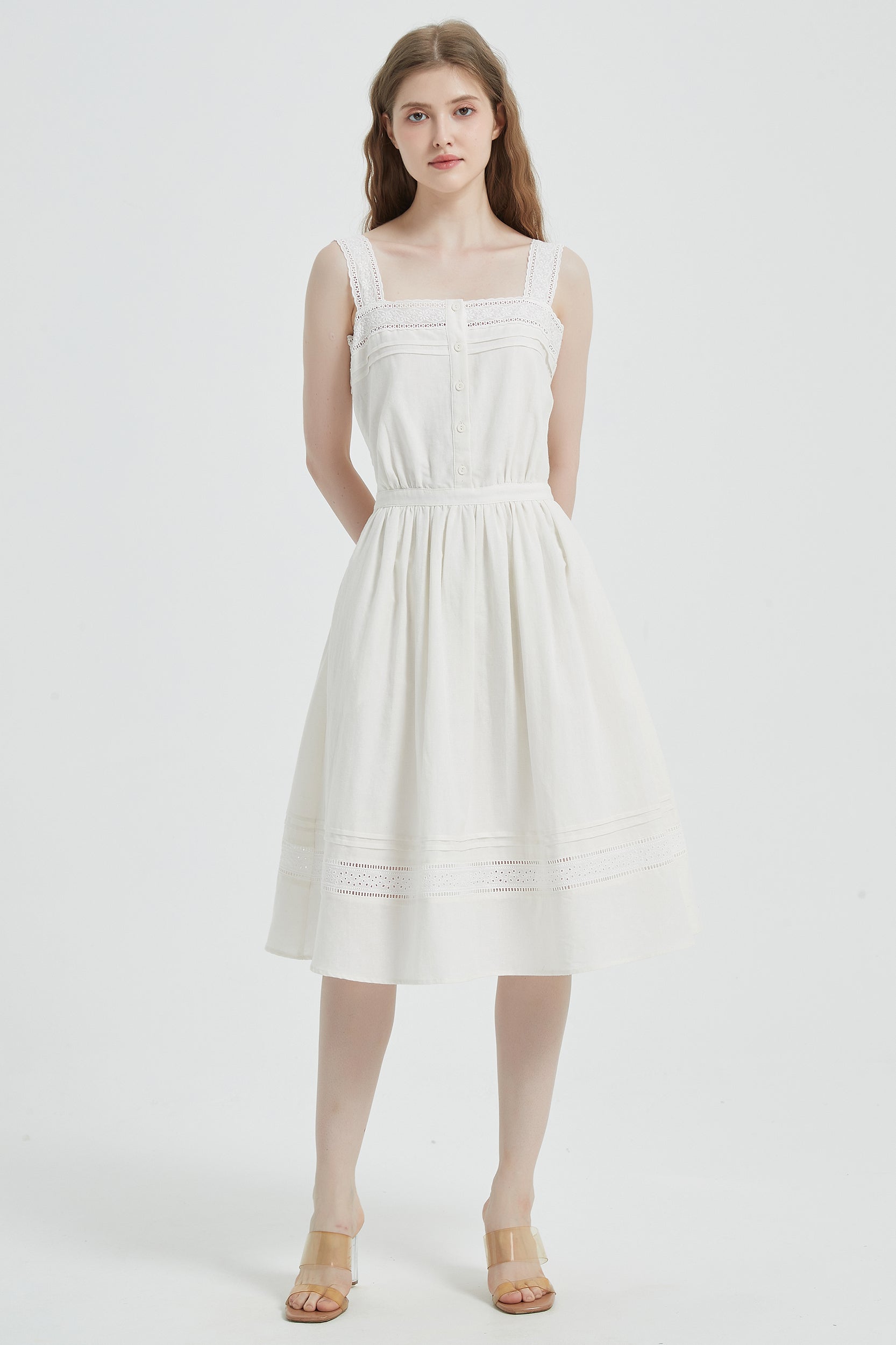 Add a touch of refinement to your collection with the dress. Featuring delicate embroidery and functional buttons, it includes a flowy A-line skirt and functional pockets. Made from luxuriously soft, flowy, and breathable fabric, it ensures both style and comfort.
