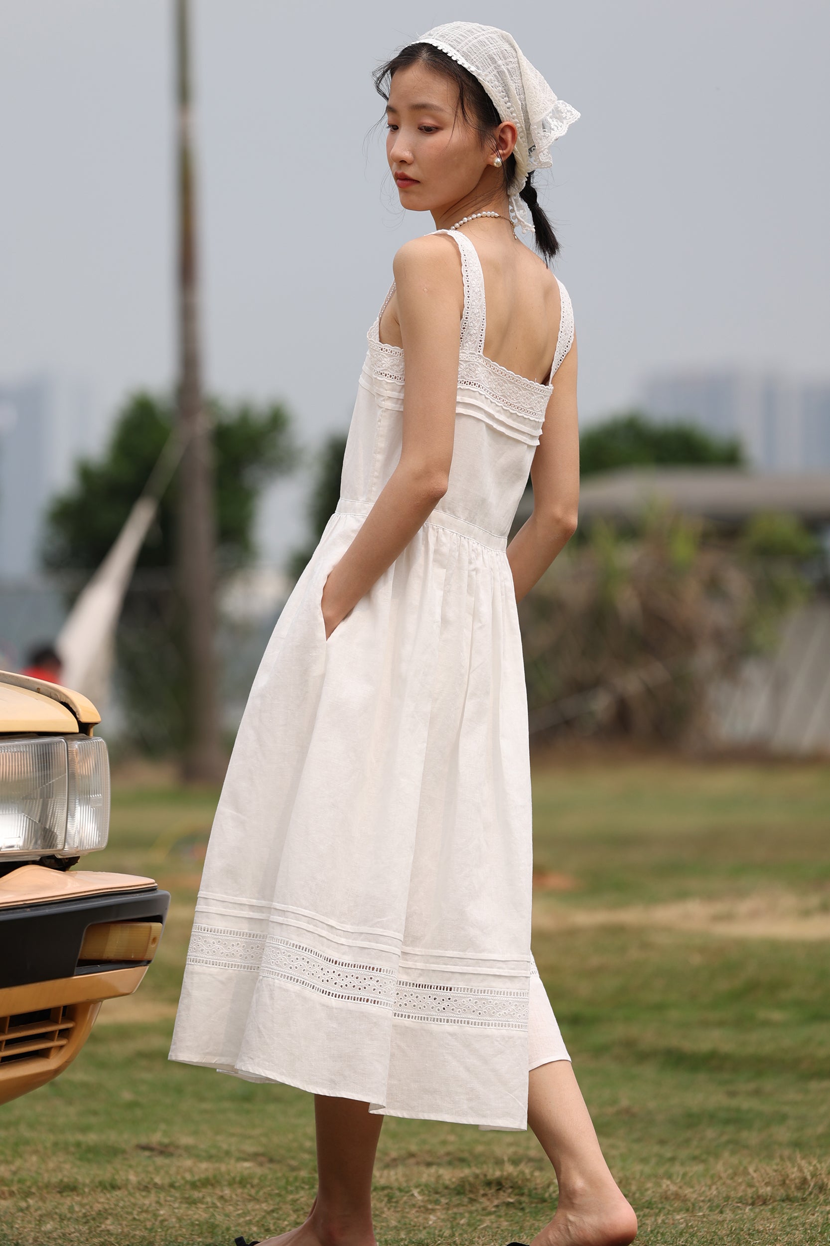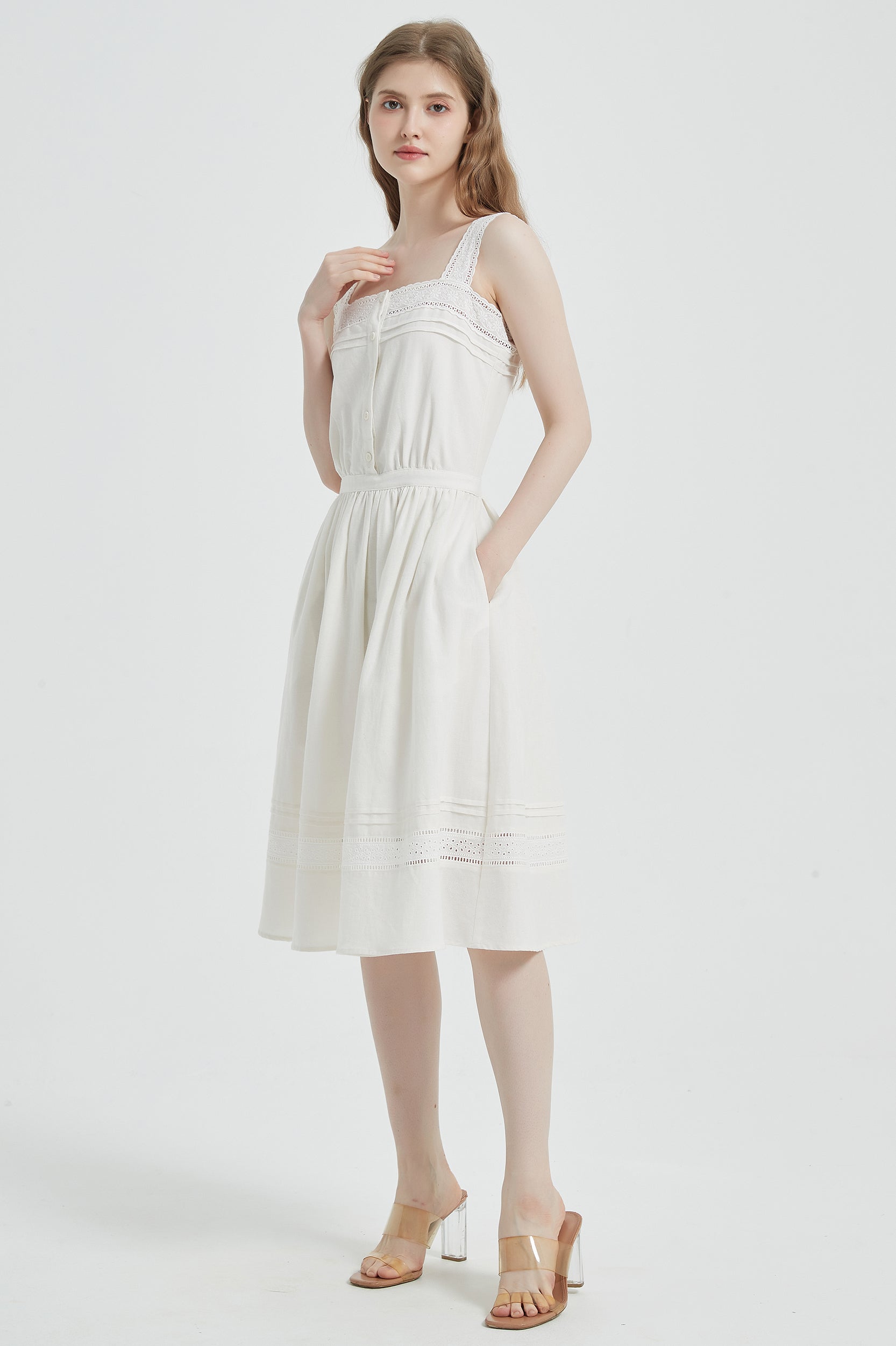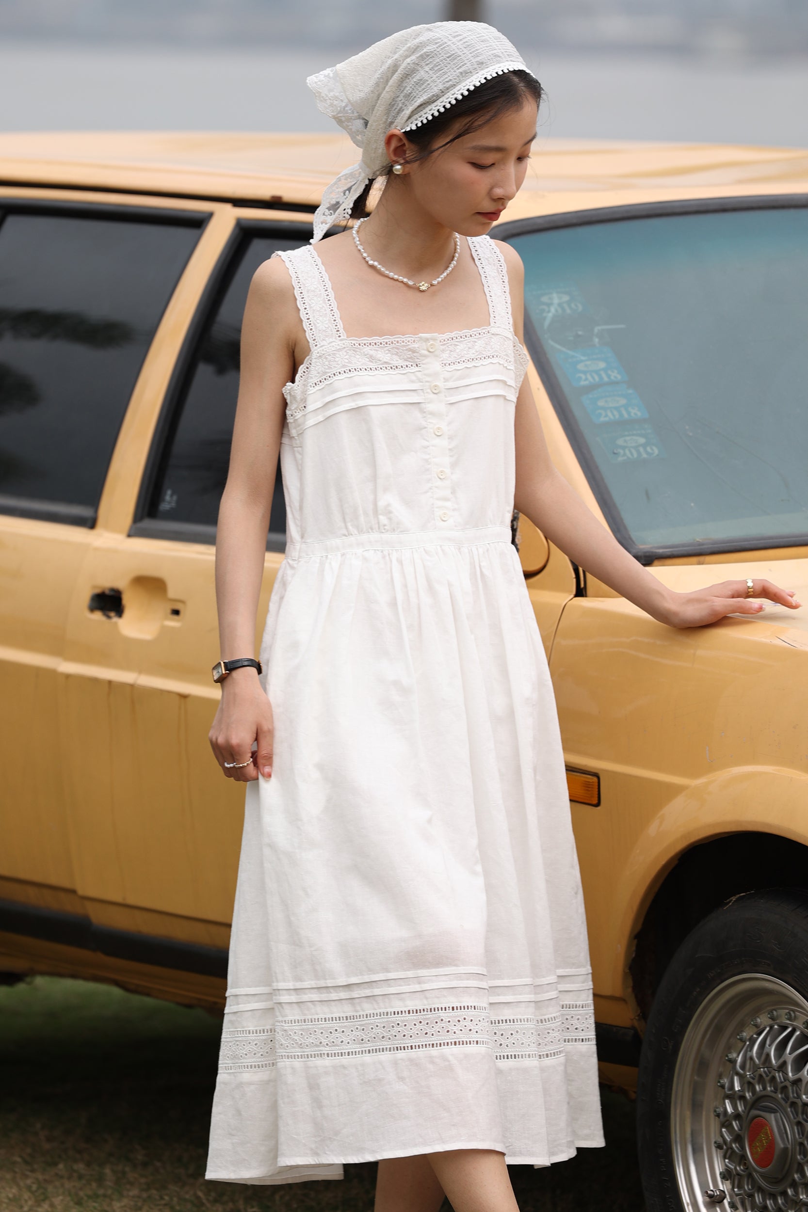 Add a touch of refinement to your collection with the dress. Featuring delicate embroidery and functional buttons, it includes a flowy A-line skirt and functional pockets. Made from luxuriously soft, flowy, and breathable fabric, it ensures both style and comfort.