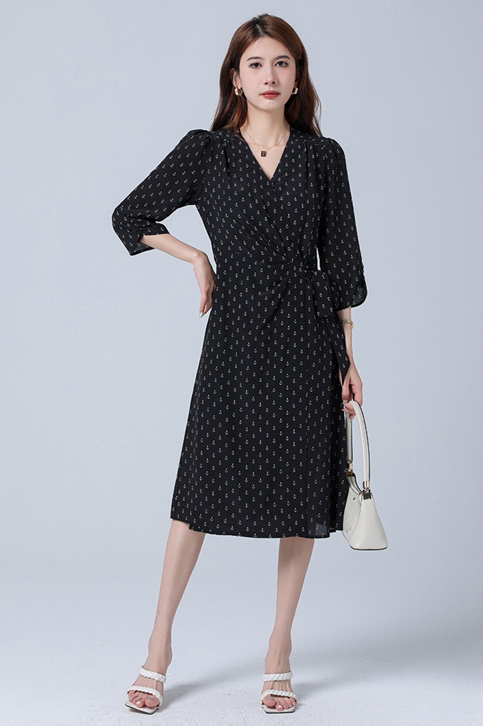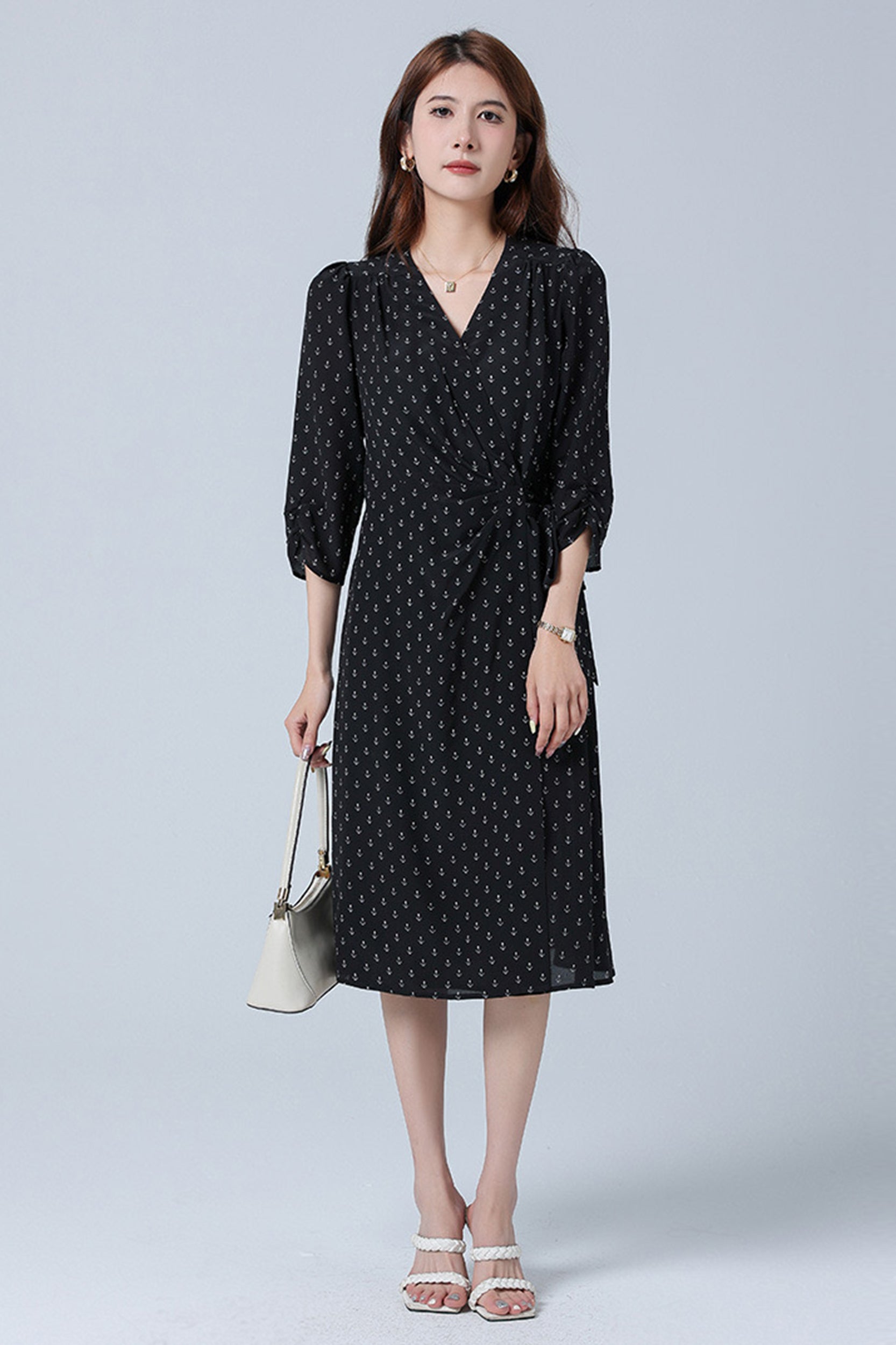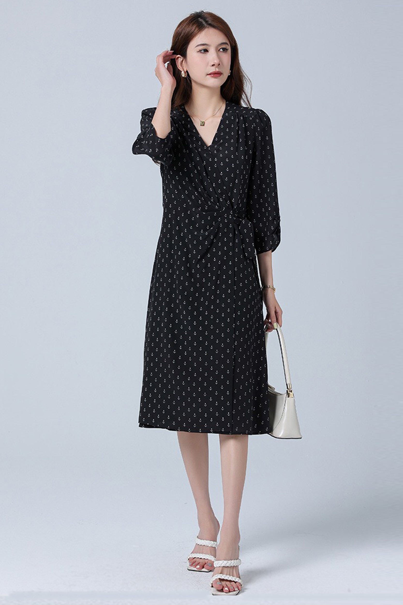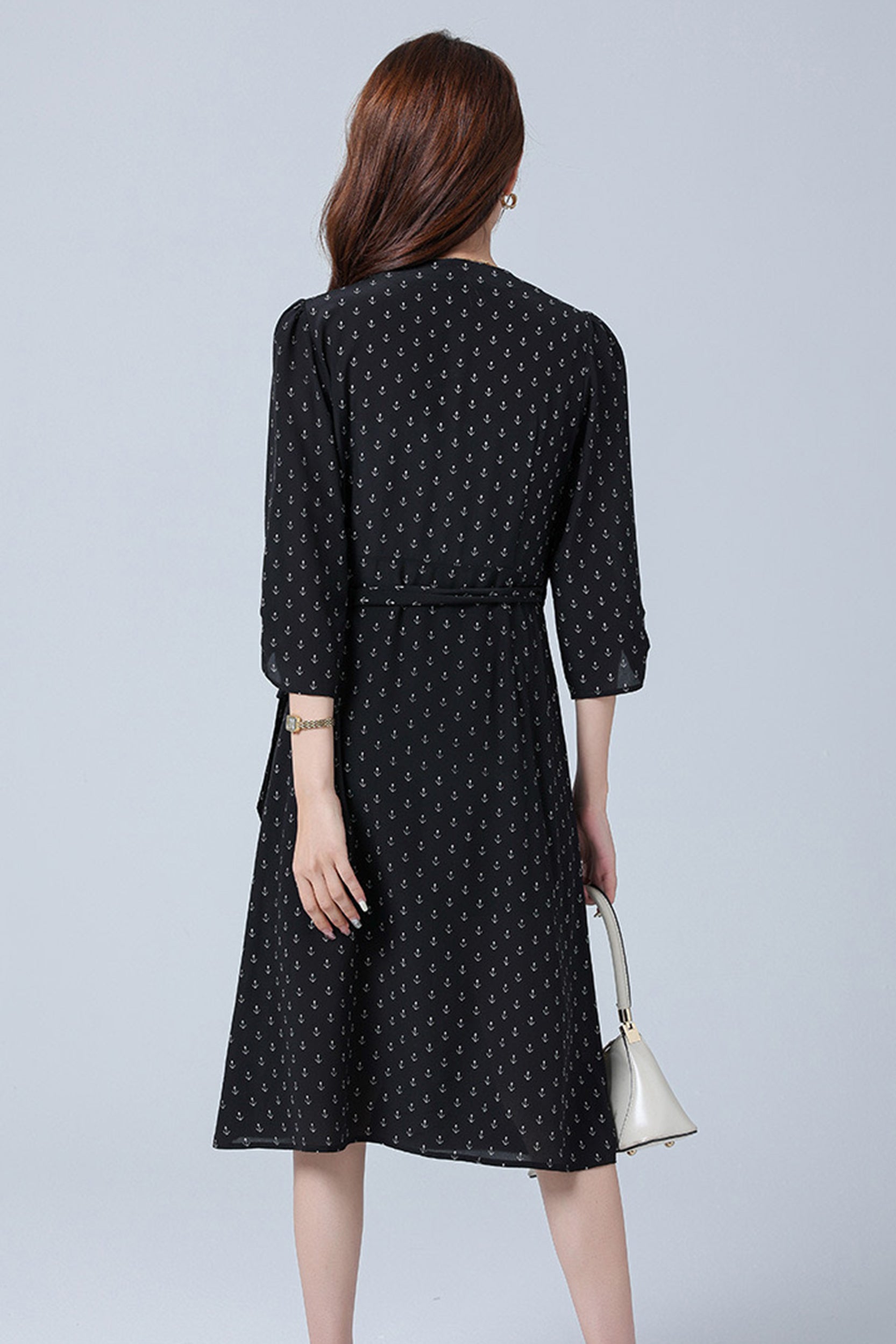 Indulge in luxurious elegance with our dress adorned with a charming floral/anchor print. Crafted from sumptuous silk, this dress exudes sophistication and grace. The flattering wrap silhouette and V-neckline enhance your feminine allure, while the sleeves add a touch of refinement.