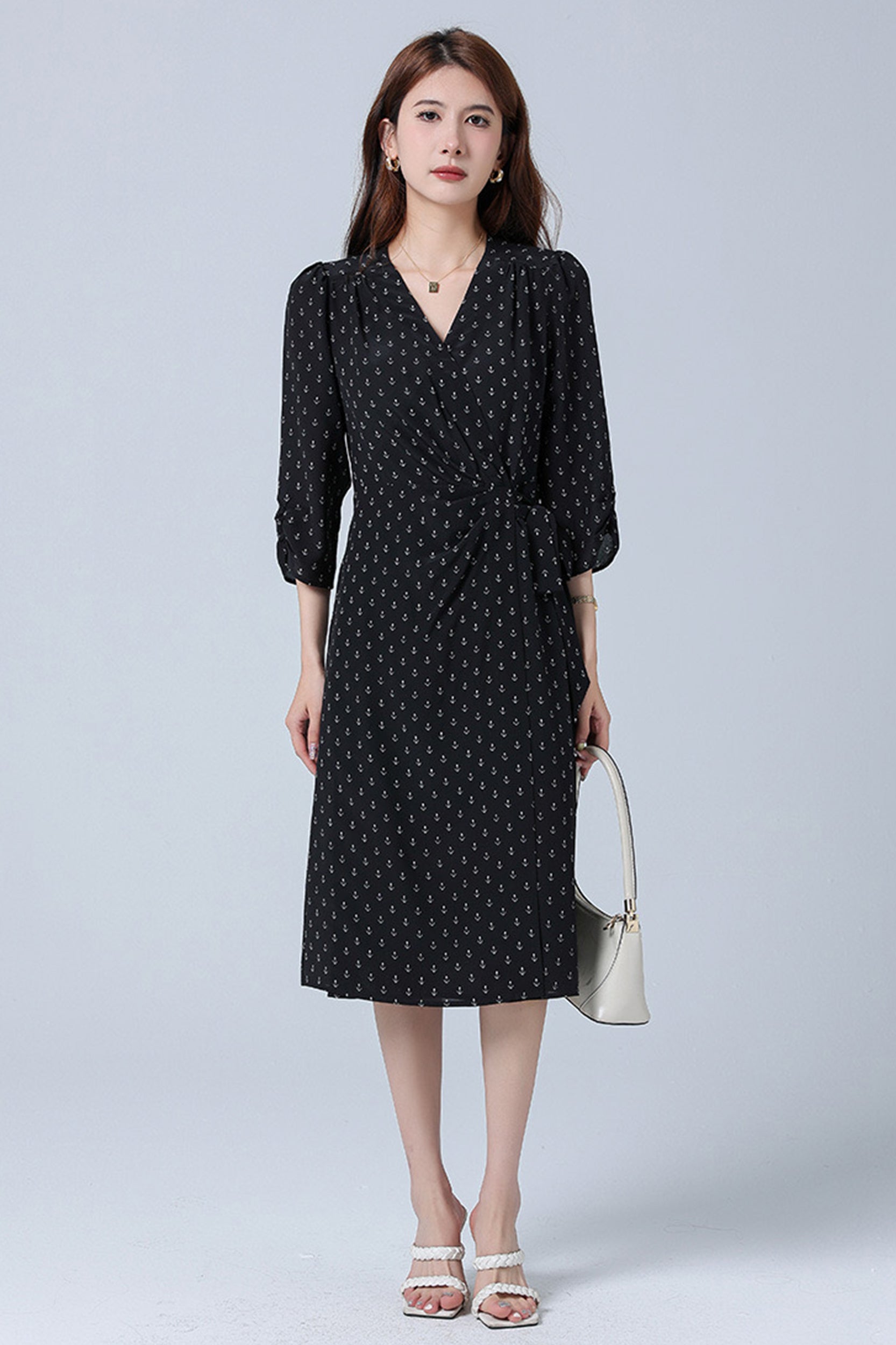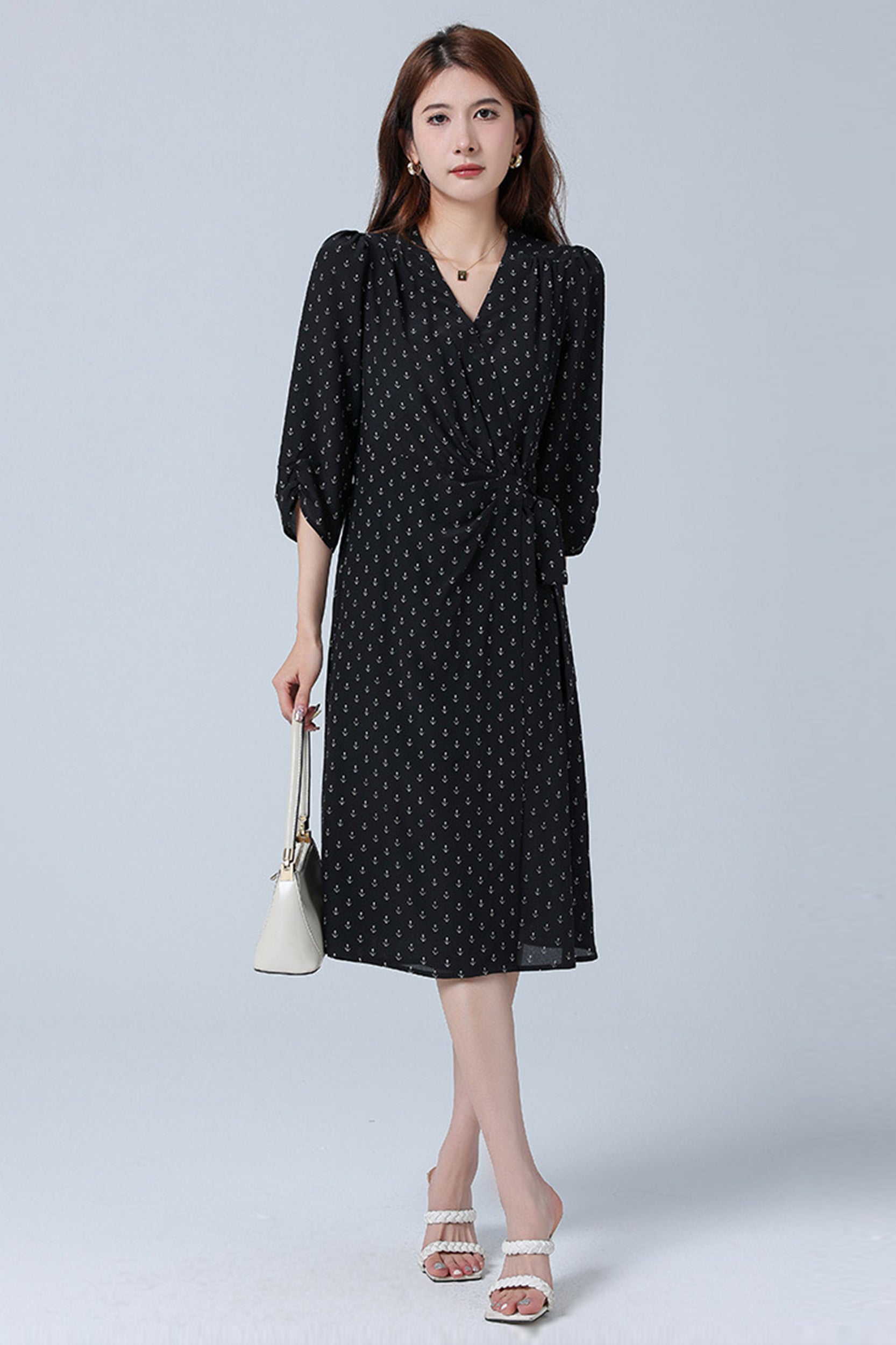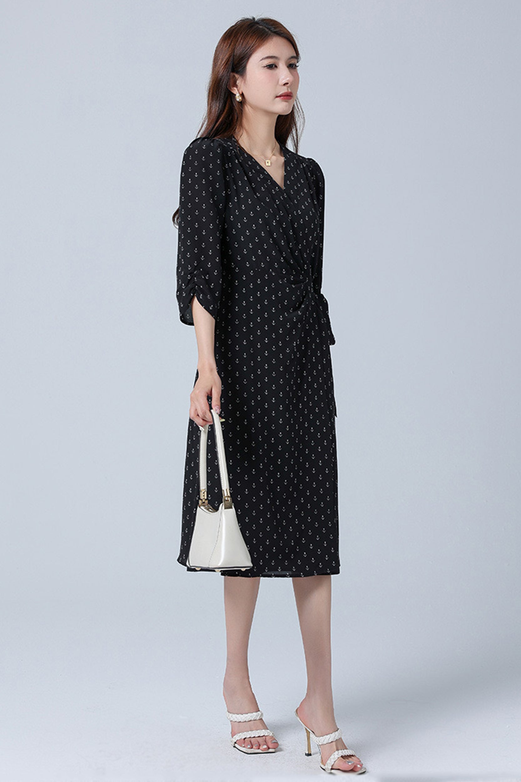 Indulge in luxurious elegance with our dress adorned with a charming floral/anchor print. Crafted from sumptuous silk, this dress exudes sophistication and grace. The flattering wrap silhouette and V-neckline enhance your feminine allure, while the sleeves add a touch of refinement.