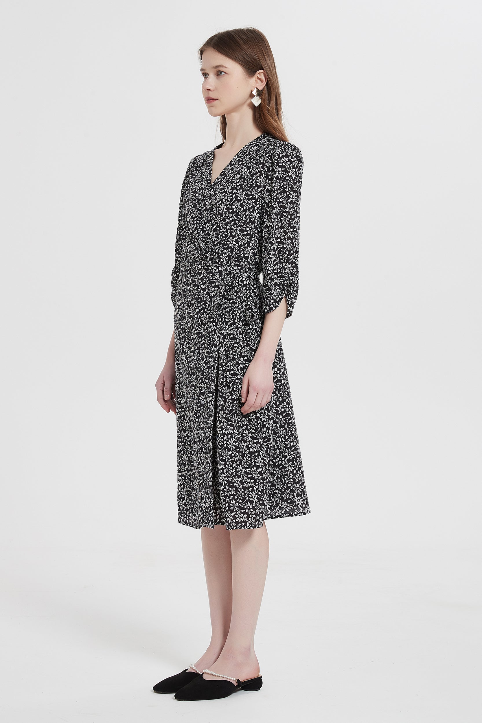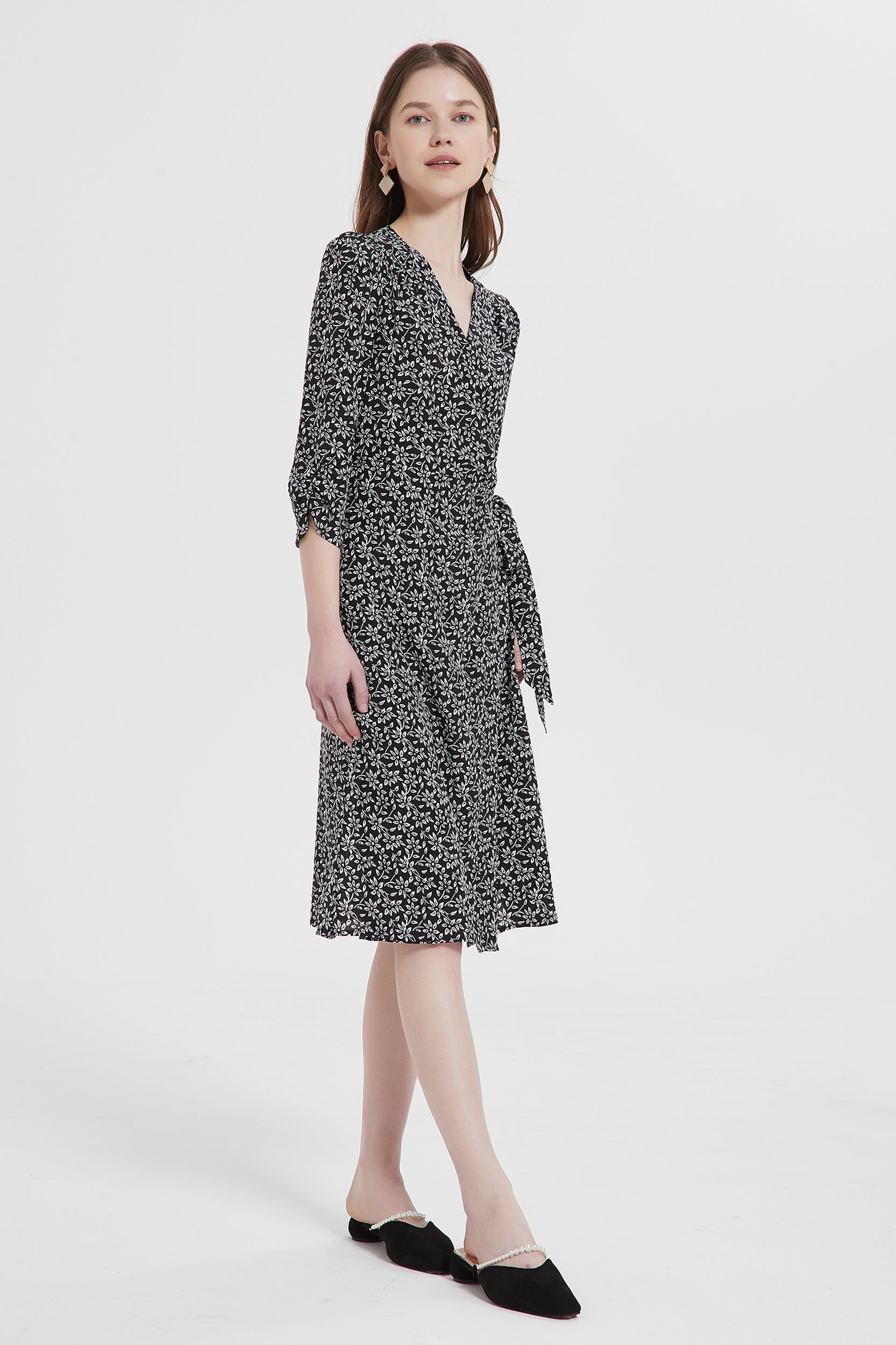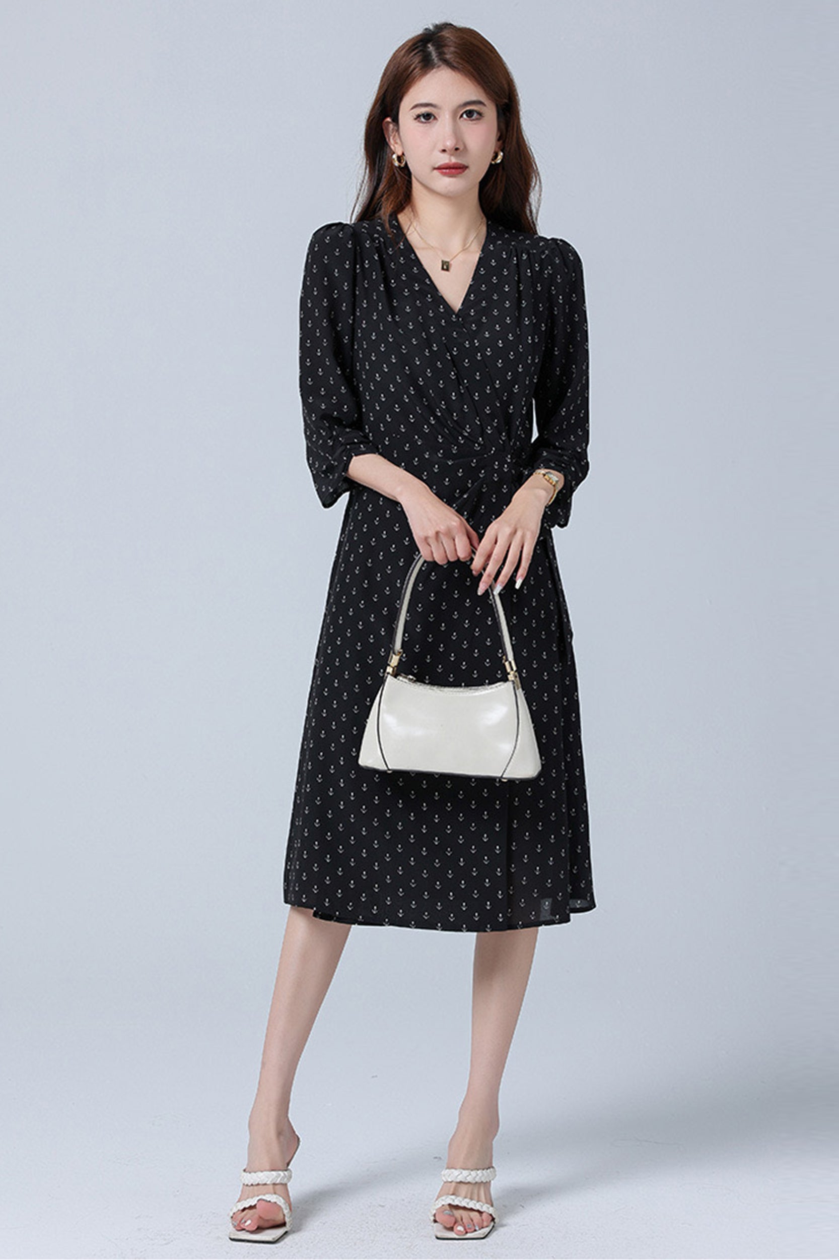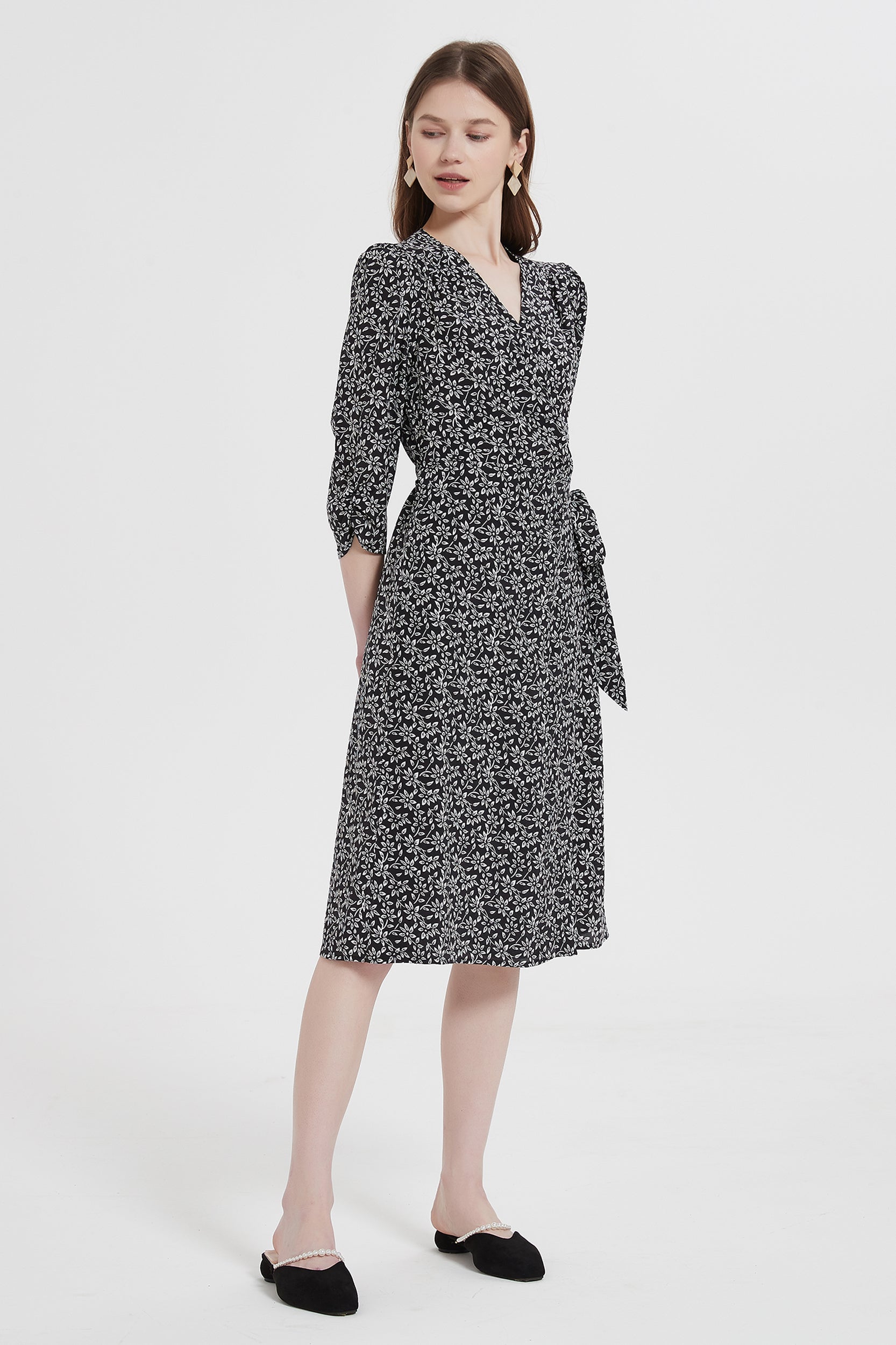 Indulge in luxurious elegance with our dress adorned with a charming floral/anchor print. Crafted from sumptuous silk, this dress exudes sophistication and grace. The flattering wrap silhouette and V-neckline enhance your feminine allure, while the sleeves add a touch of refinement.