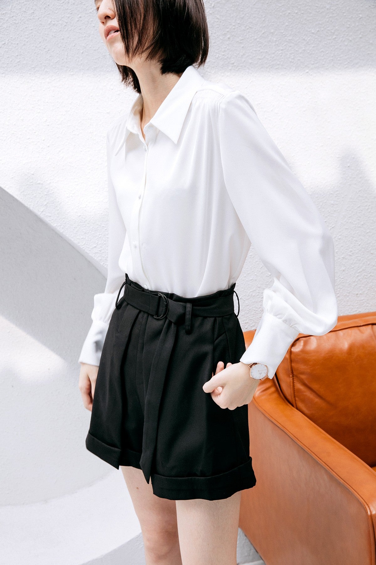 Show off your feminine charm with our beautiful Shorts, featuring a chic high-rise and breezy A-line silhouette. Pair with a collared shirt for effortless elegance.