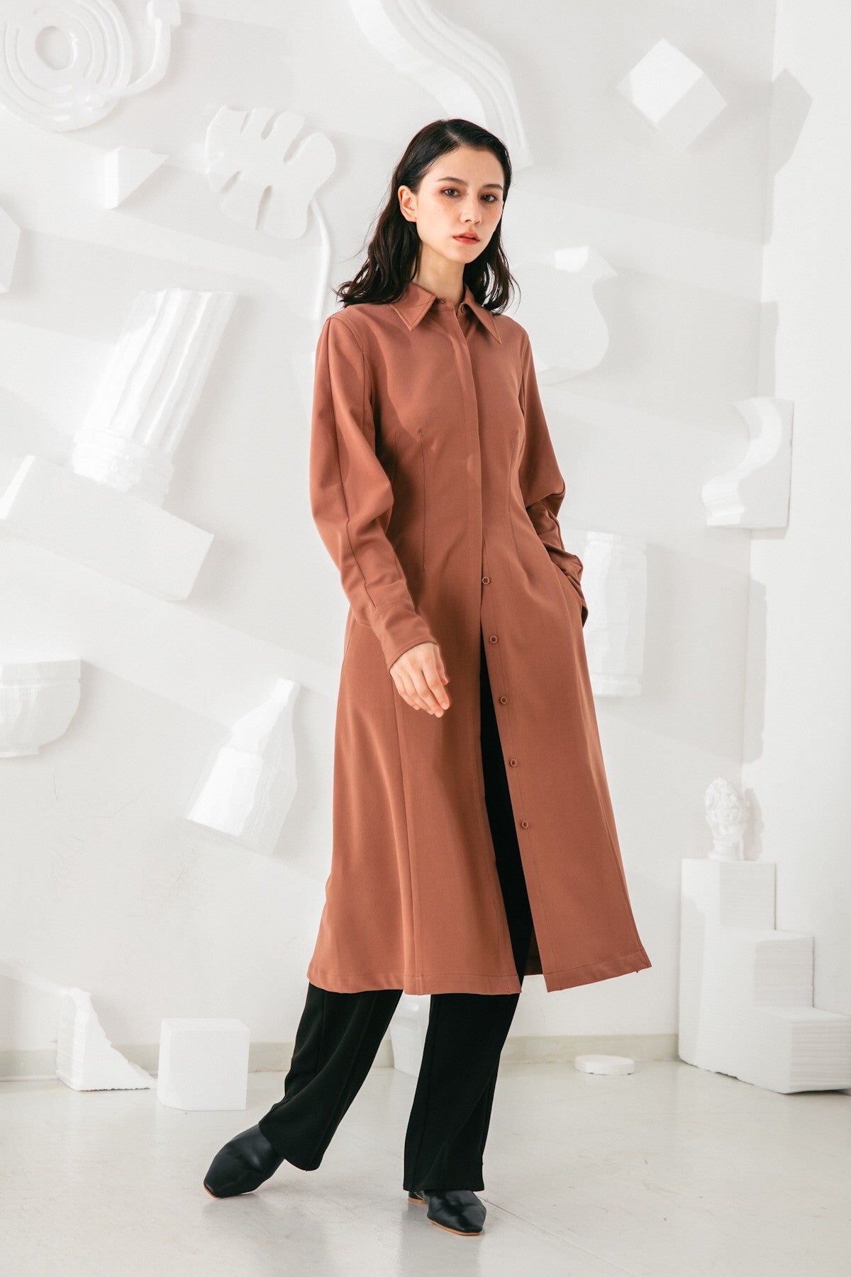 Vertical lines create an elongated silhouette