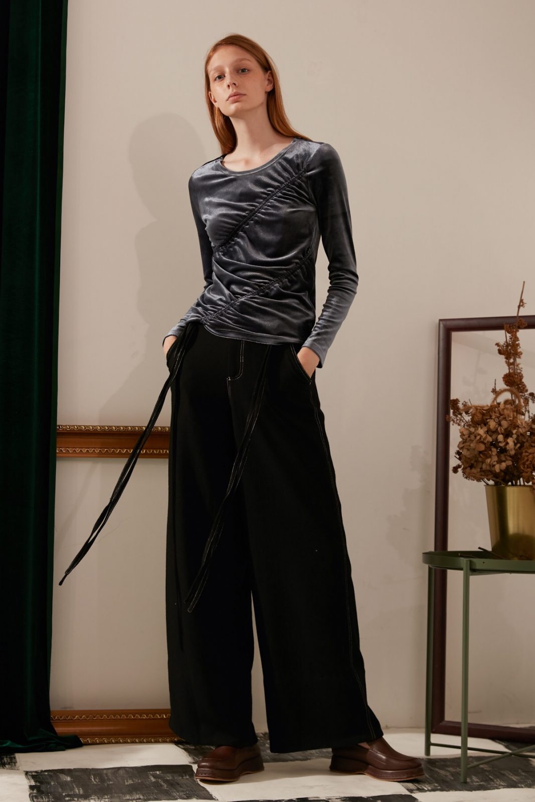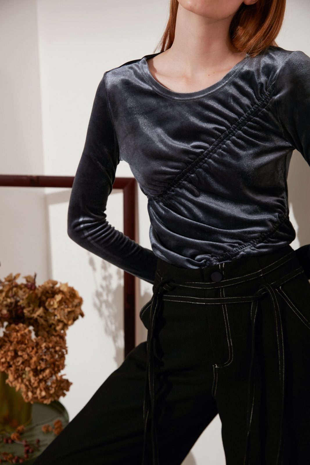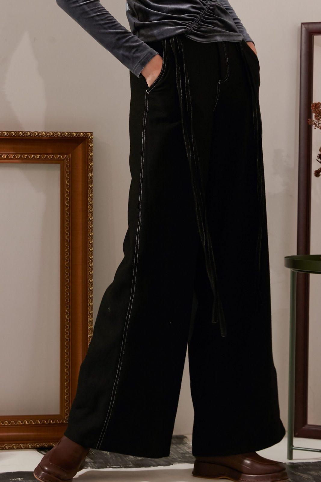 Sits high on the waist for an elongated silhouette