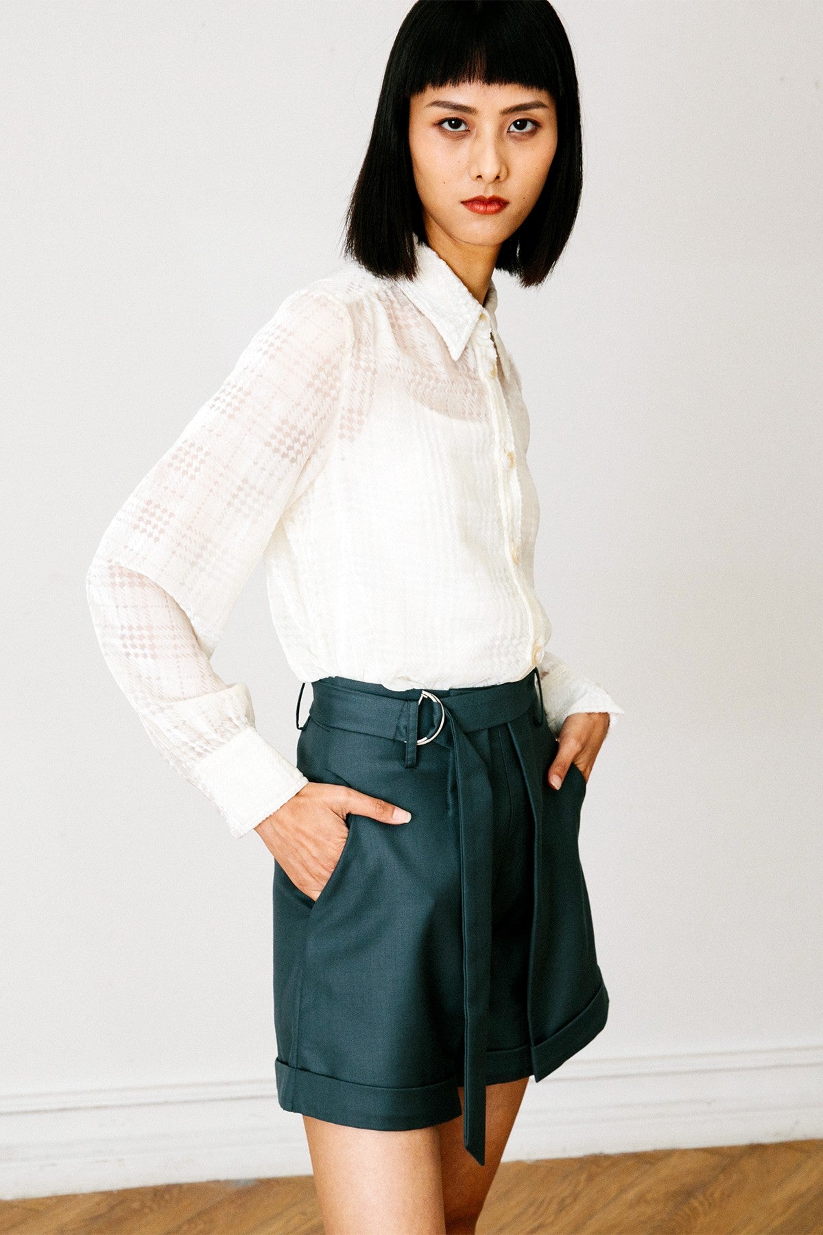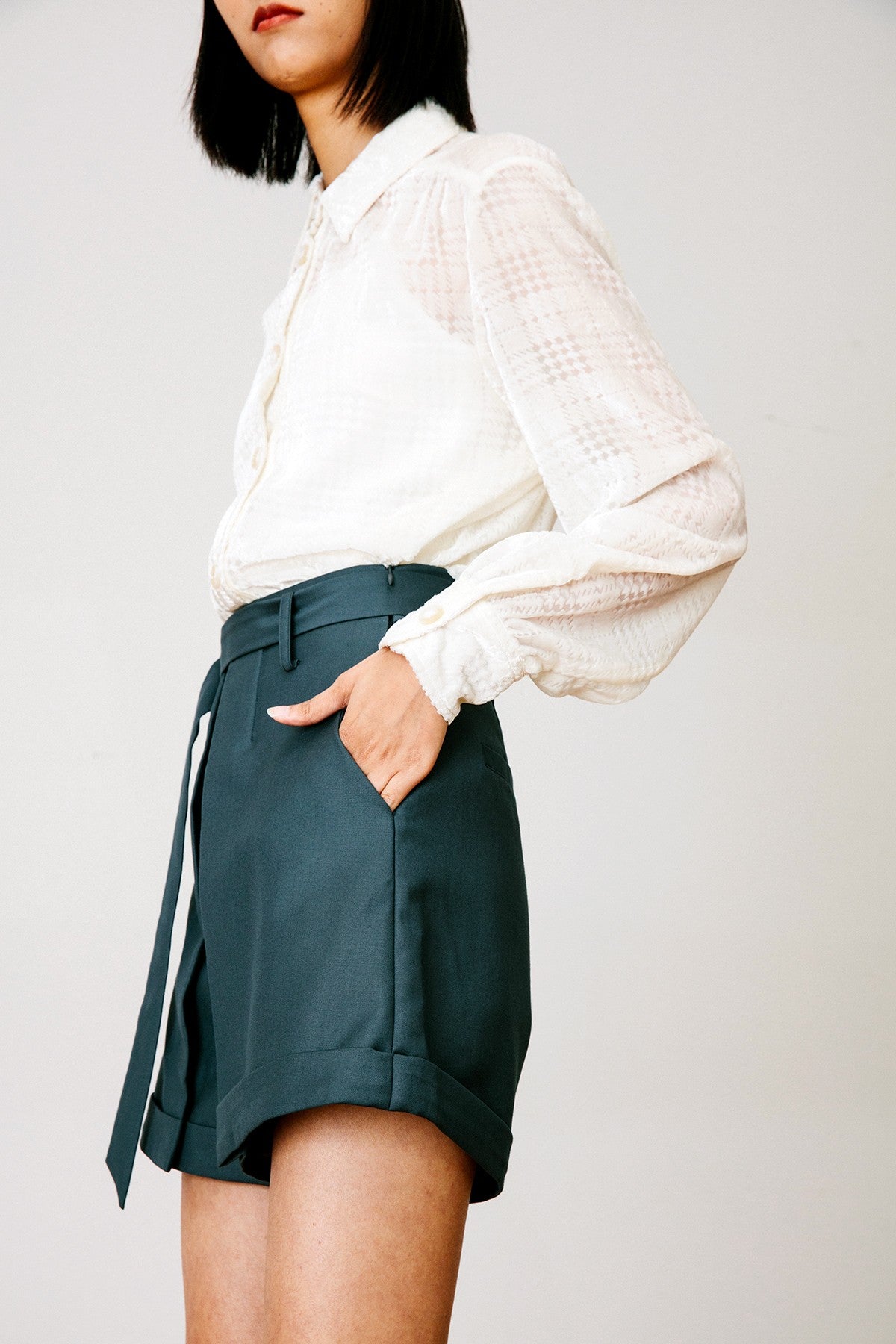 Show off your feminine charm with our beautiful Shorts, featuring a chic high-rise and breezy A-line silhouette. Pair with a collared shirt for effortless elegance.