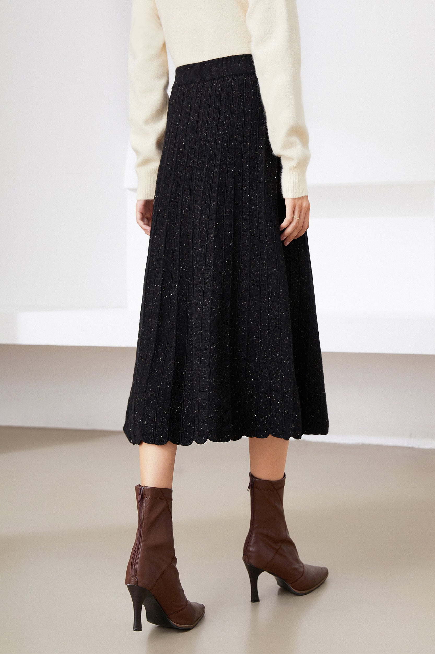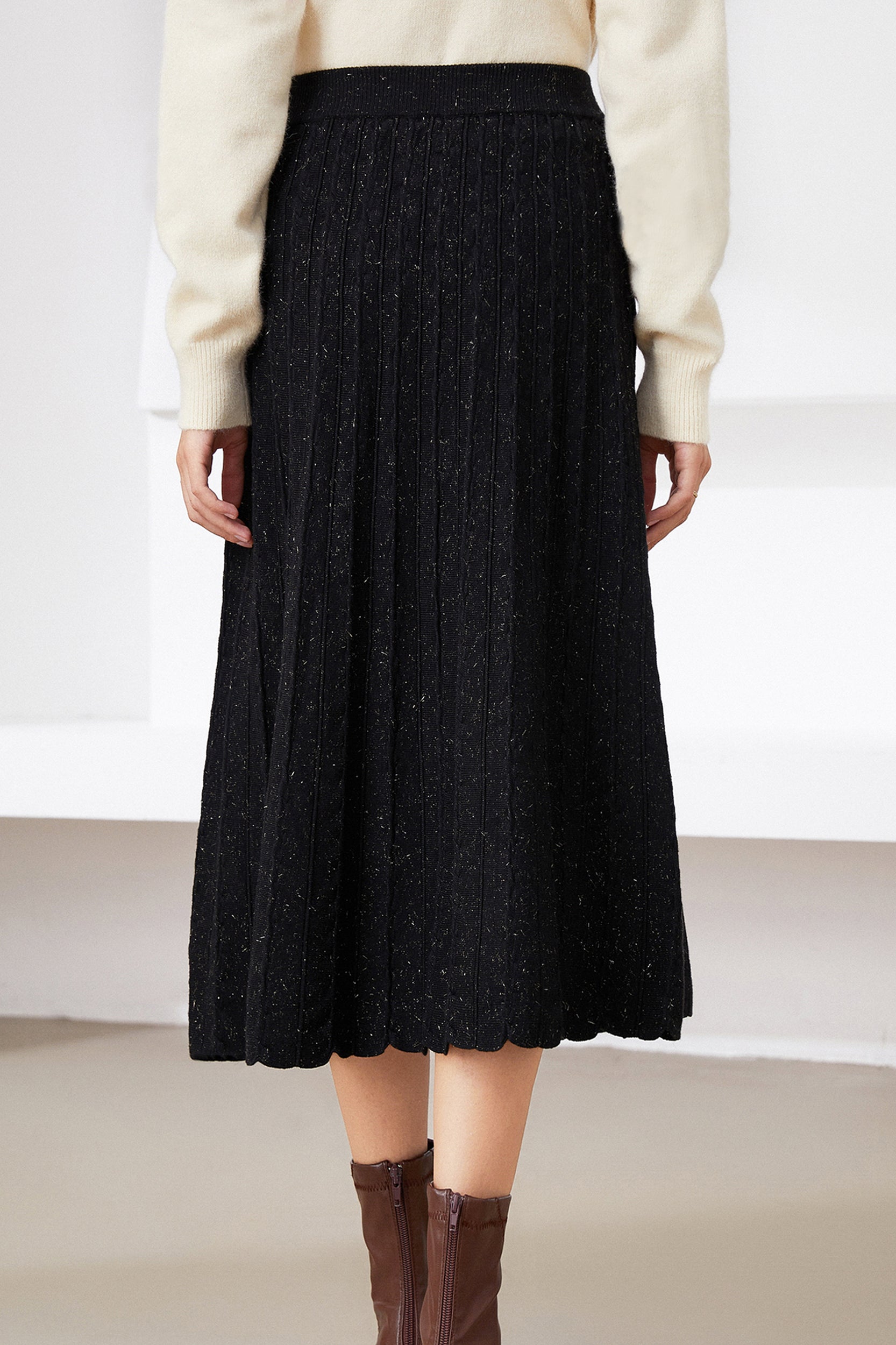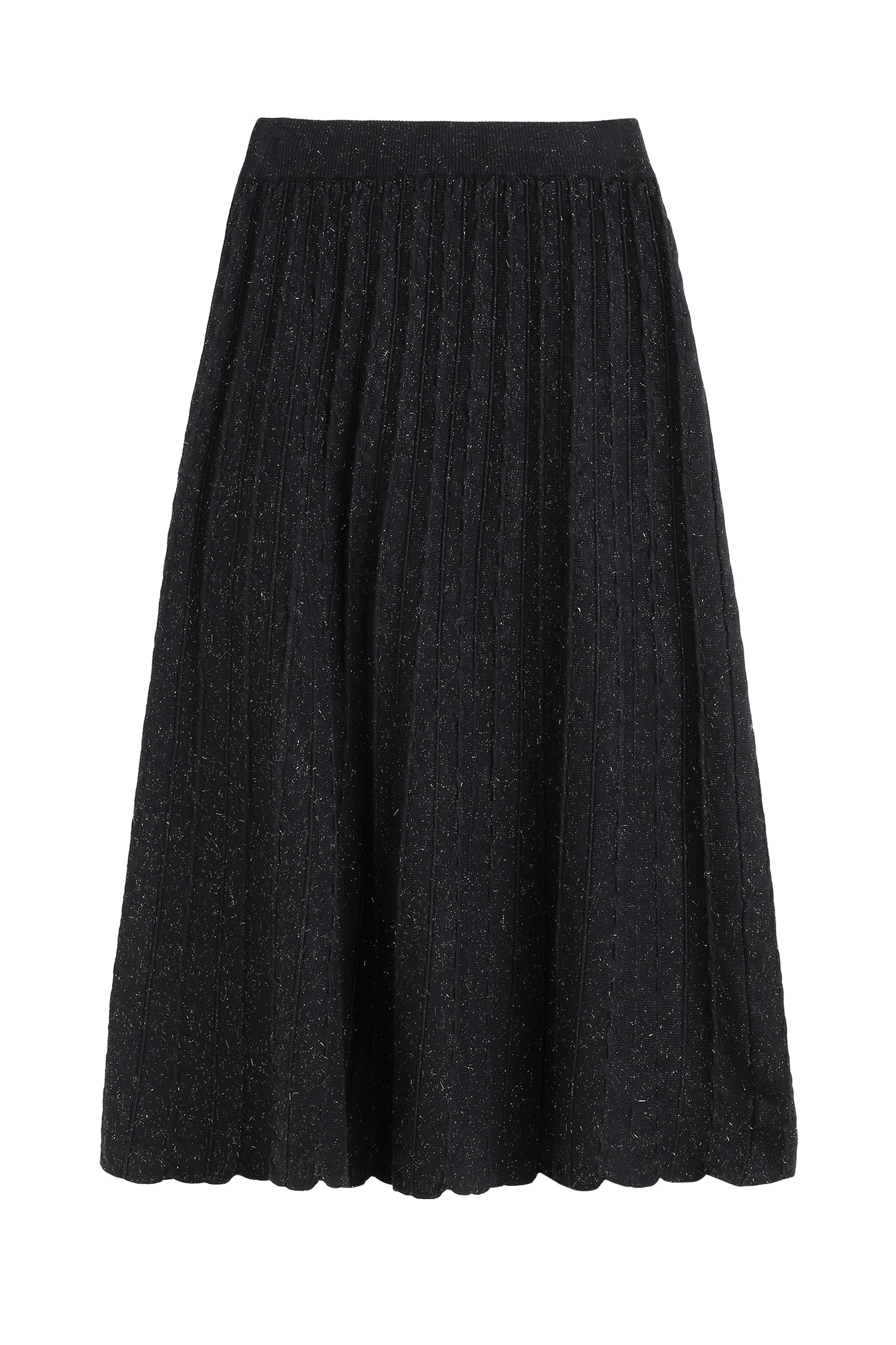 Illuminate your style with our skirt. The shimmering metallic finish adds a touch of glamour to the classic pleated design, creating a versatile piece that seamlessly transitions from day to night.