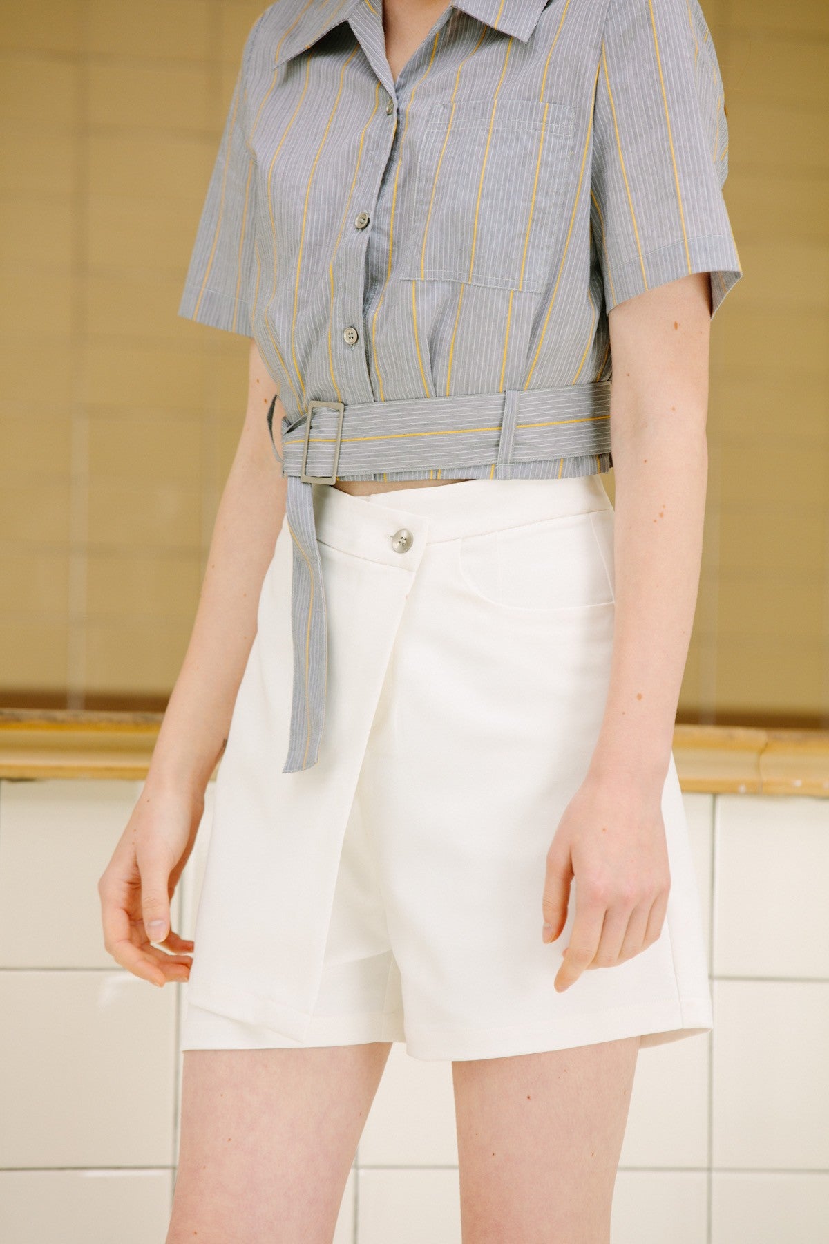 Tap into effortless chic sensibilities with our beautiful Shorts, featuring a sharply tailored A-line silhouette with a flattering high-rise waist and sophisticated asymmetric front. Wear yours with a cropped top and pretty slides for an easy day-to-night style.
