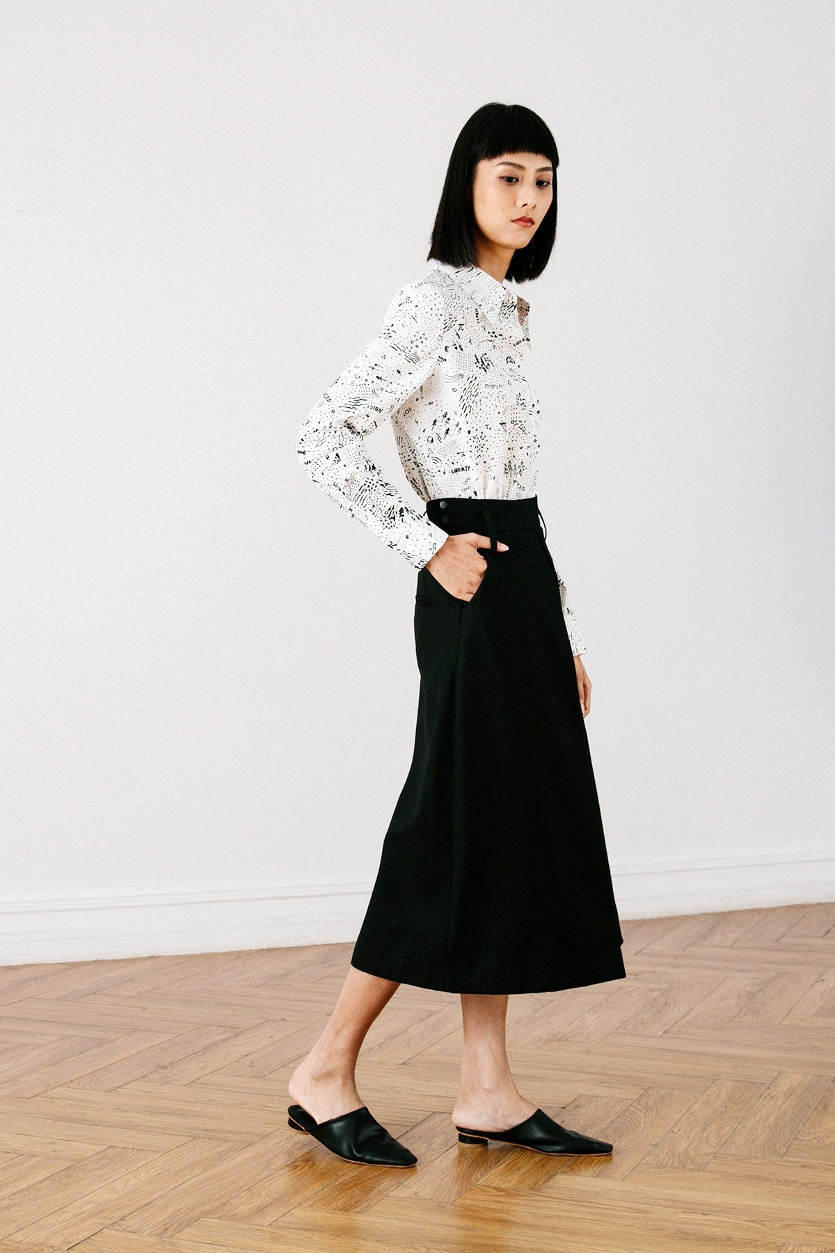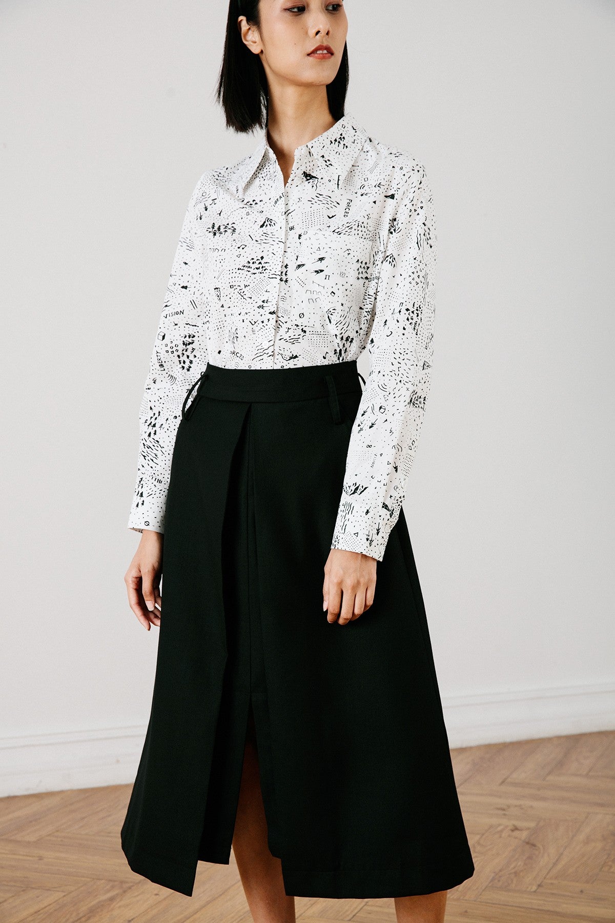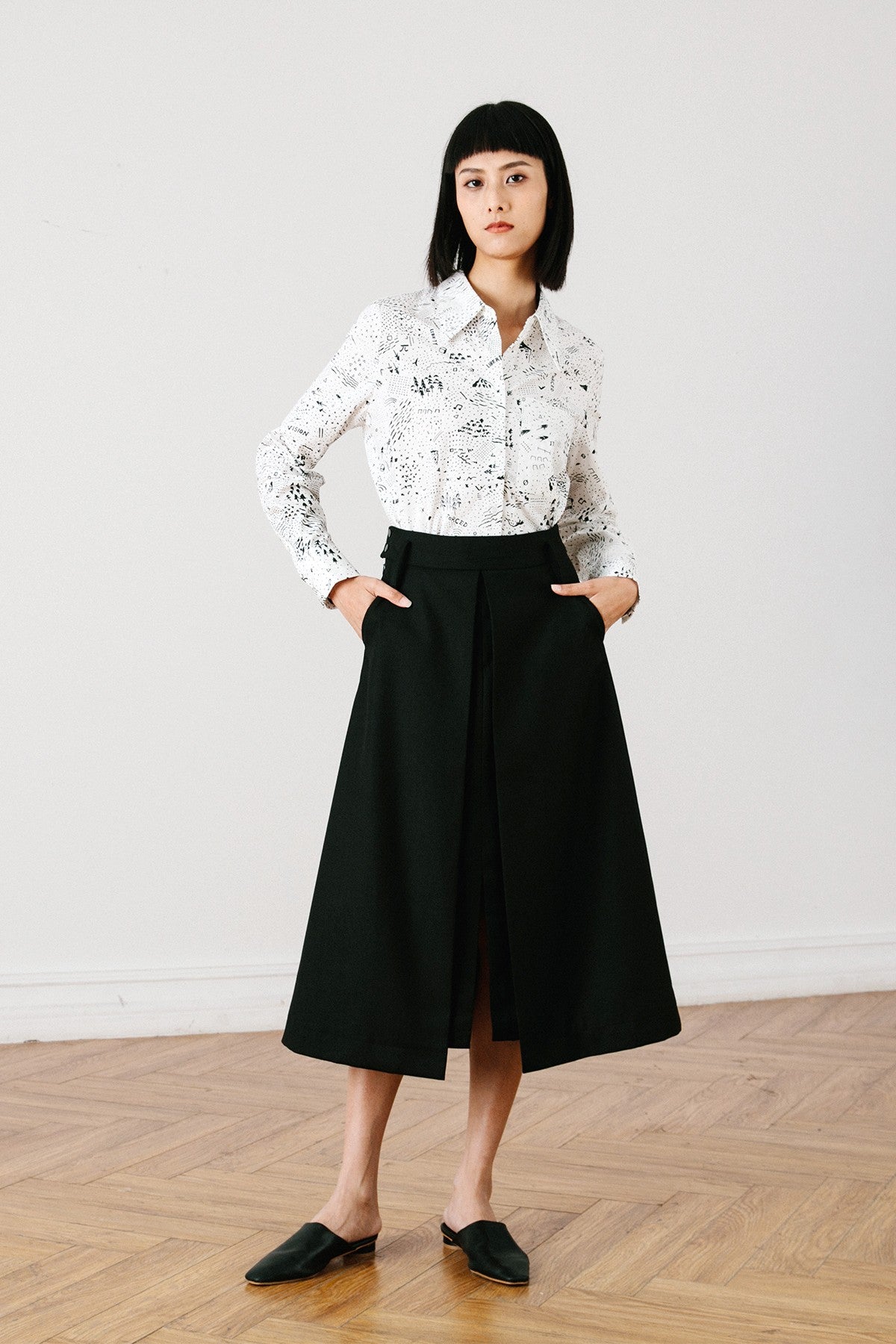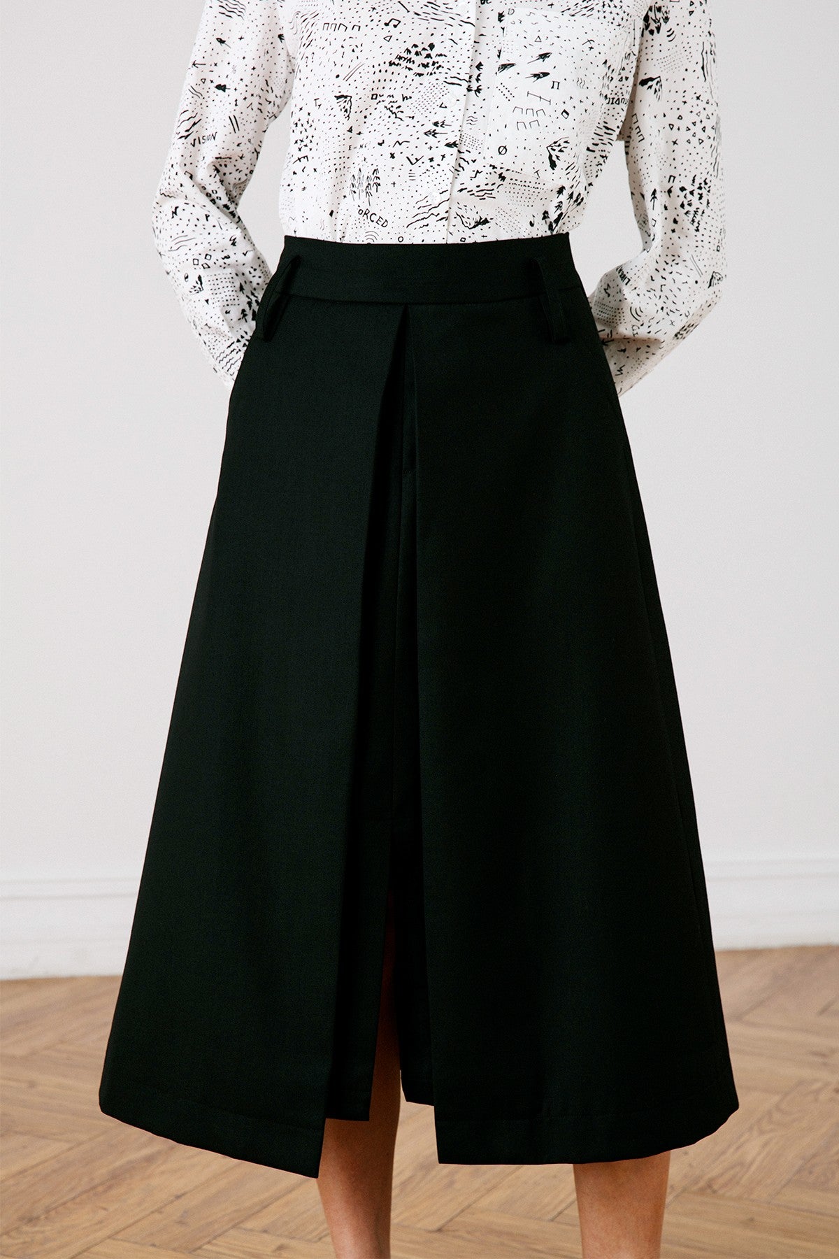 Turn heads with our Skirt featuring an elegant midi length and front slit detail for a modern and chic vibe. Elevate the look with feminine blouses and sleek outerwear.