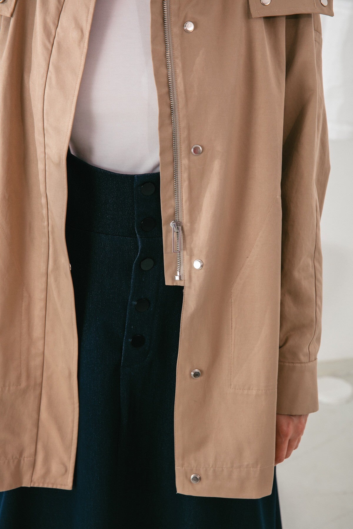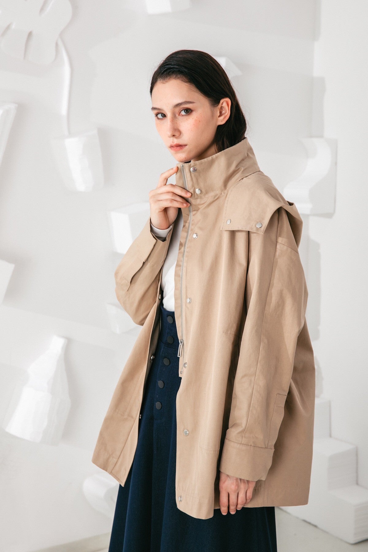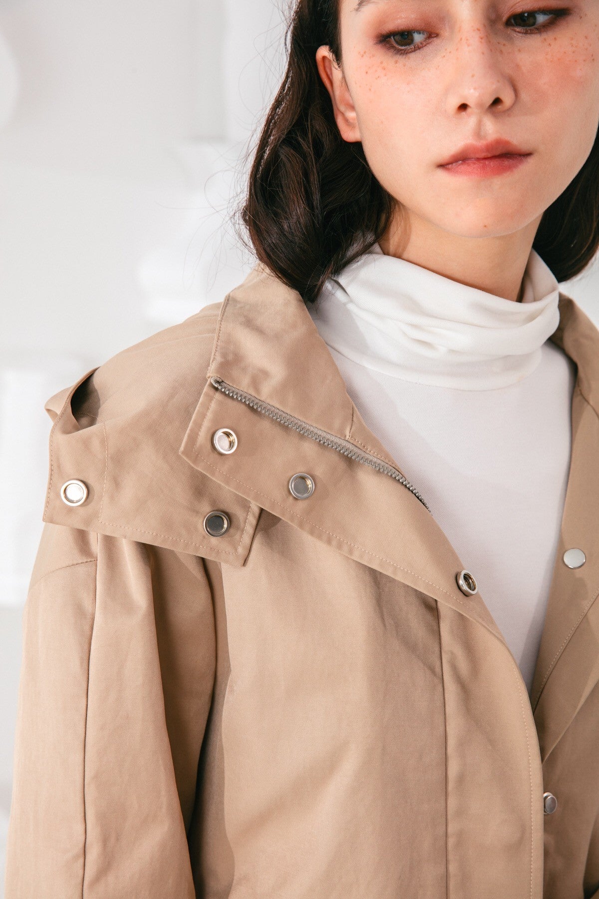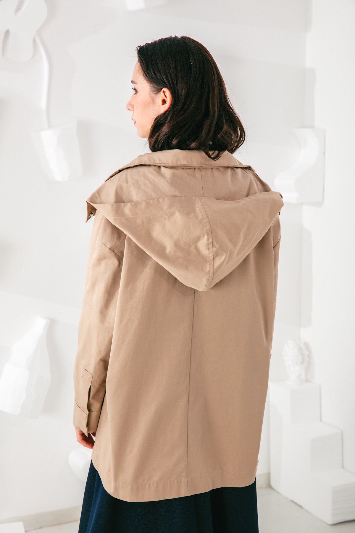 Versatile and effortless, our beautiful Coat comes in a modern, oversized silhouette with removable hood. This chic coat has been crafted from a tightly weaved cotton gabardine that shields you from harsh elements.
