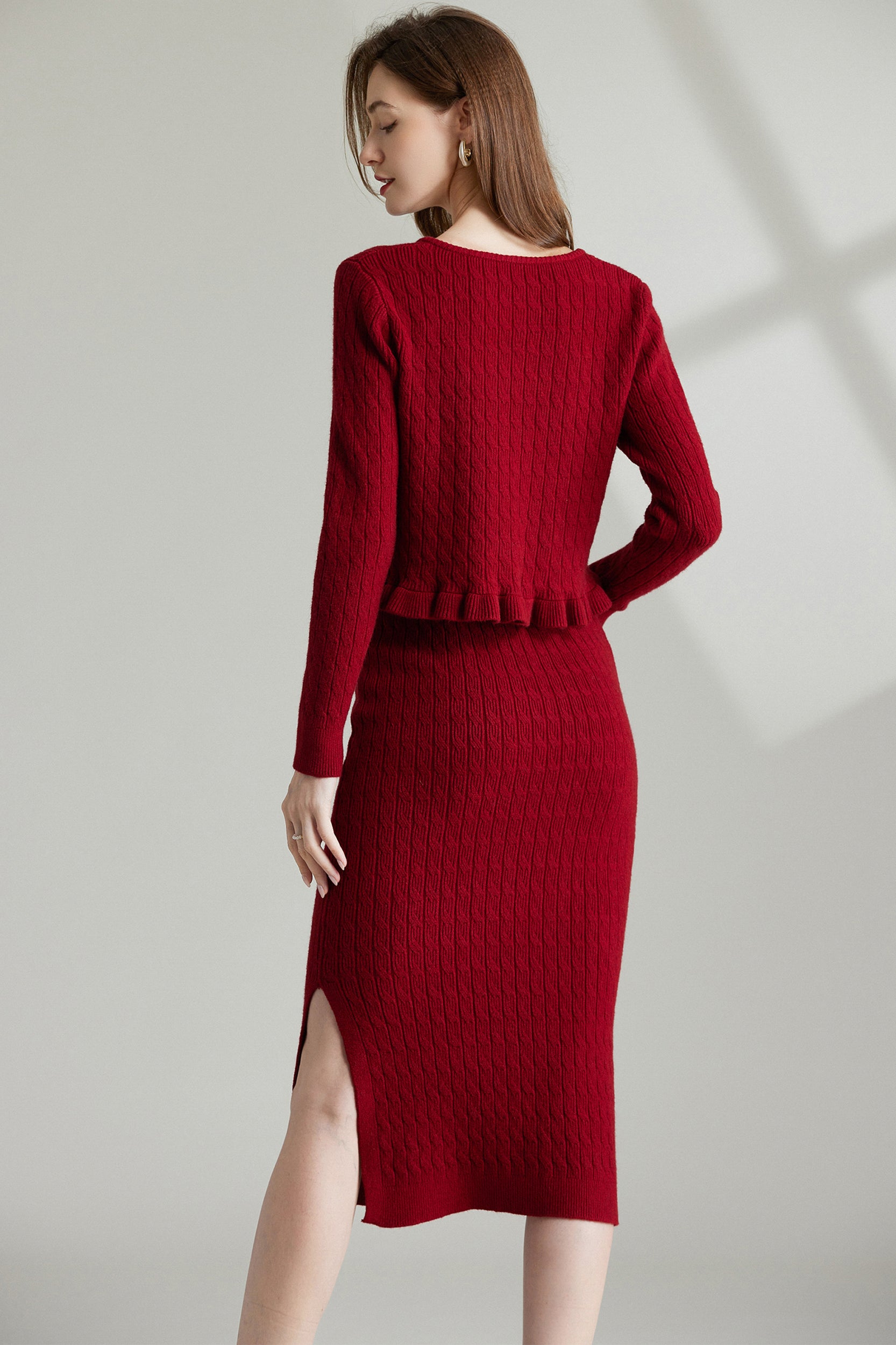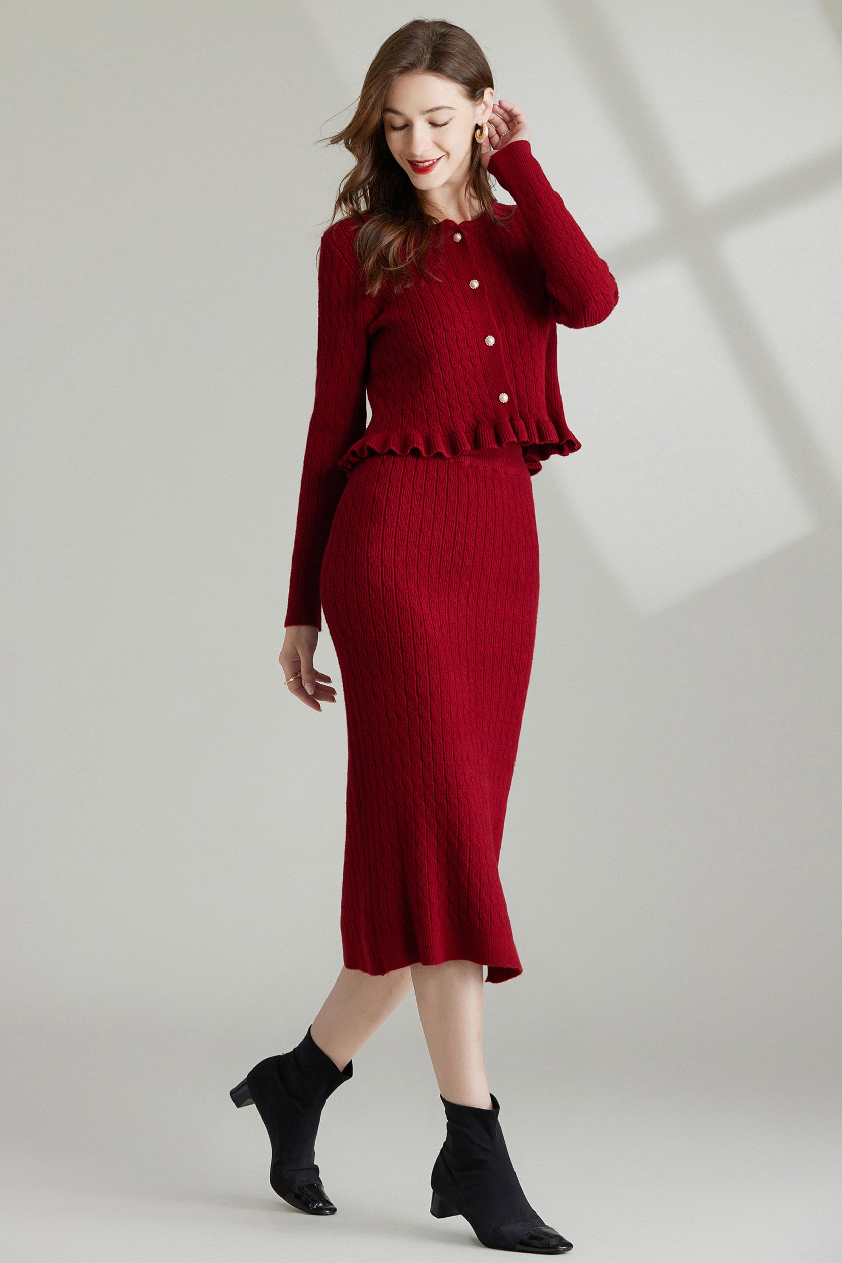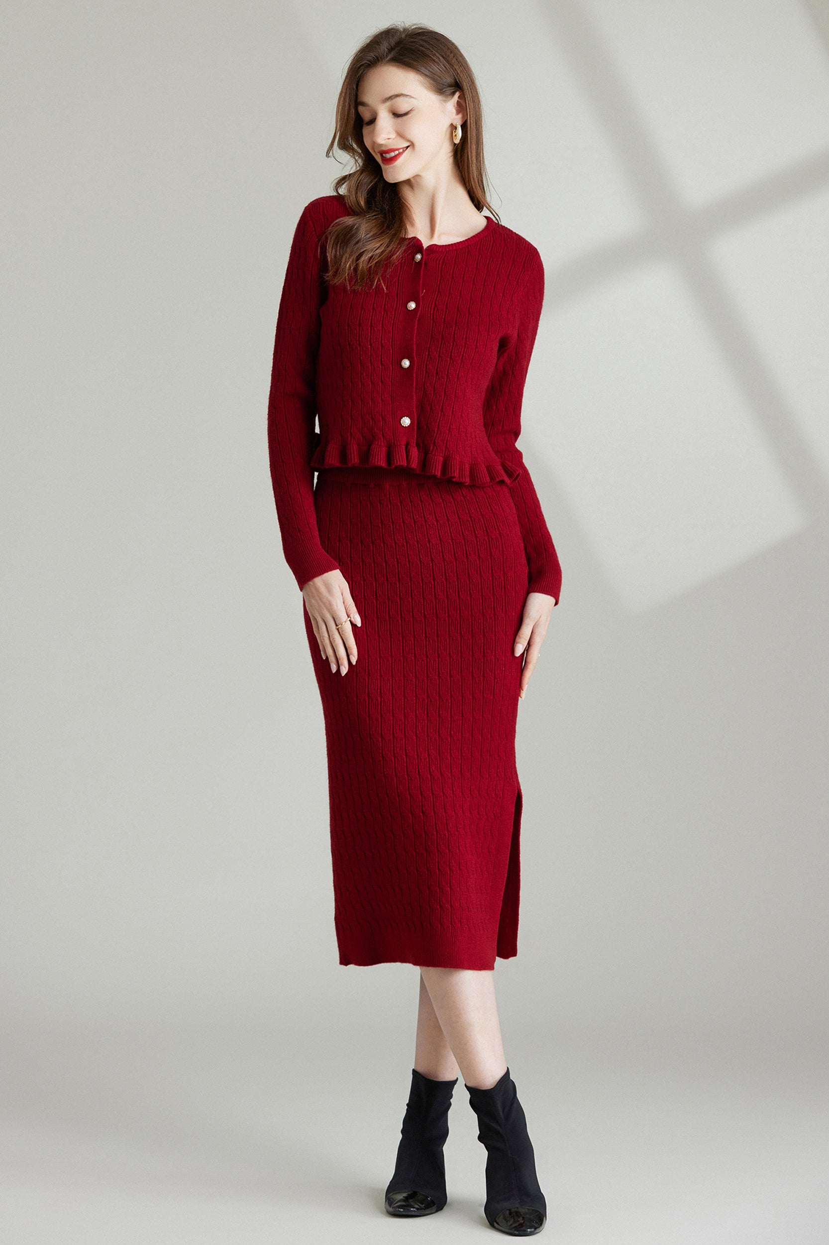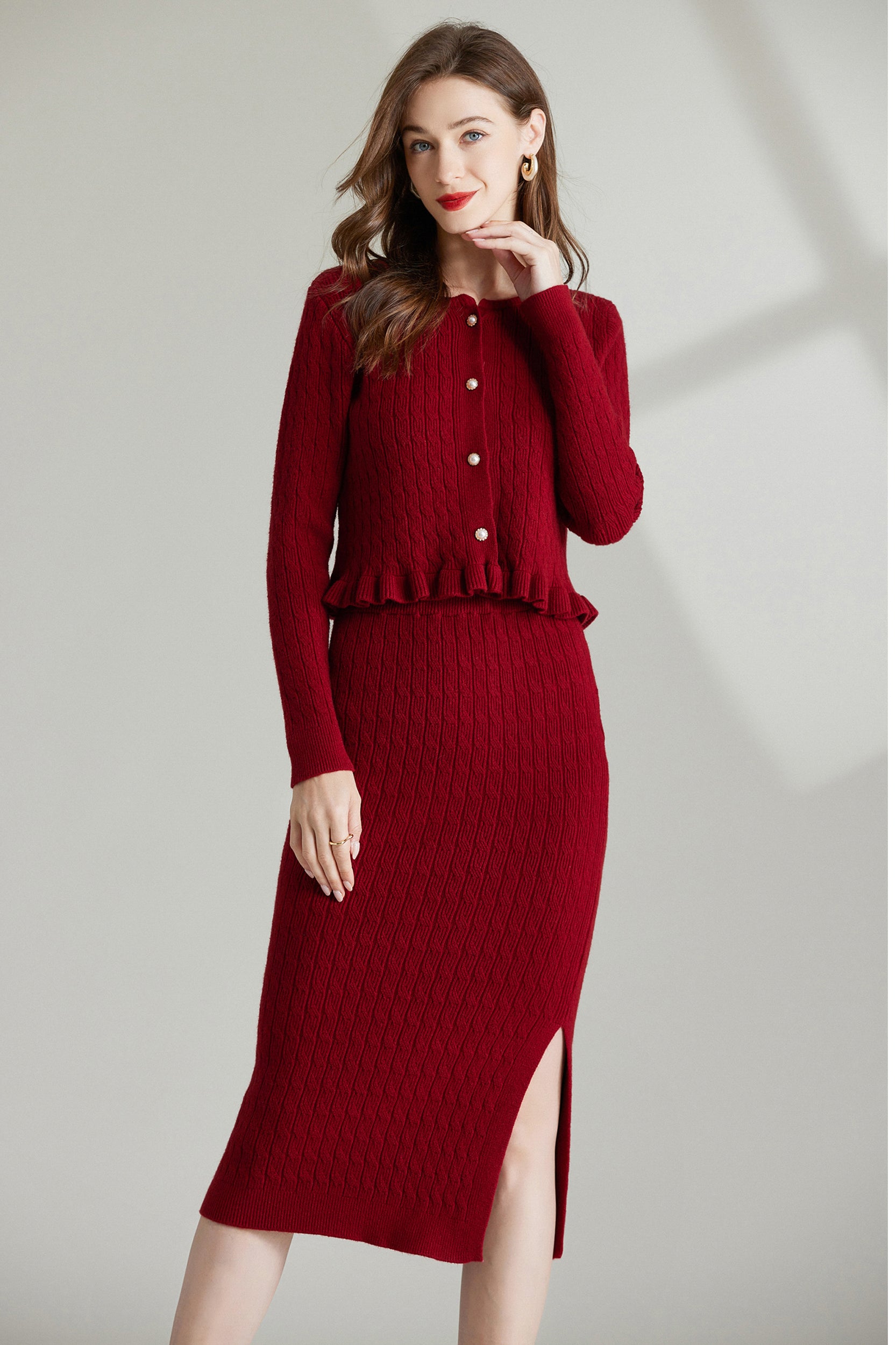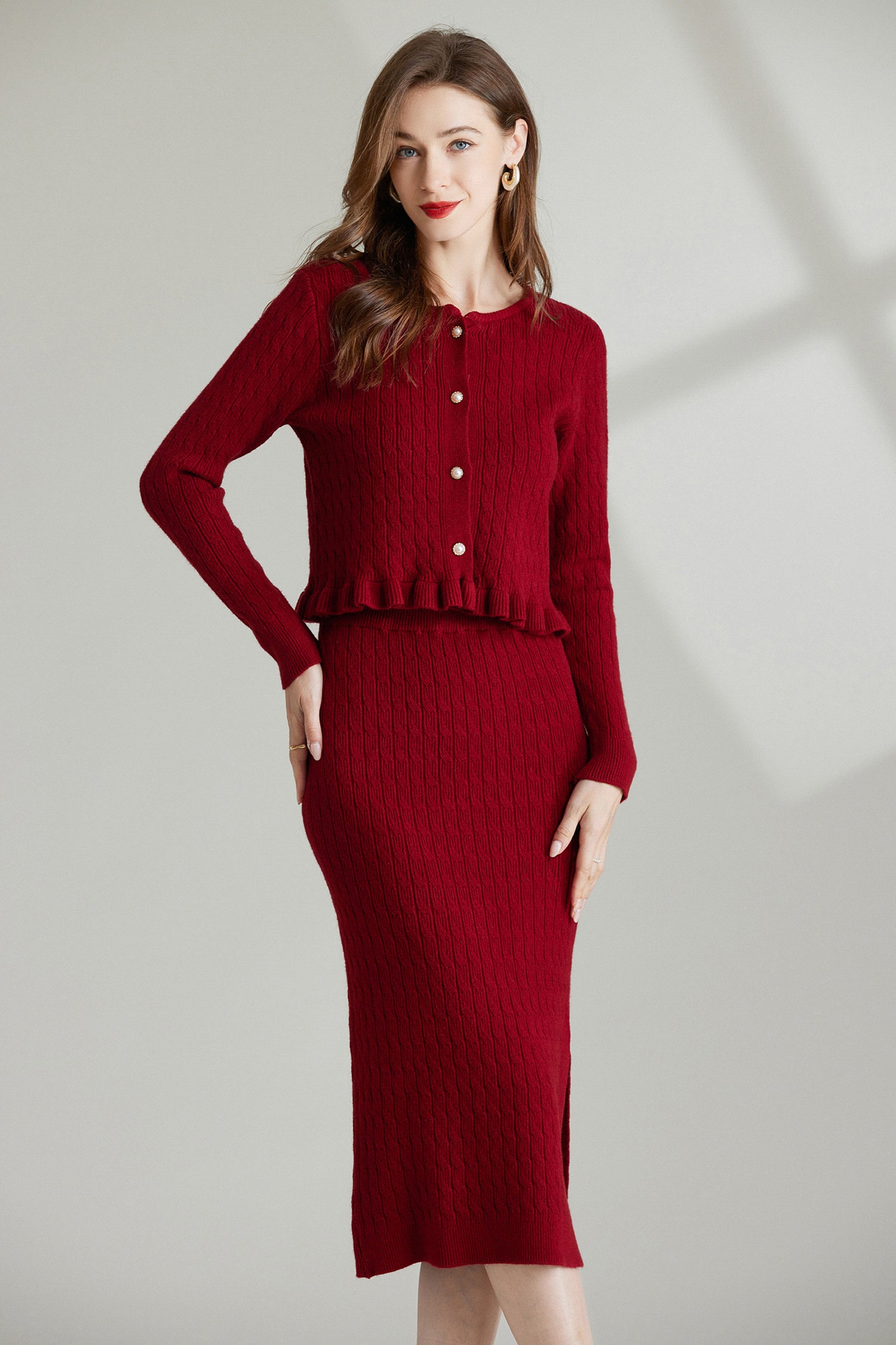 Wrap yourself in the cozy sophistication of our cardigan. This cardigan features a classic cable knit pattern and is adorned with delicate pearl buttons for an extra touch of elegance.