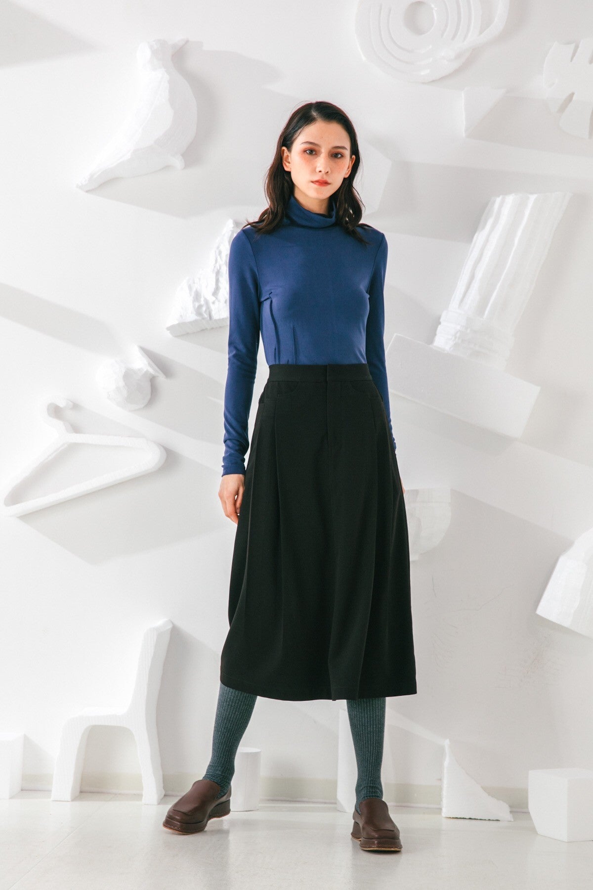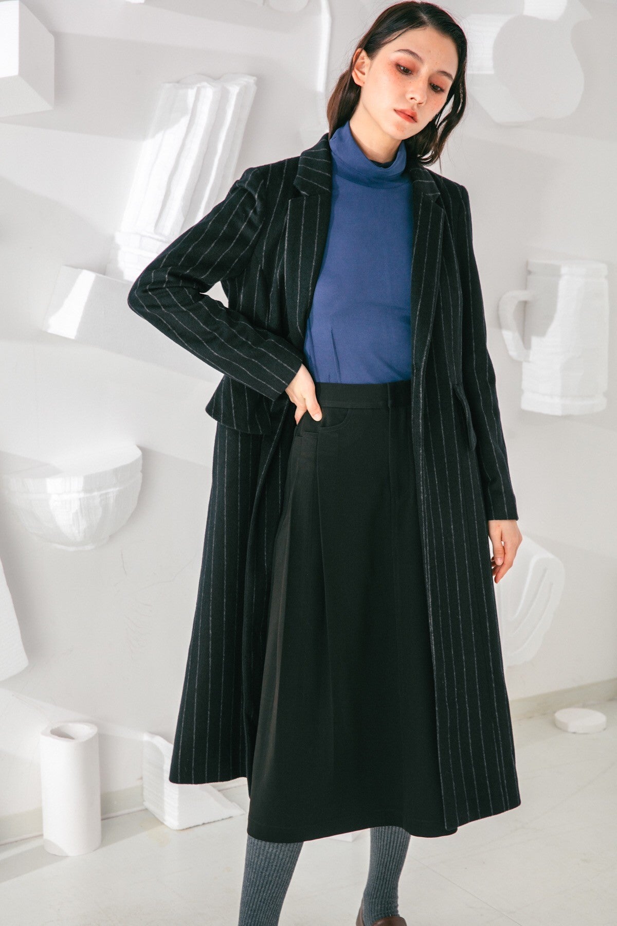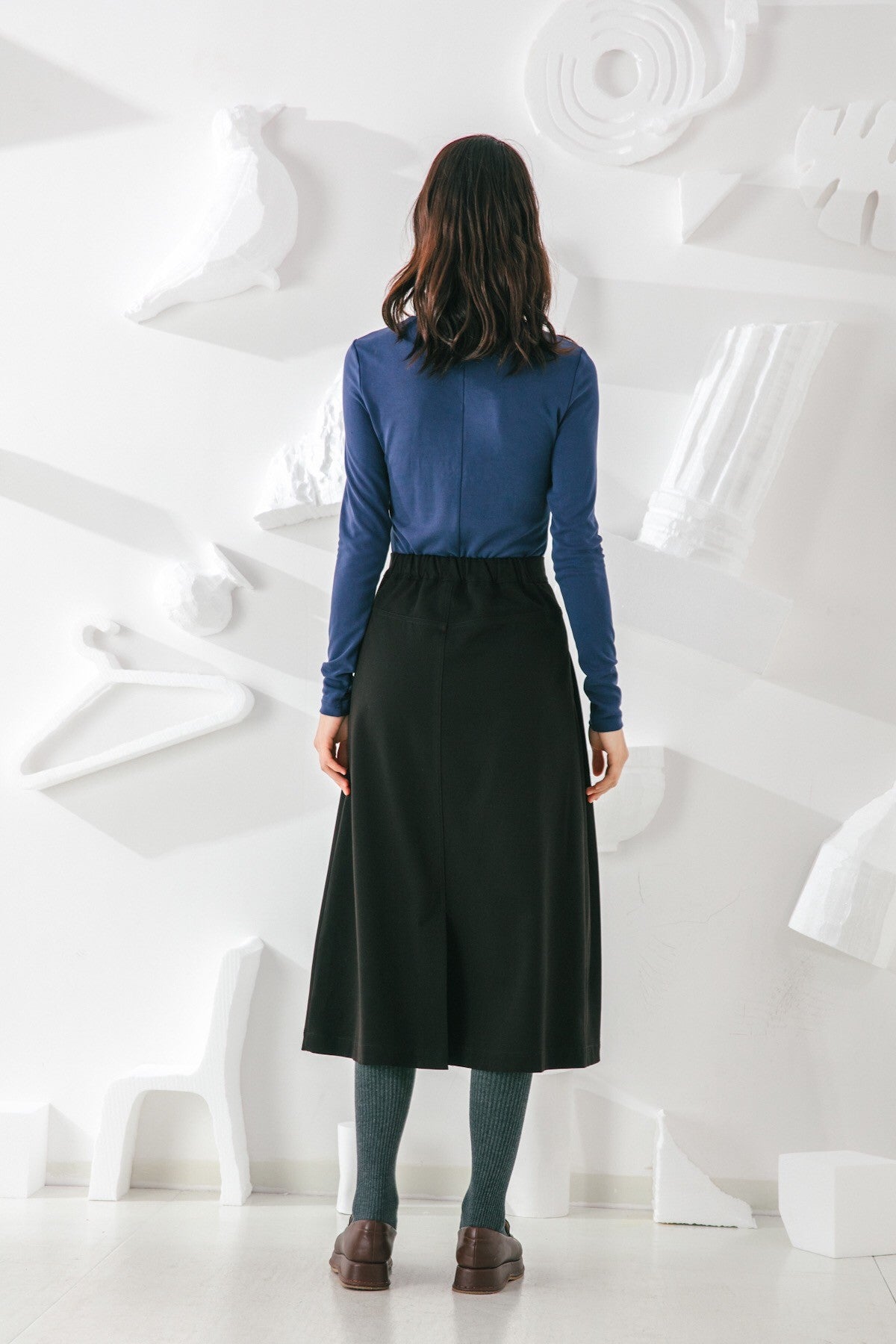 Invest in a timeless wardrobe staple with our Skirt. Its simple yet elegant silhouette is highlighted by elongating vertical pleats and a flattering A-line shape. Wear yours with feminine blouses and sleek outerwear.