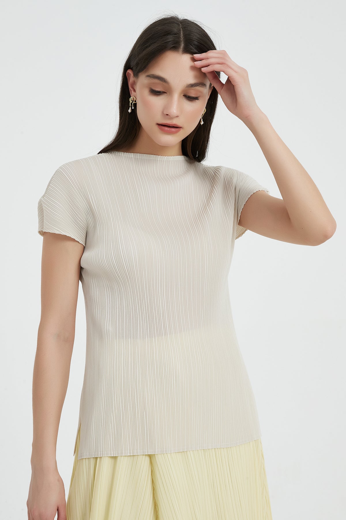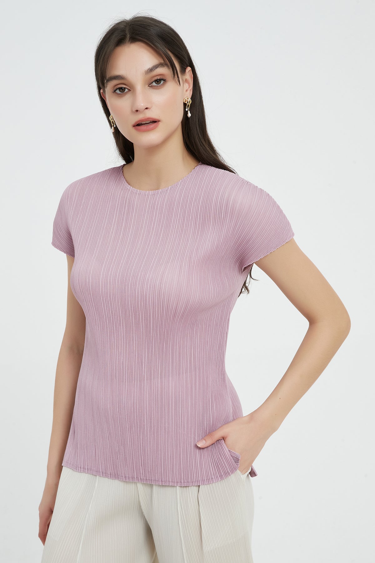 Experience ease and comfort with our top, designed with sophisticated pleats to flatter all sizes. Stylish and practical, this wrinkle-proof top is a must-have for an effortless wardrobe.