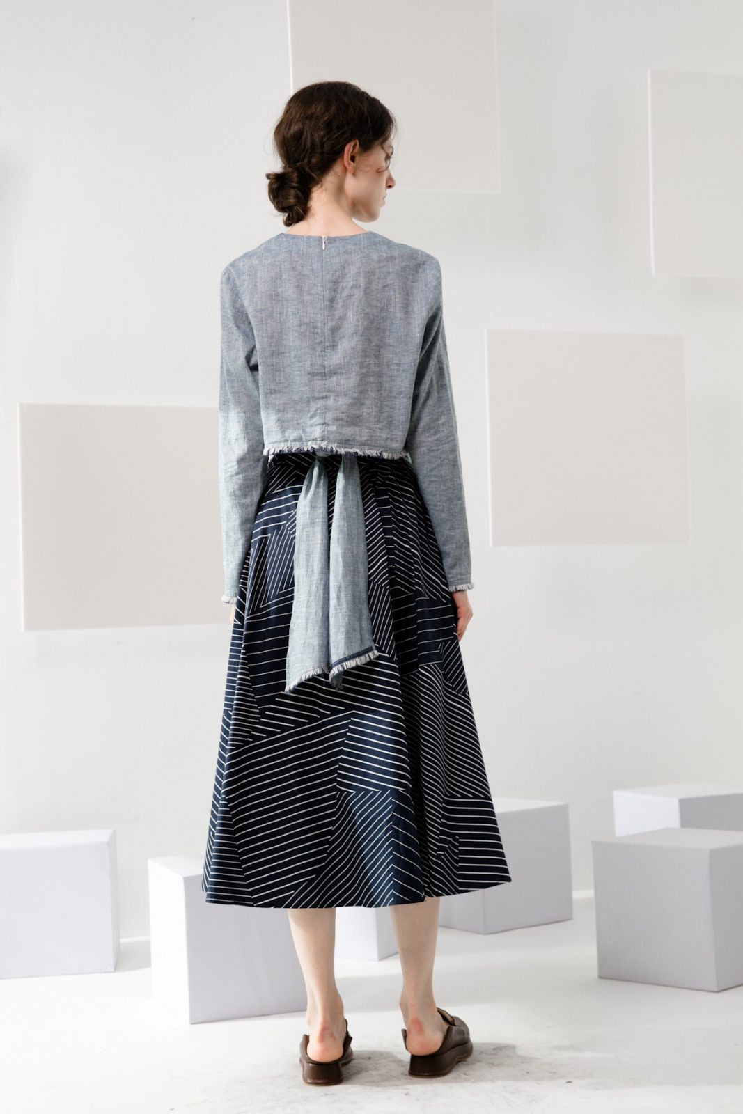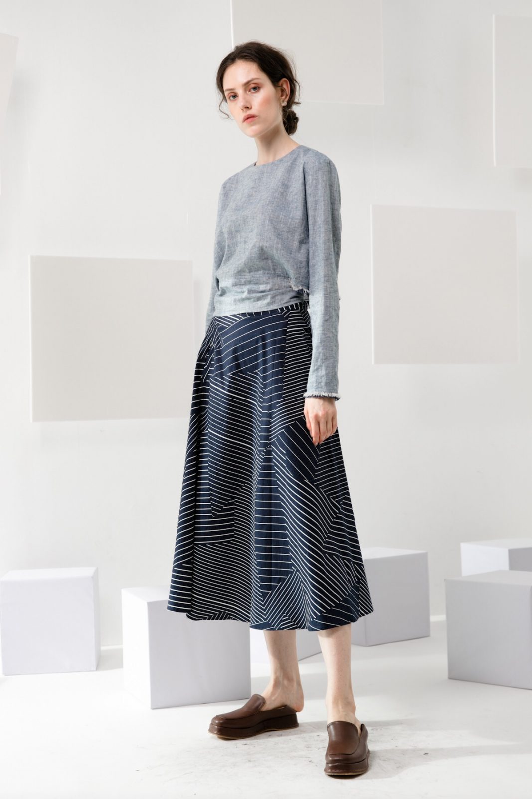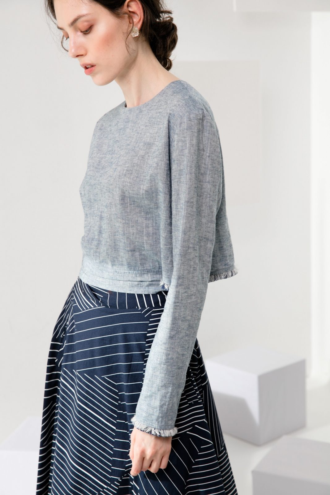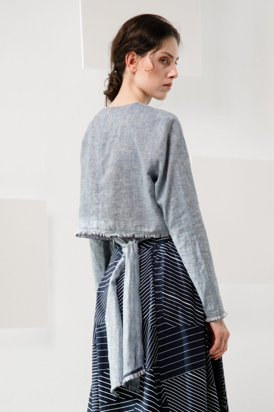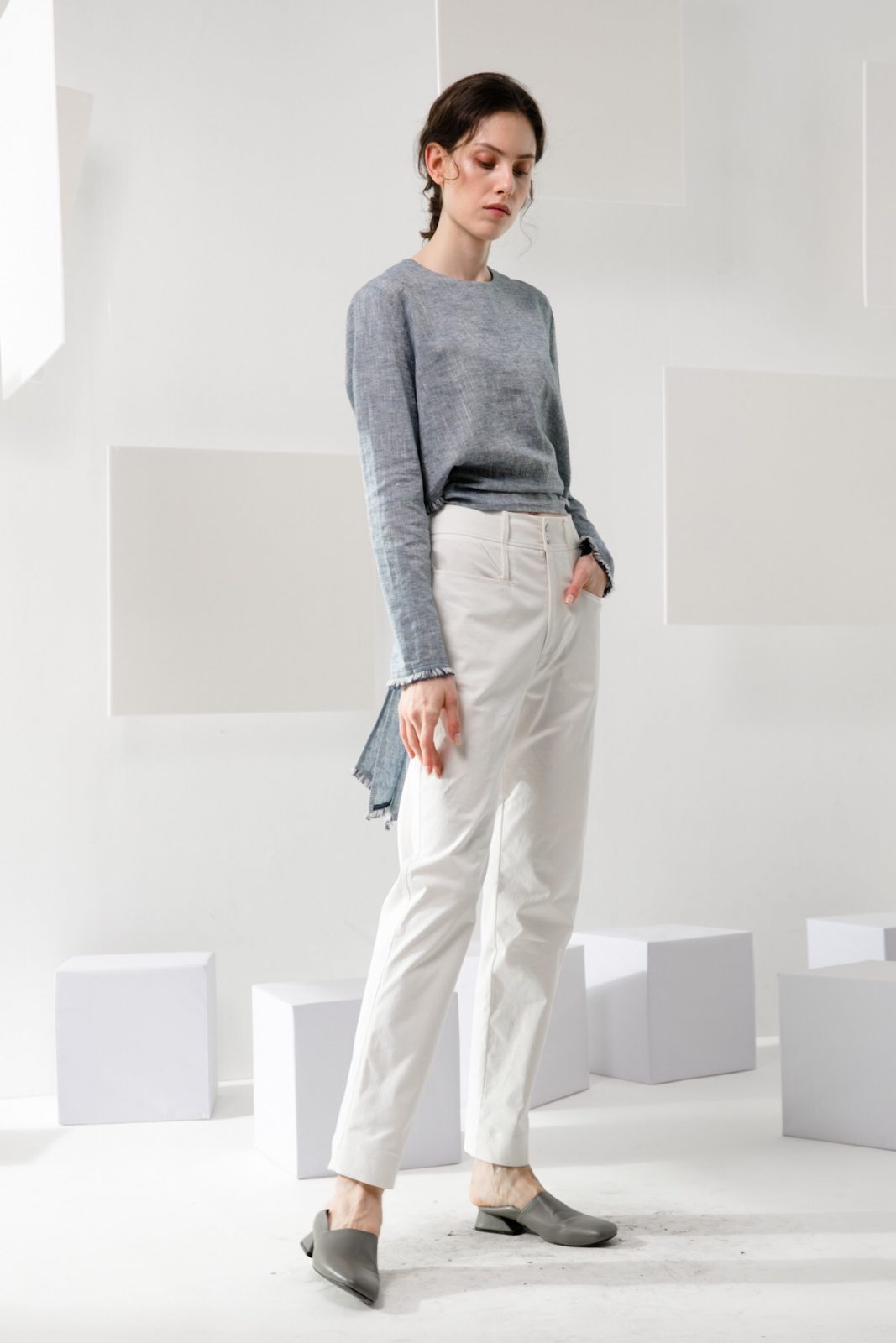 Cropped length creates an elongated silhouette