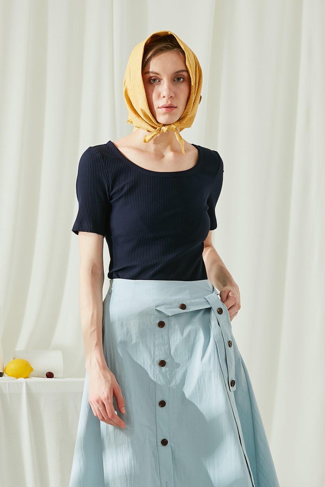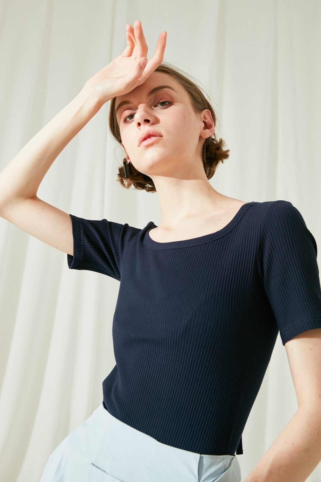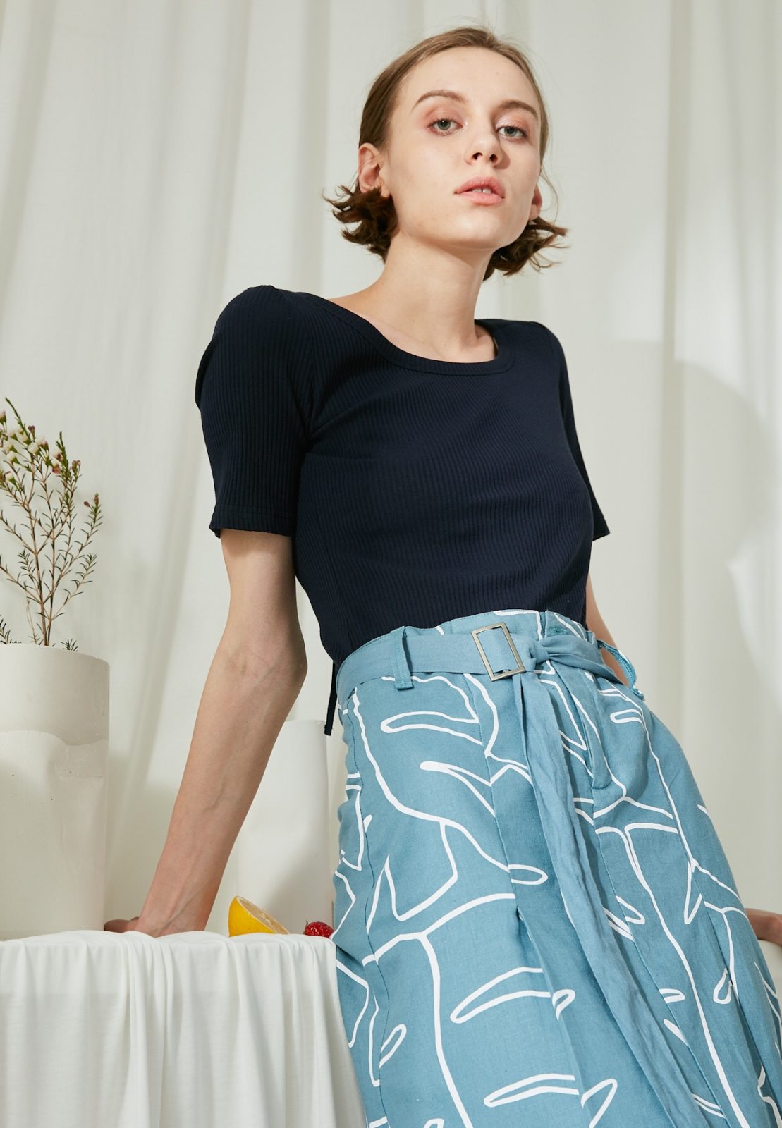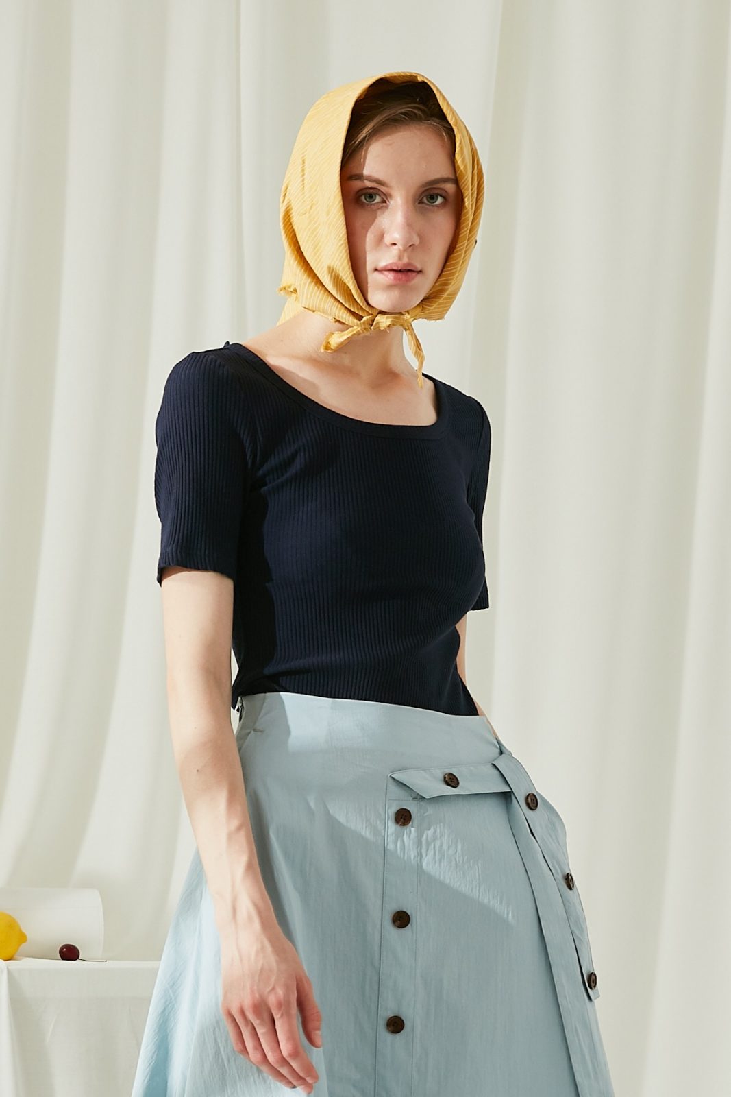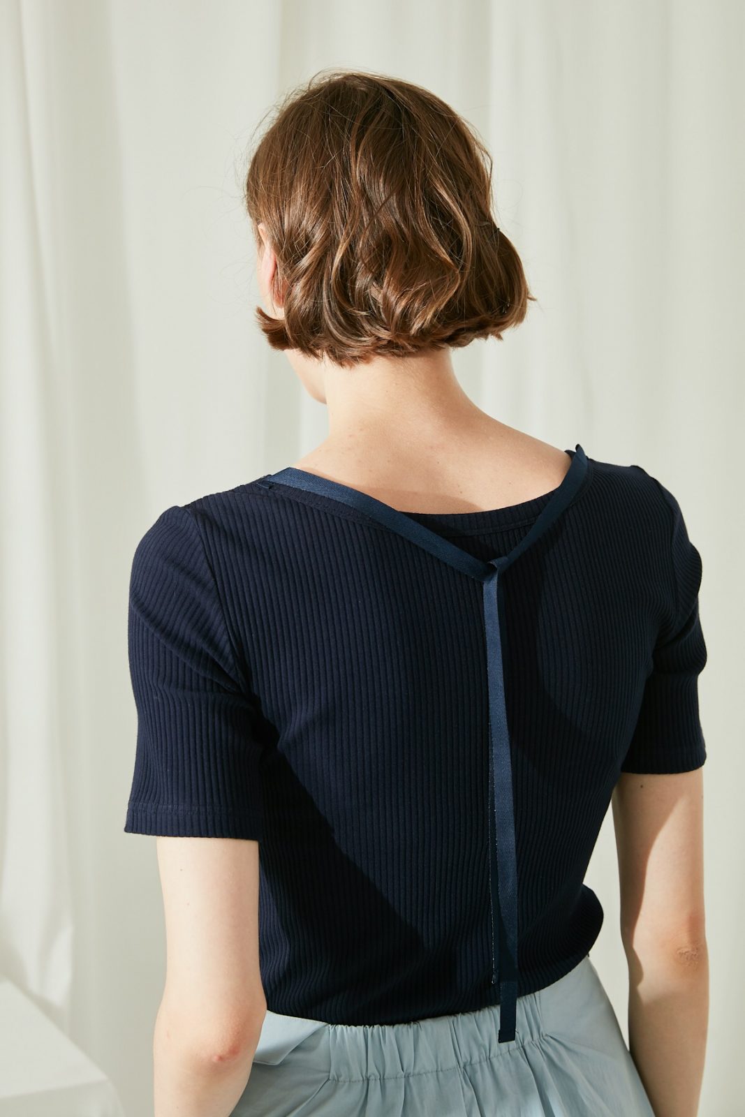 Our Top provides an array of styling options with its classic silhouette. Featuring an elegant oval-shaped neckline and beautiful self-tie ribbons in the back, this piece is as versatile as it is beautifully feminine.