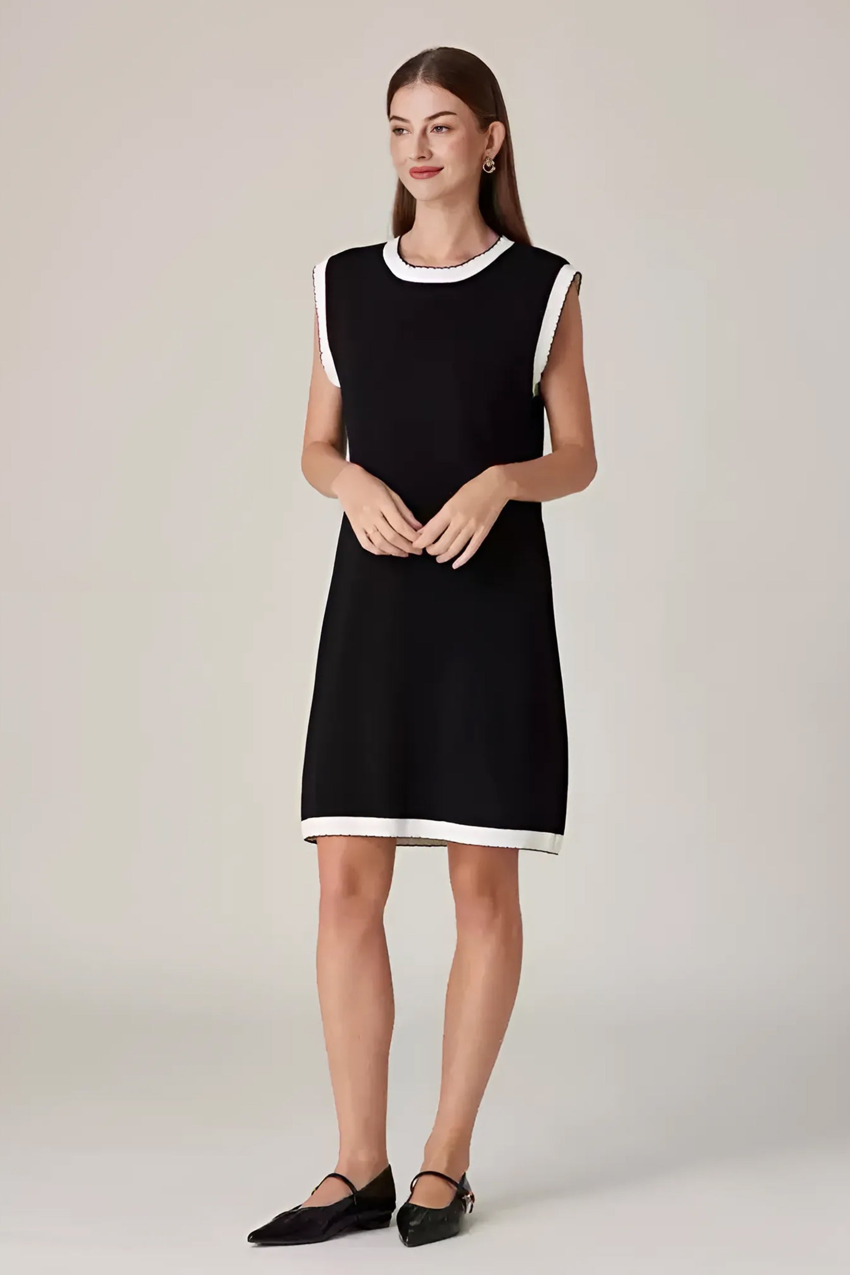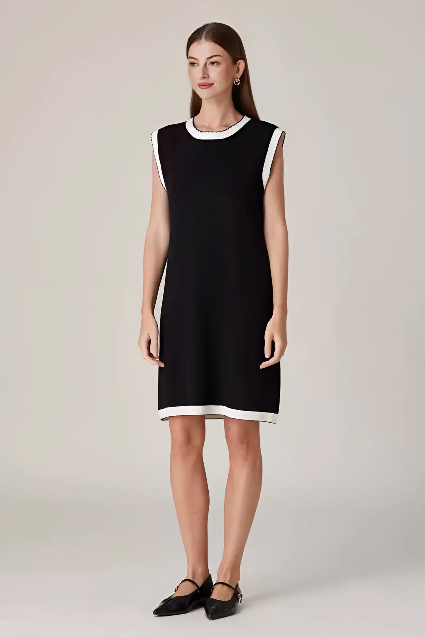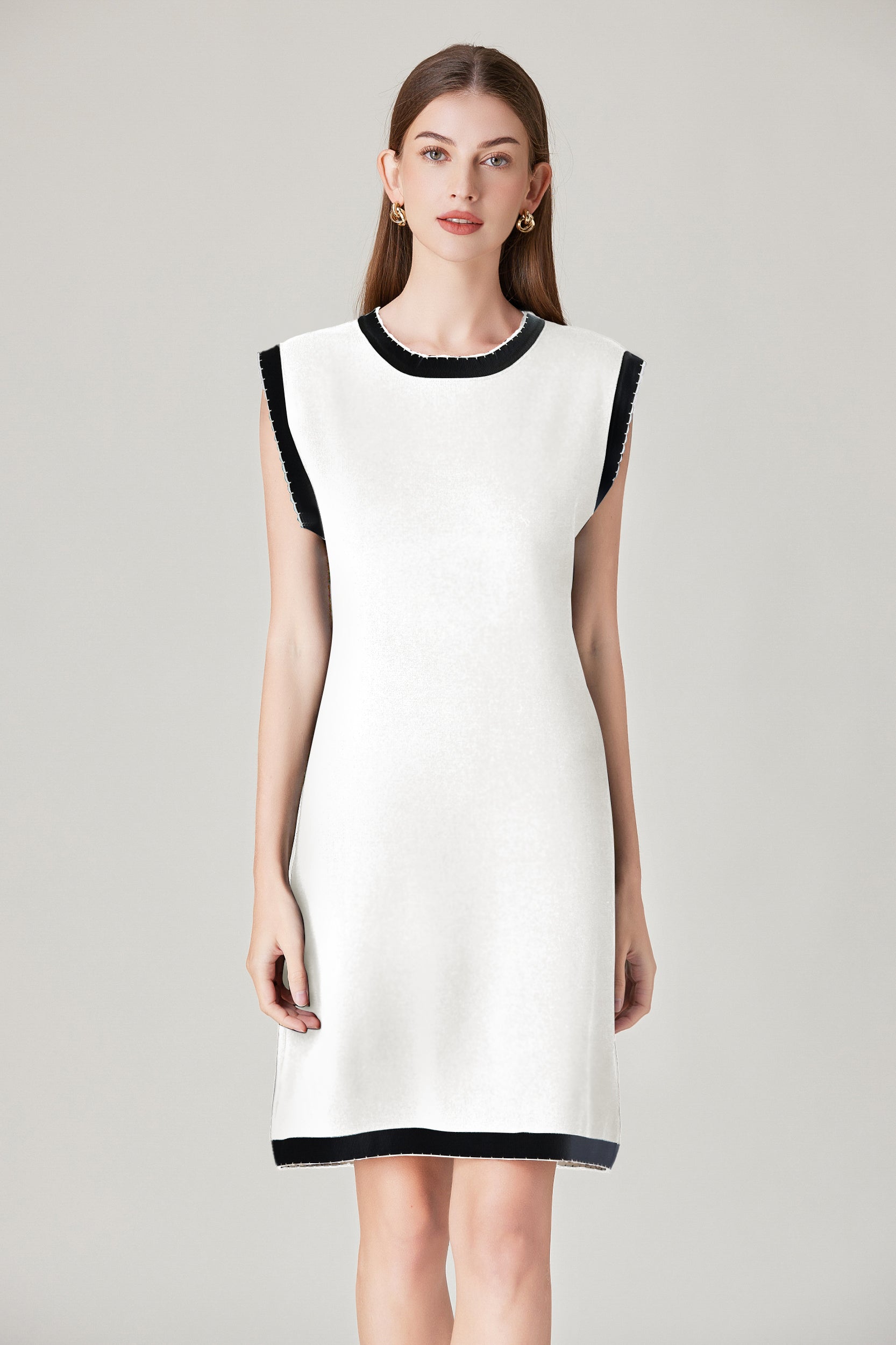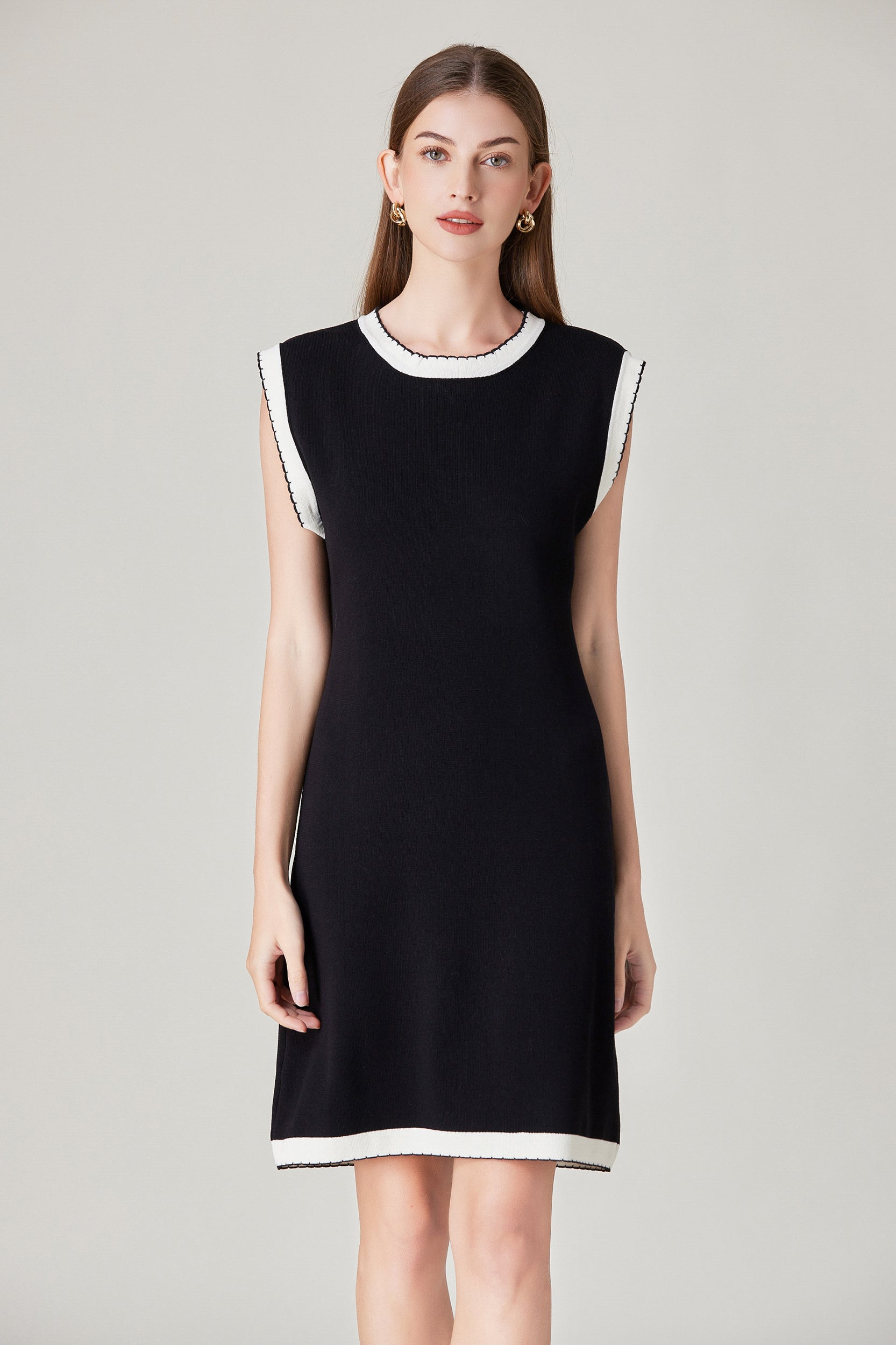 Experience refined sophistication and comfort with our dress. This dress offers a luxurious and comfortable fit with its stretch knit fabric while the classic contrast trim adds a touch of timeless charm.