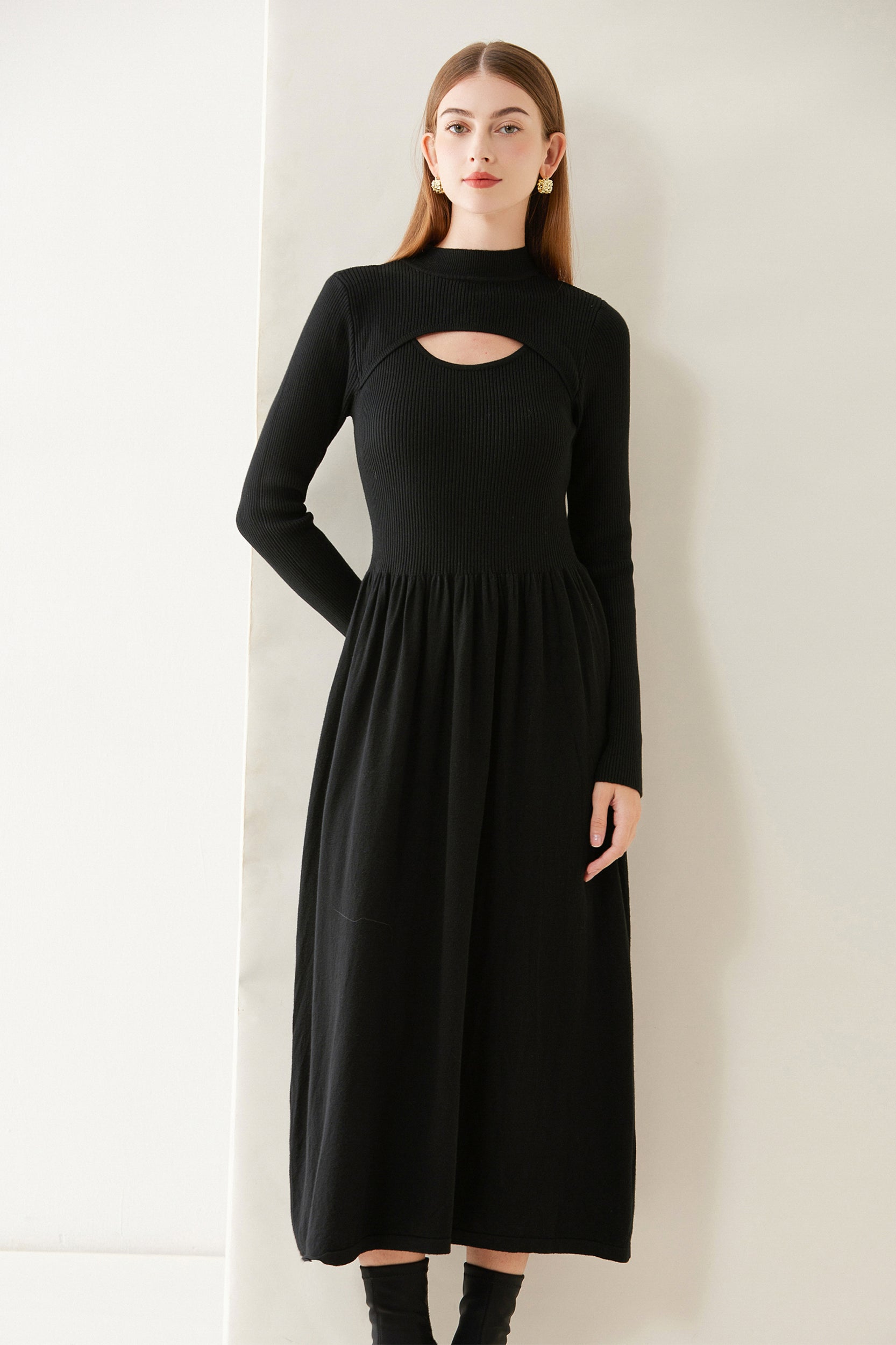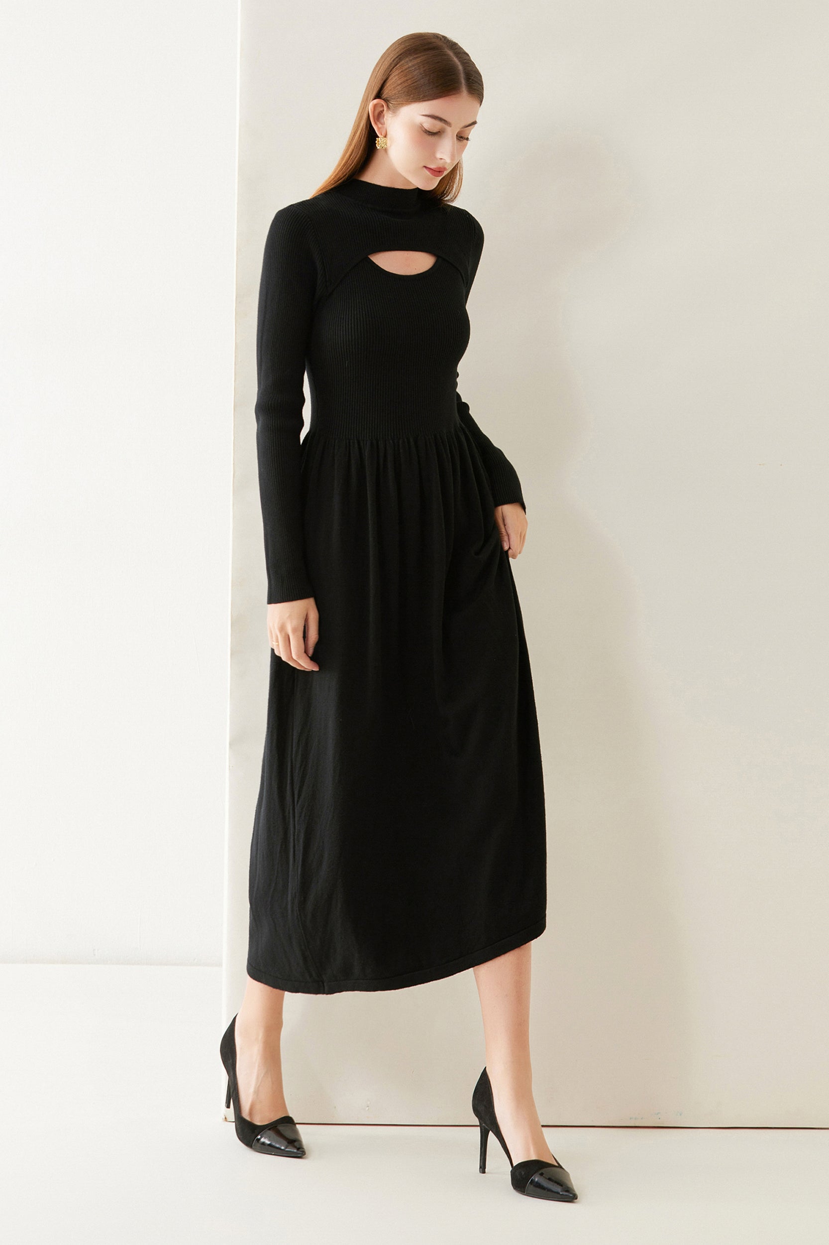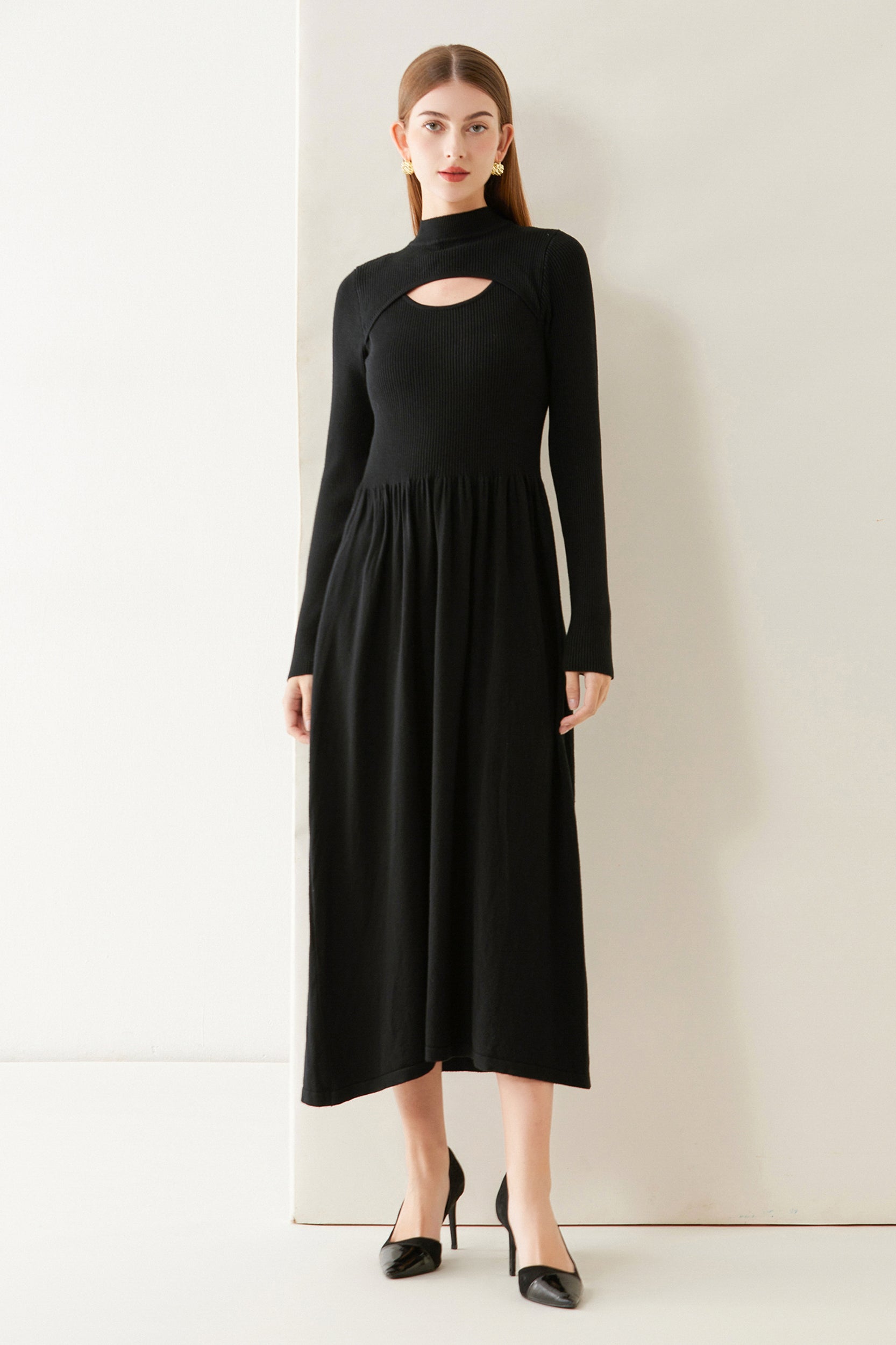 Make a statement in our dress, made from a stretchy ribbed knit fabric that hugs your shape. Its chic cutout details add a touch of allure to the classic midi silhouette.