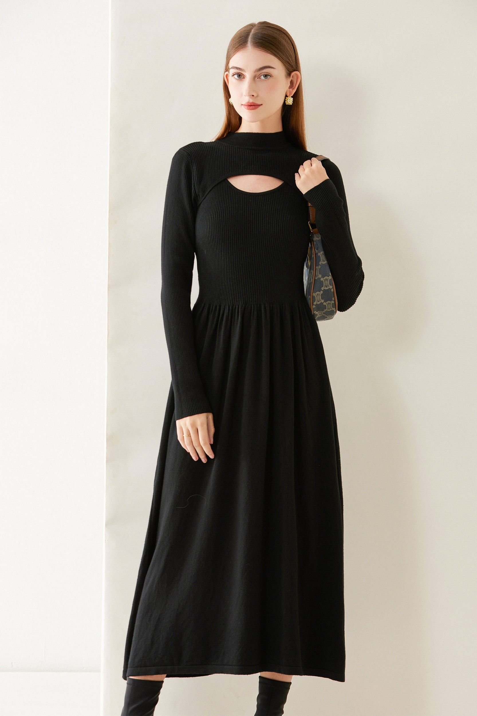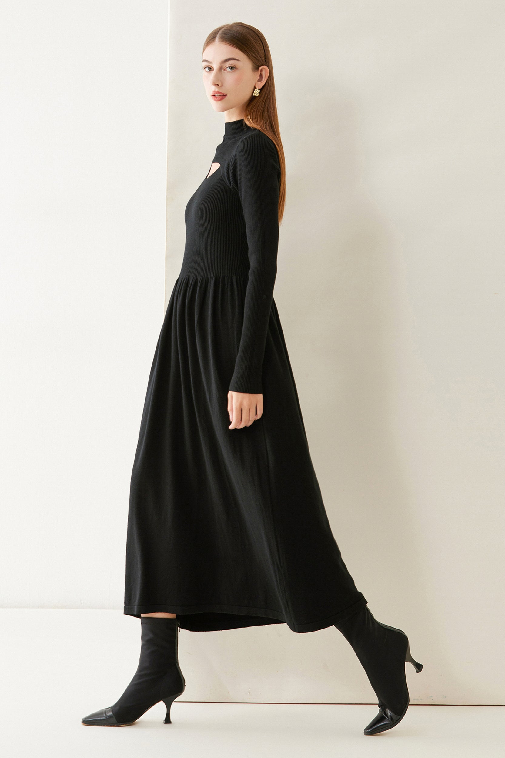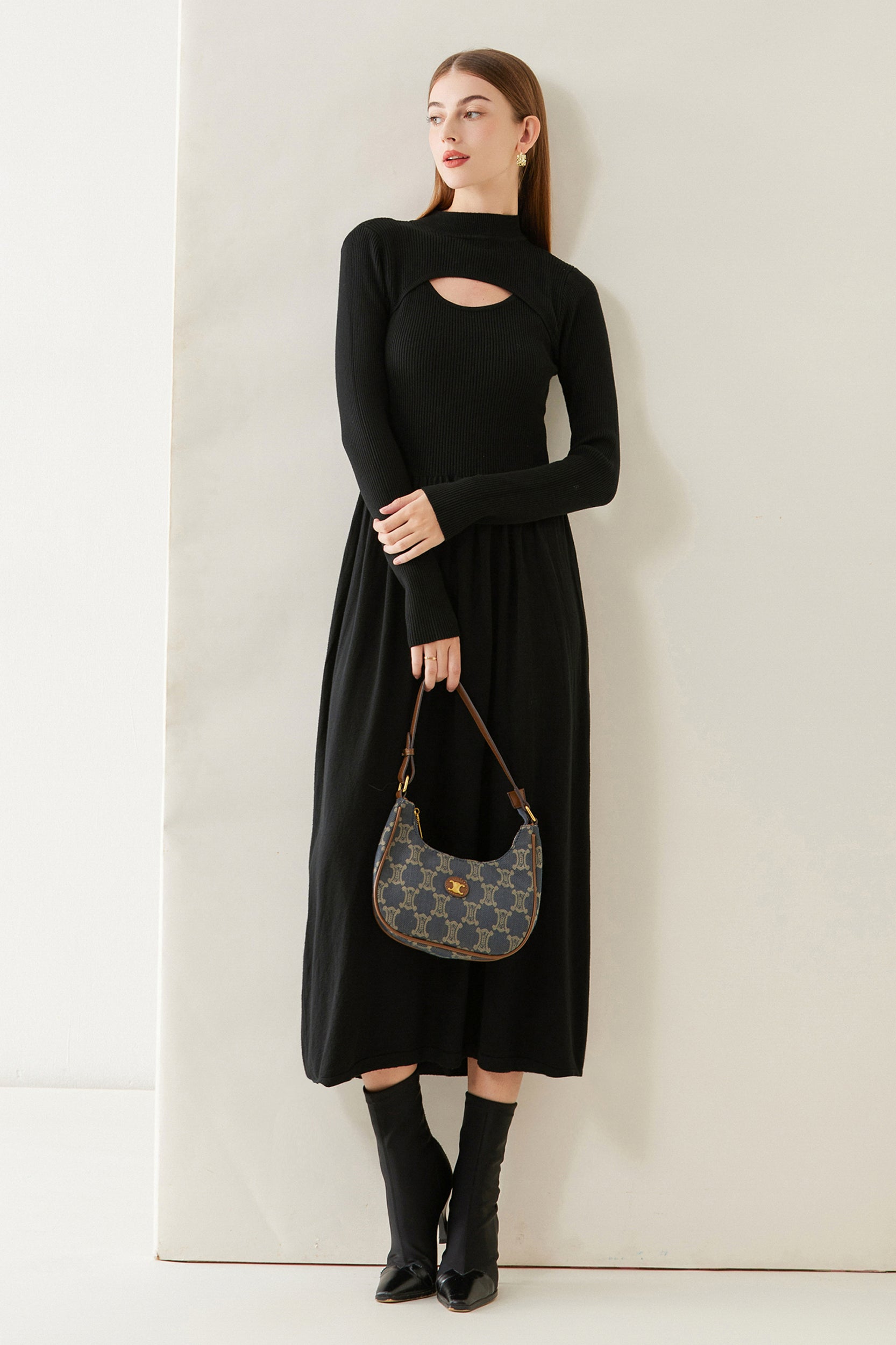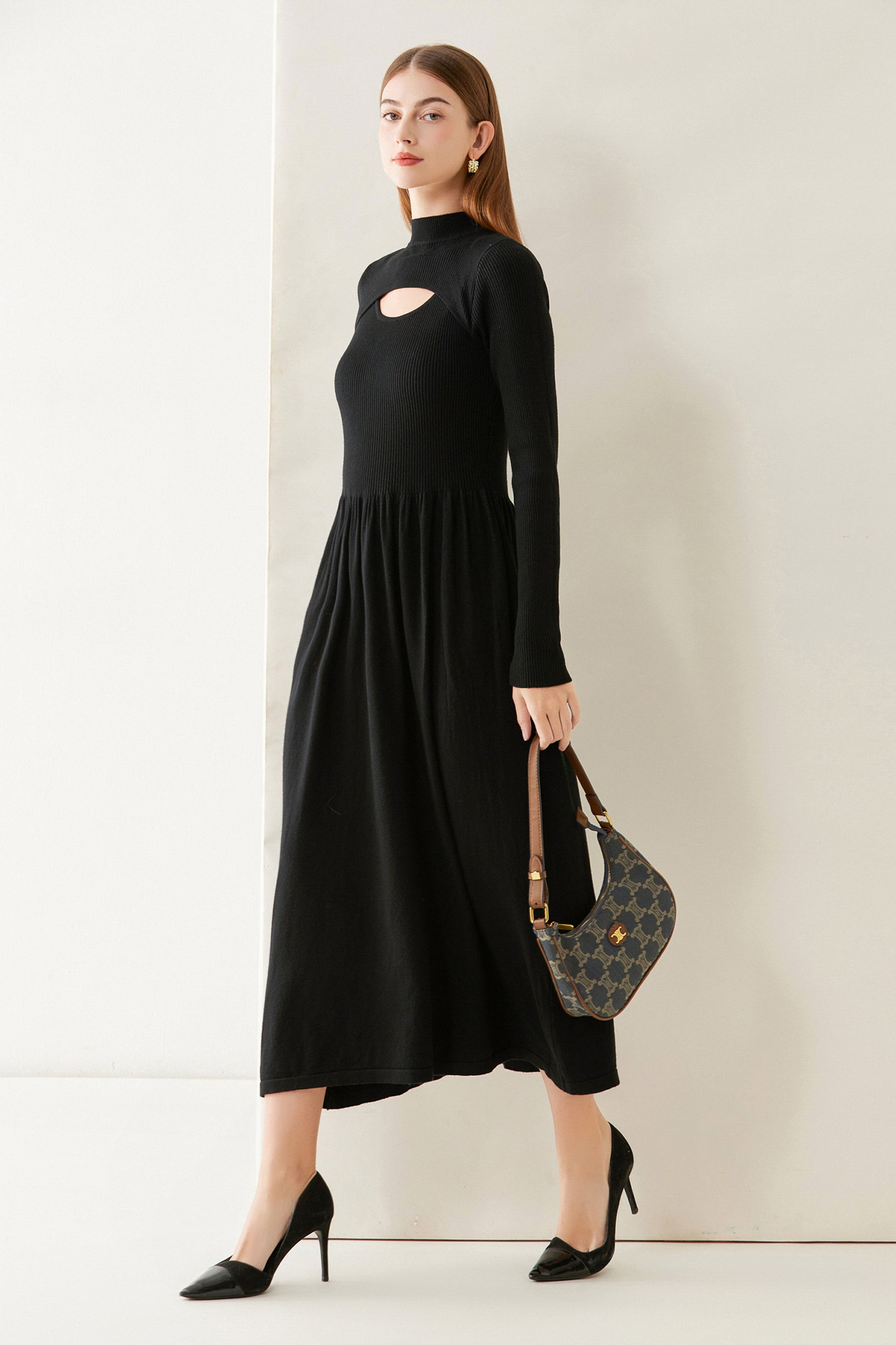 Make a statement in our dress, made from a stretchy ribbed knit fabric that hugs your shape. Its chic cutout details add a touch of allure to the classic midi silhouette.
