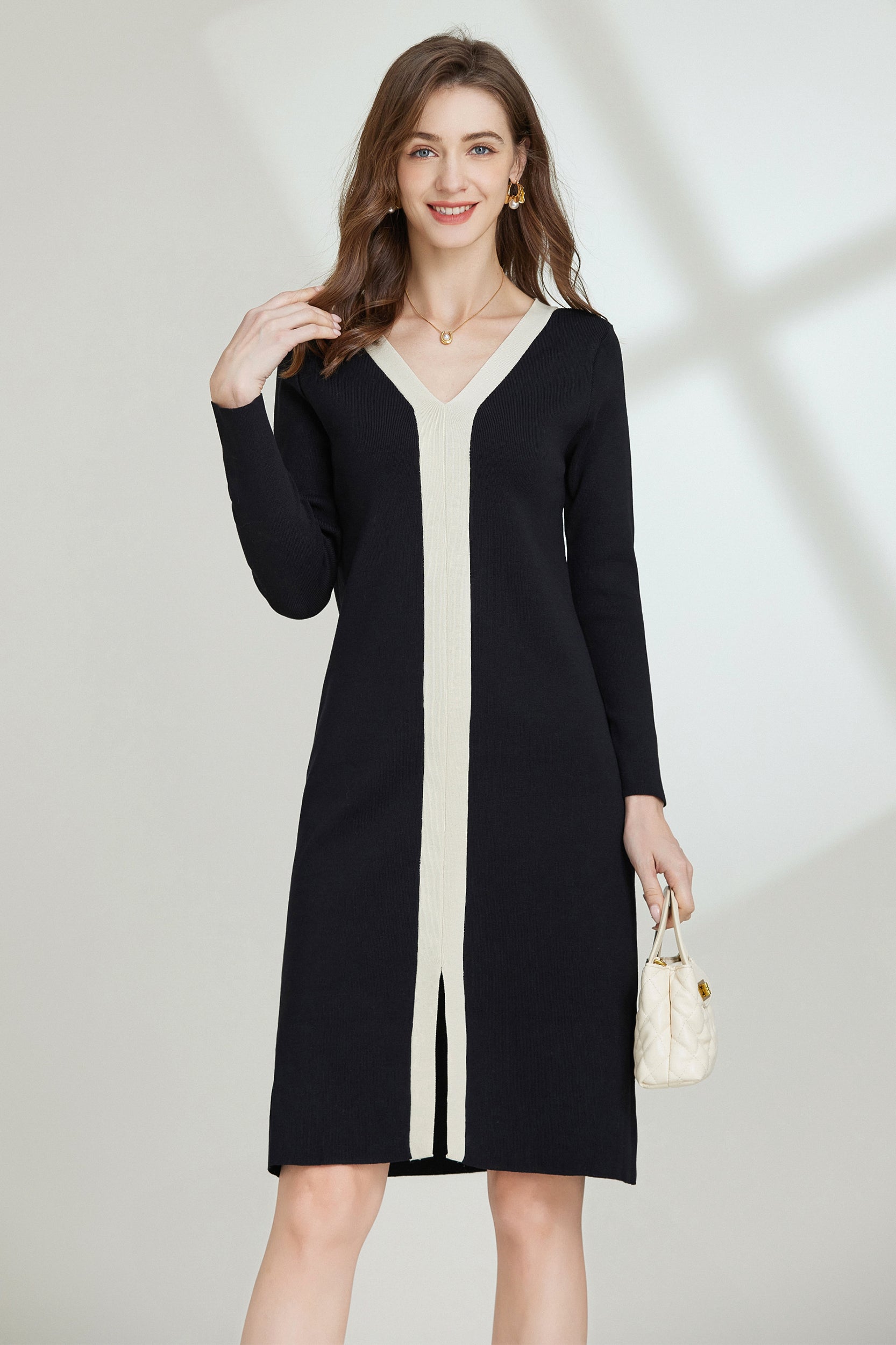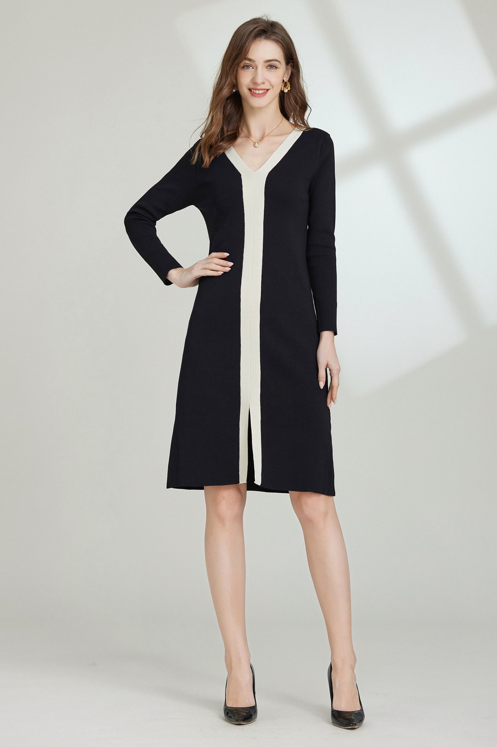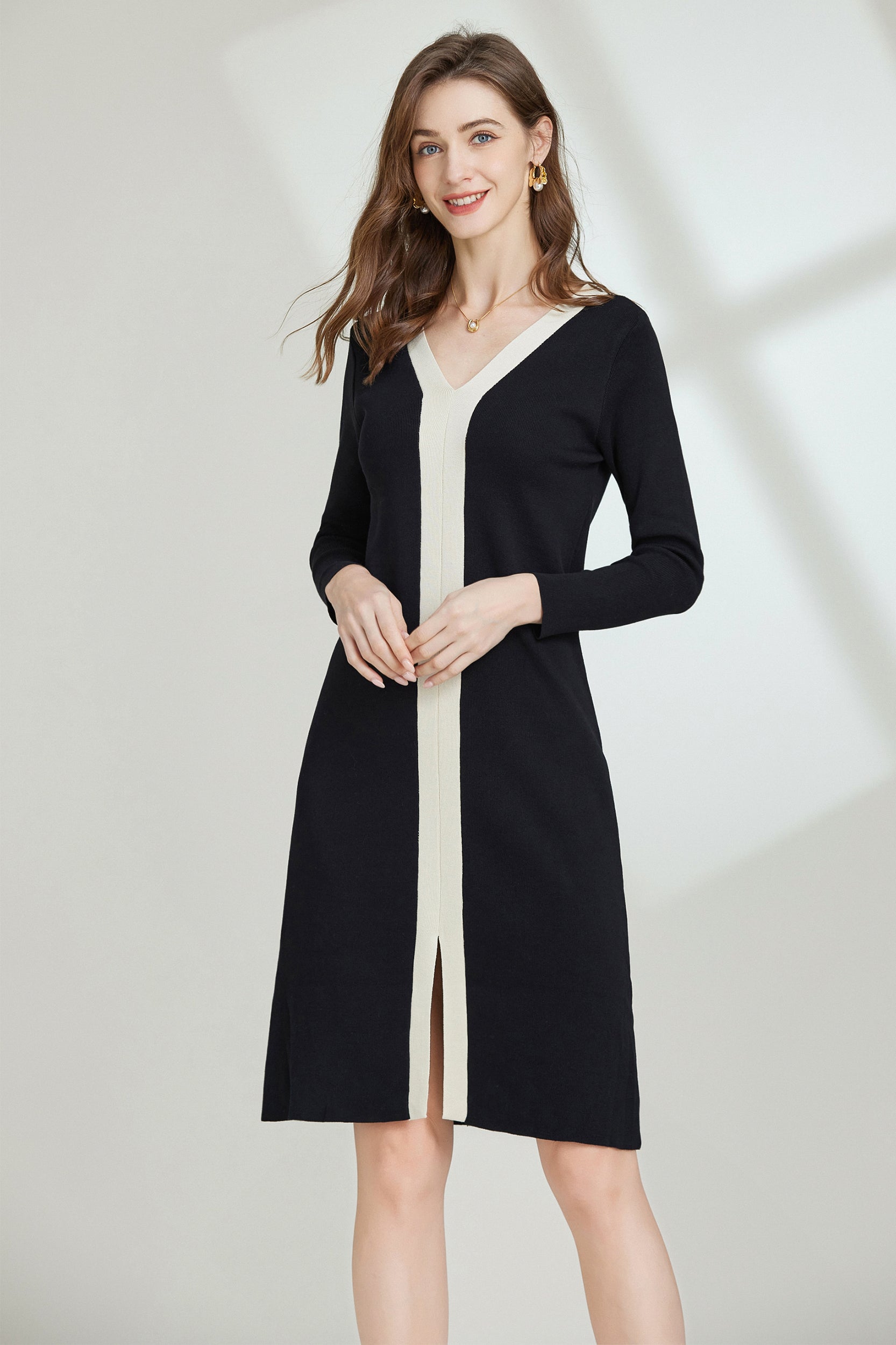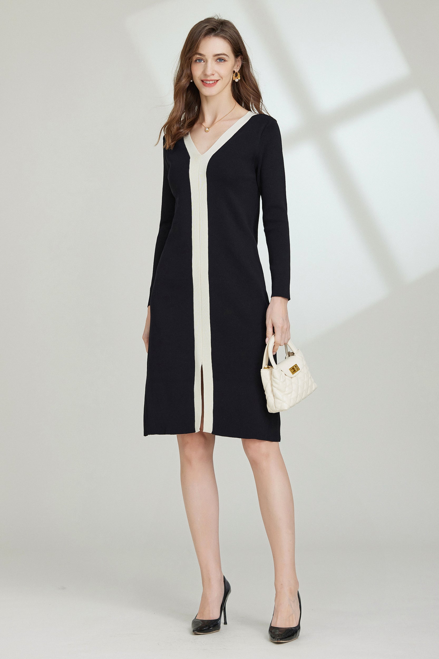 Add a touch of sophistication to your wardrobe with this dress. Designed with a contrasting front stripe detail and a front slit, it offers a flattering silhouette that’s perfect for both work and evening wear. The dress is crafted from a soft, comfortable fabric that drapes beautifully, ensuring you stay stylish and at ease.