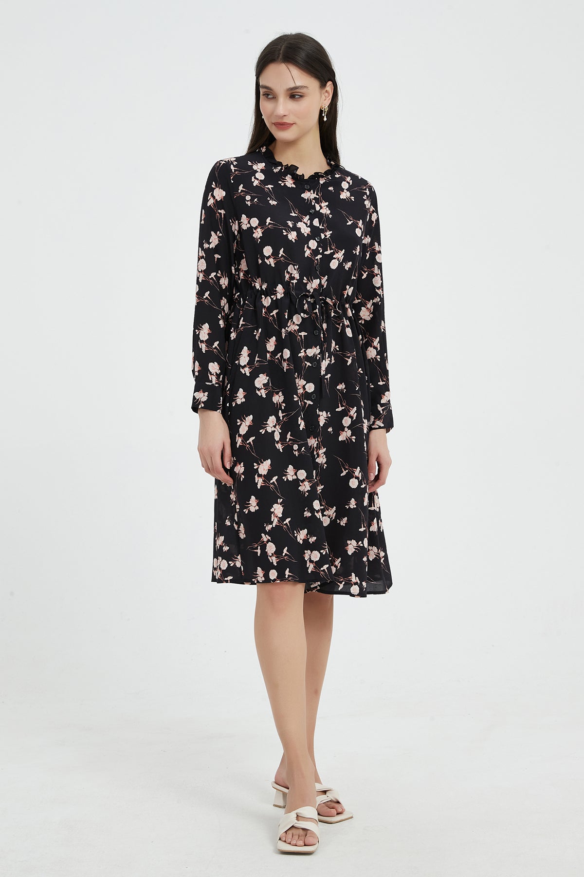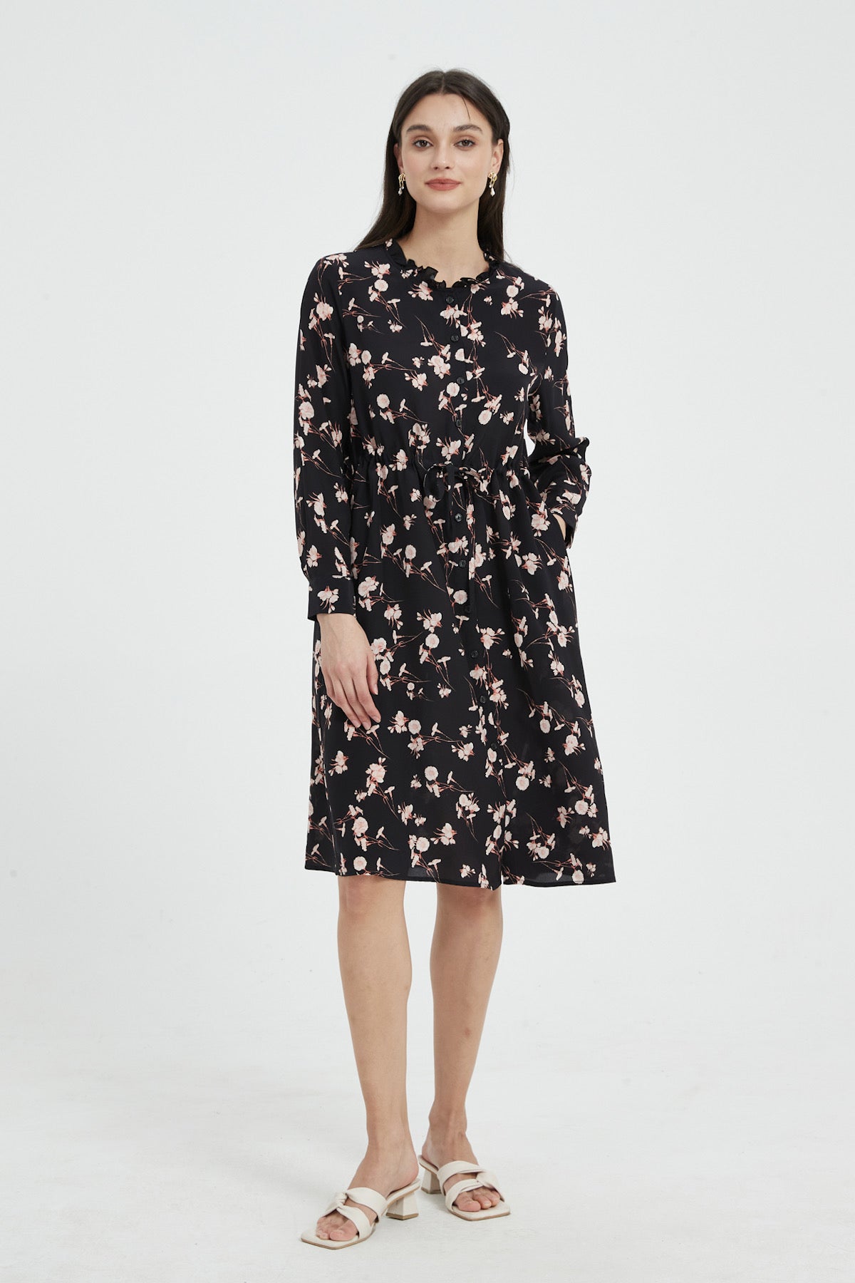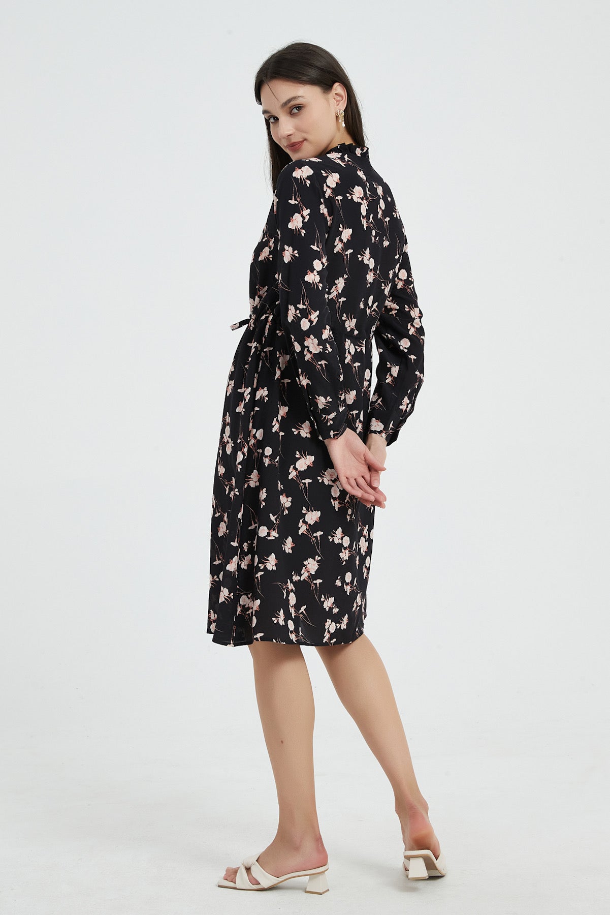 Embrace effortless elegance with our dress, featuring a feminine floral print and flattering midi-length design.