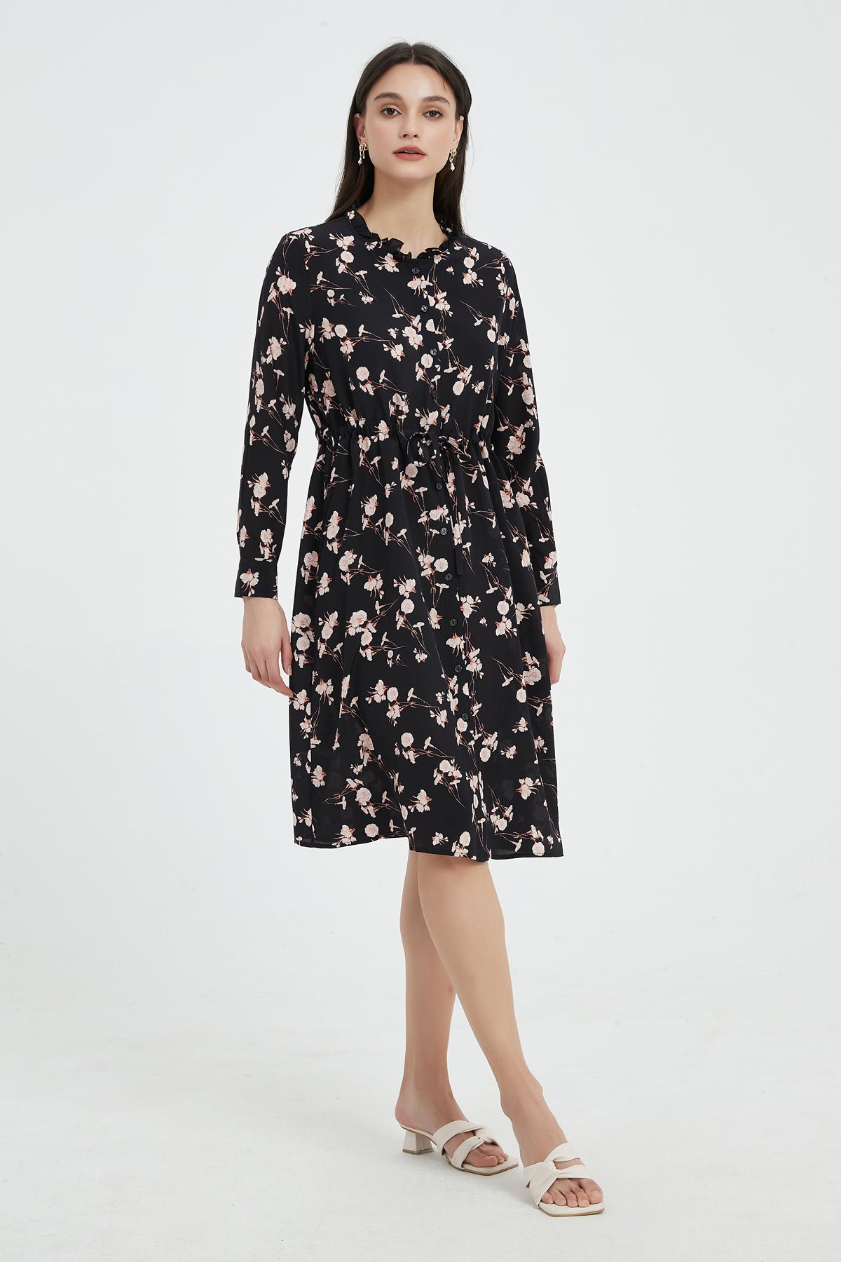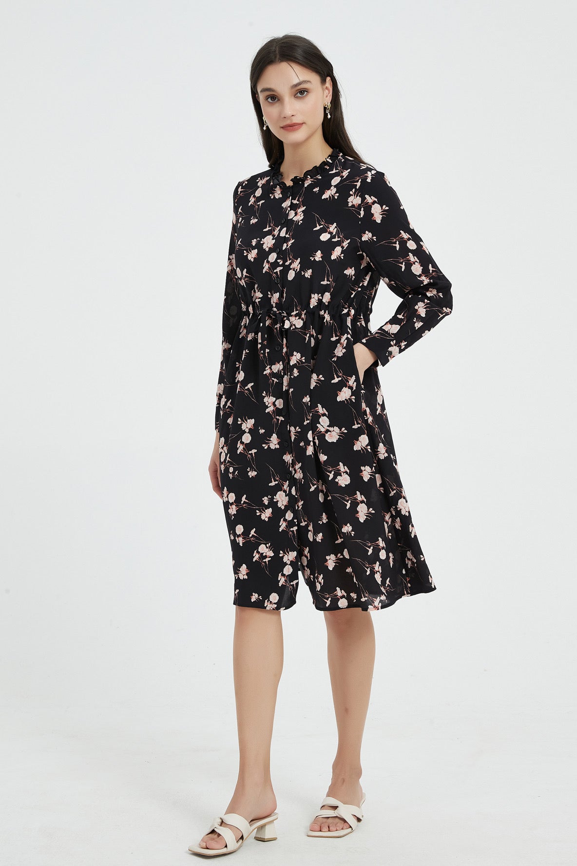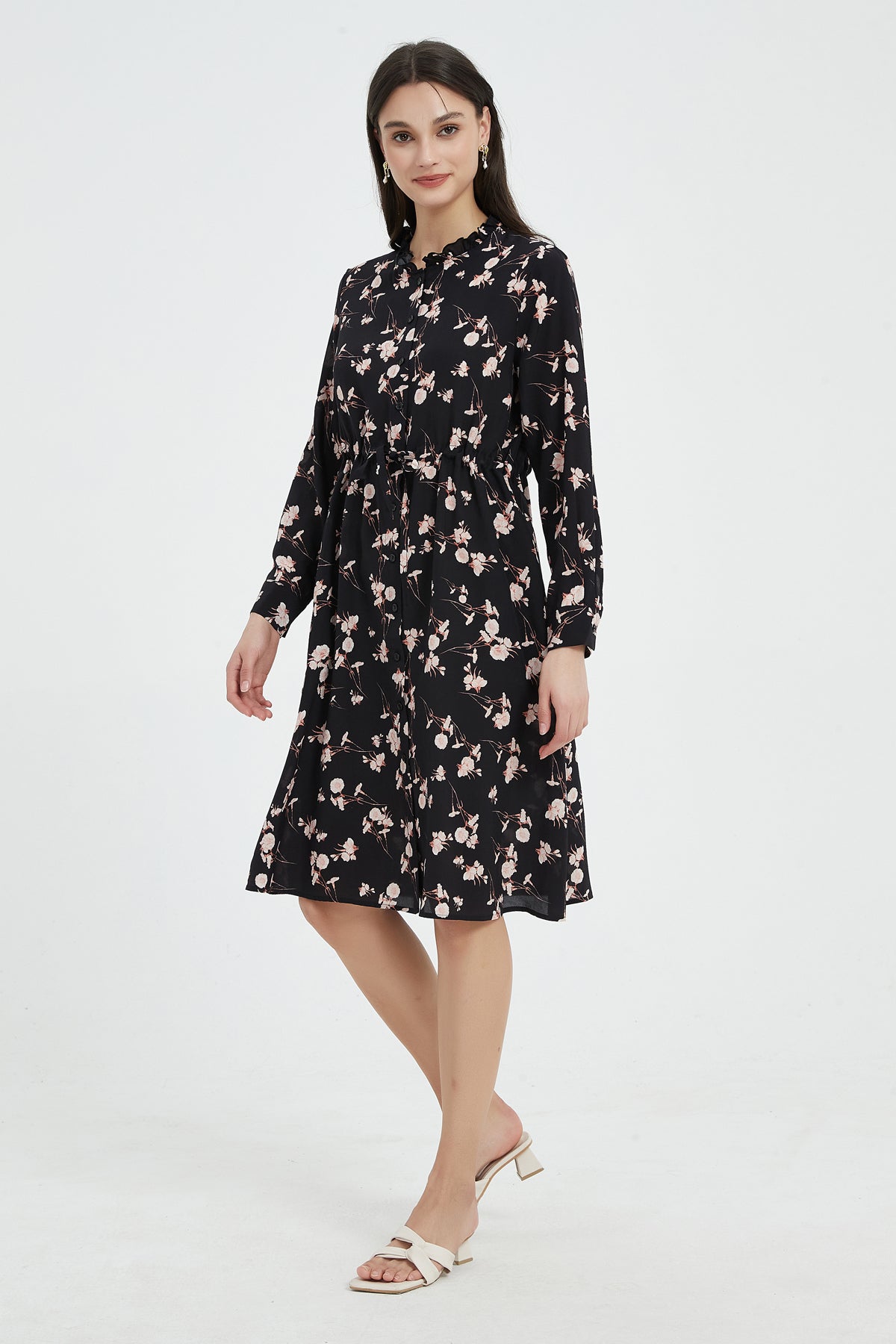 Embrace effortless elegance with our dress, featuring a feminine floral print and flattering midi-length design.