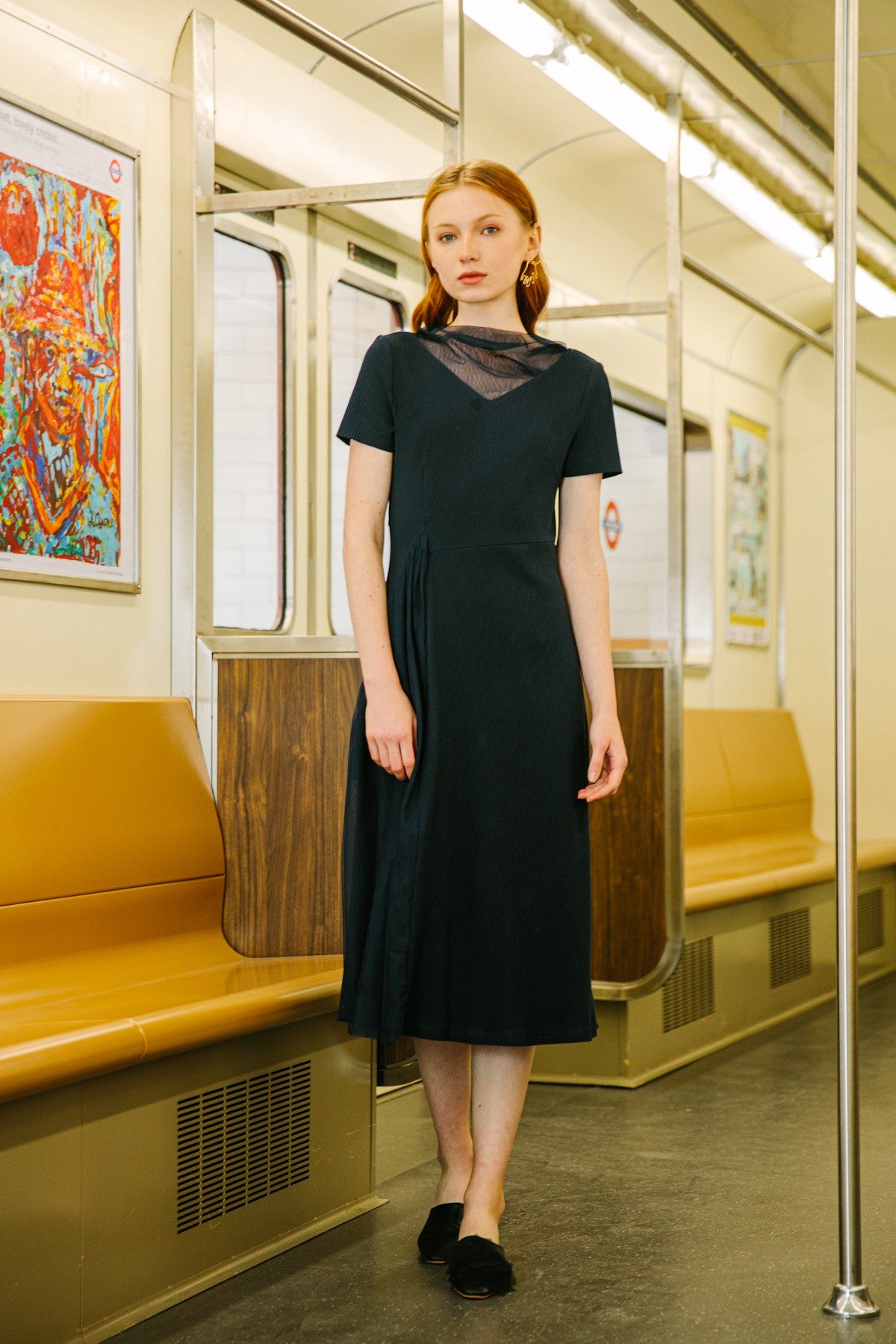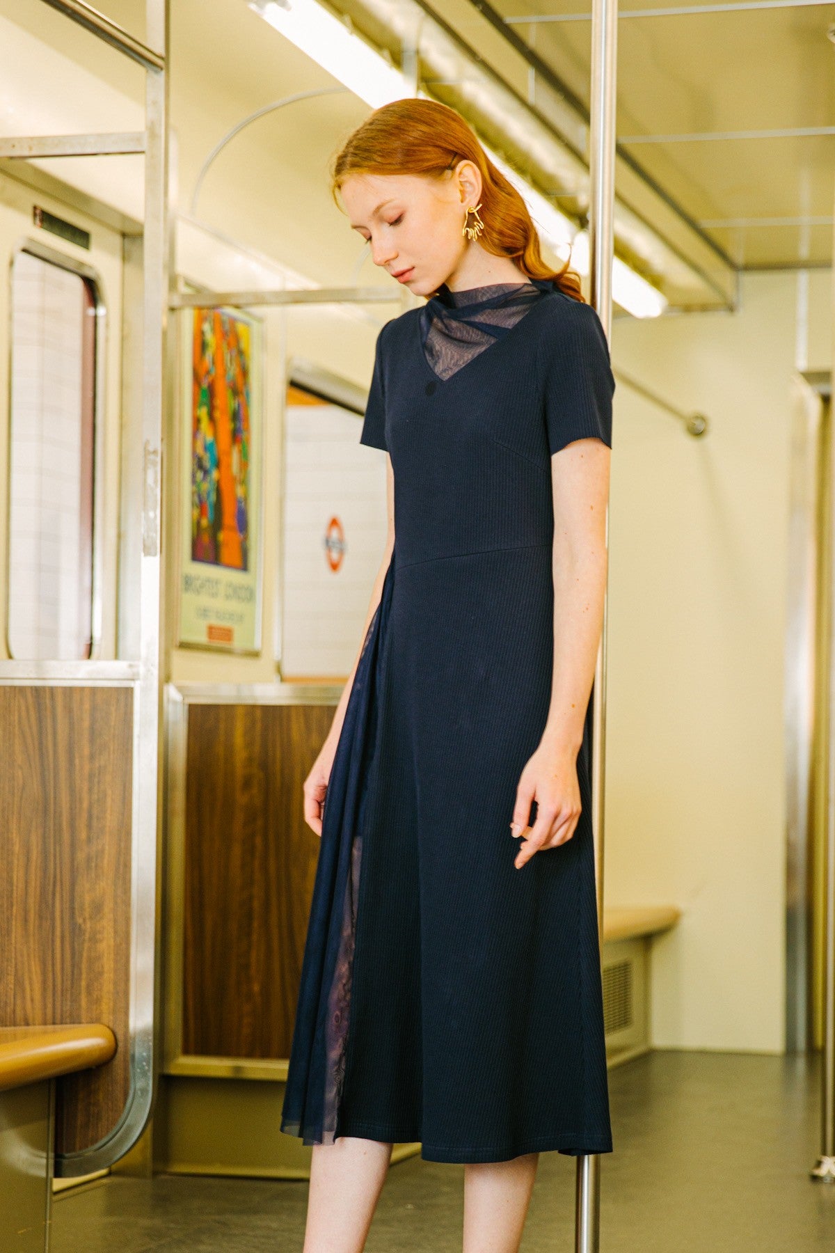 Embrace sheer elegance with our beautiful Dress, featuring a flattering fit-and-flare silhouette and alluring V-cut neckline.
