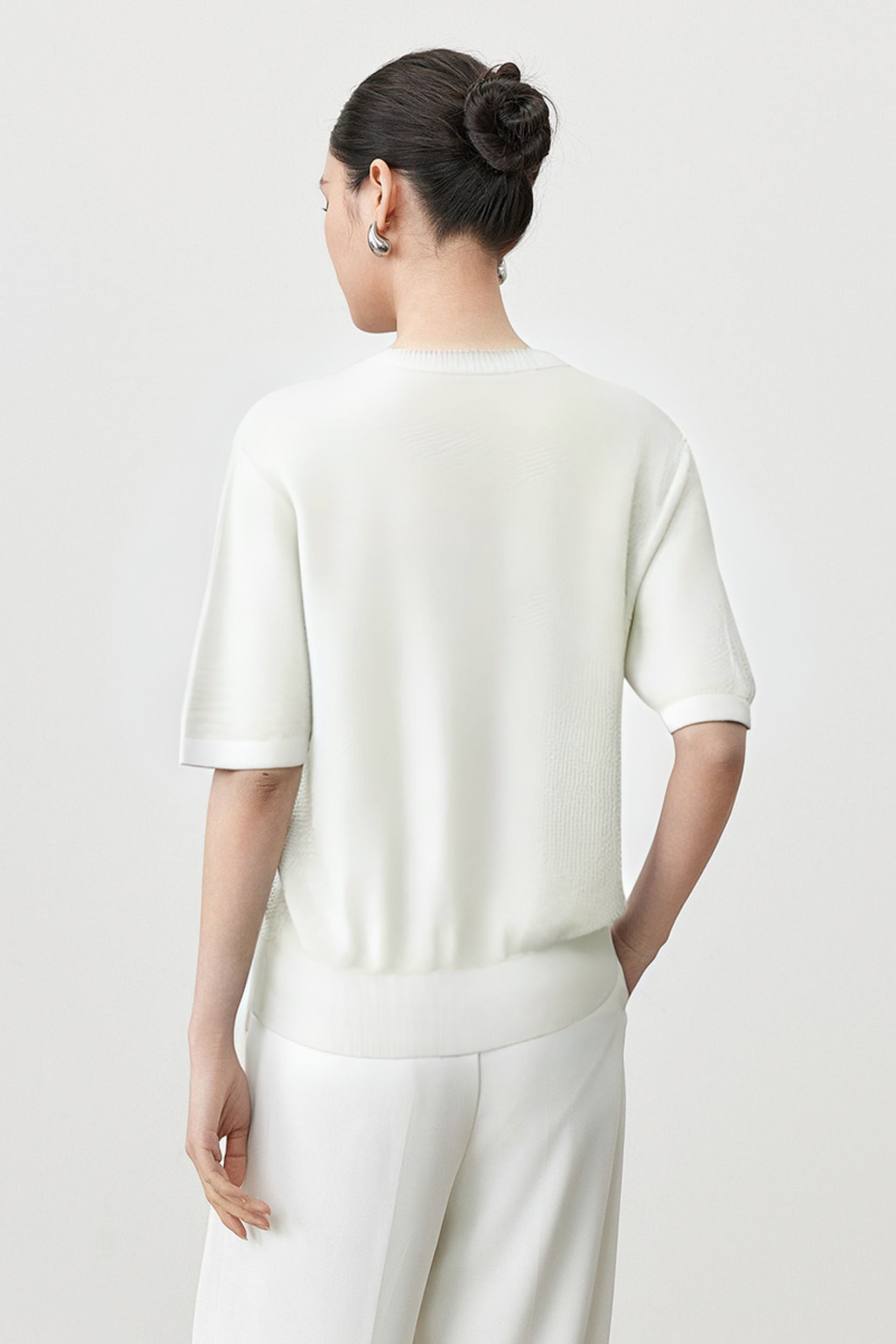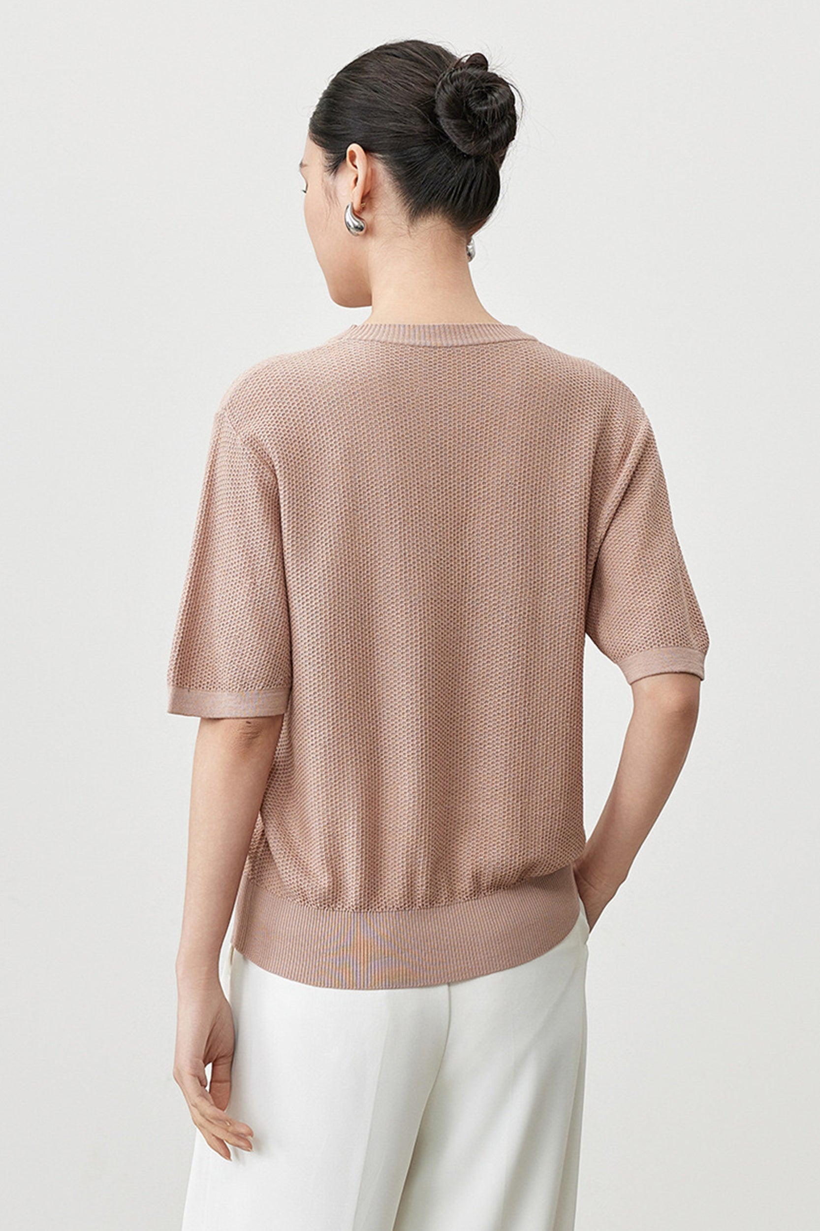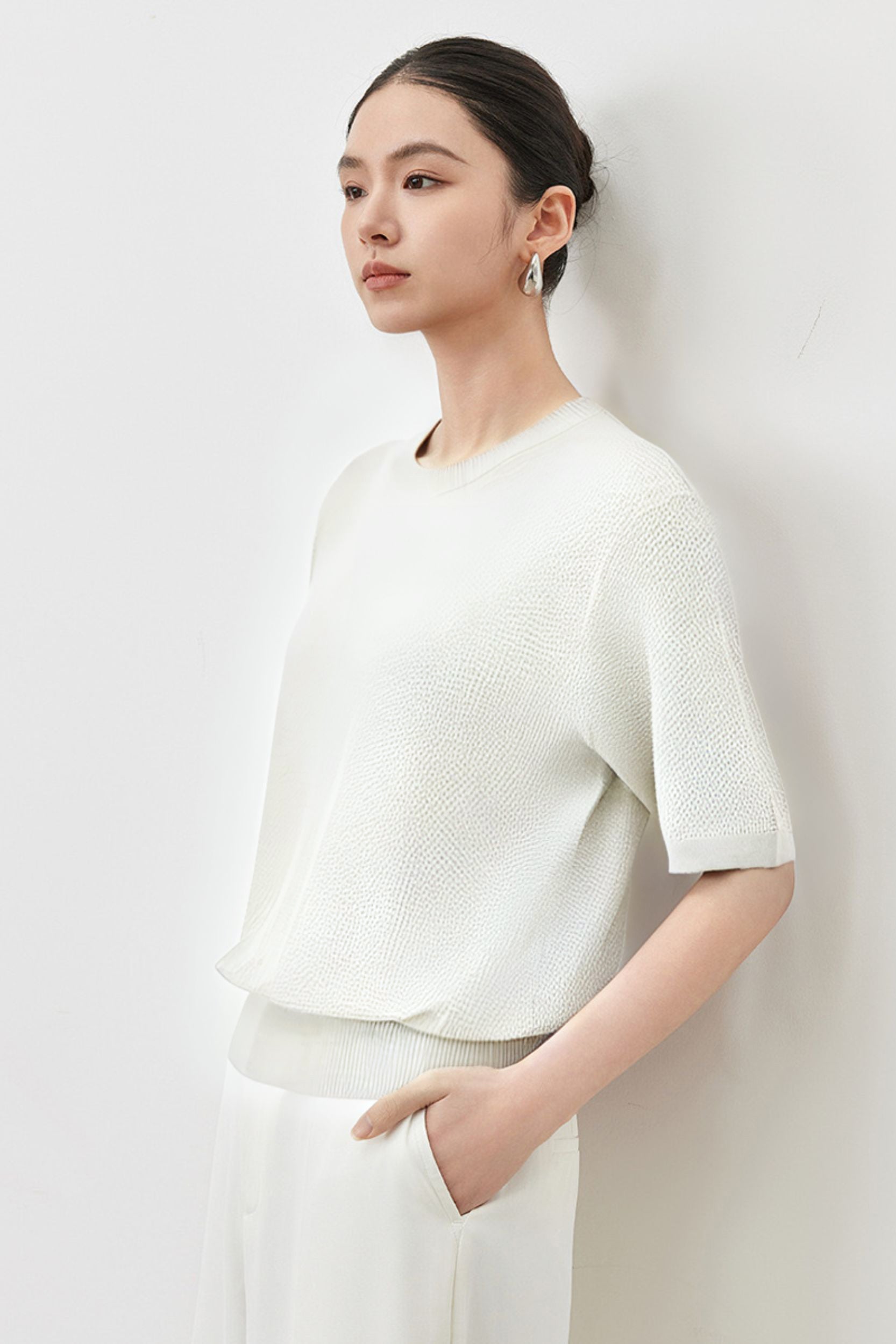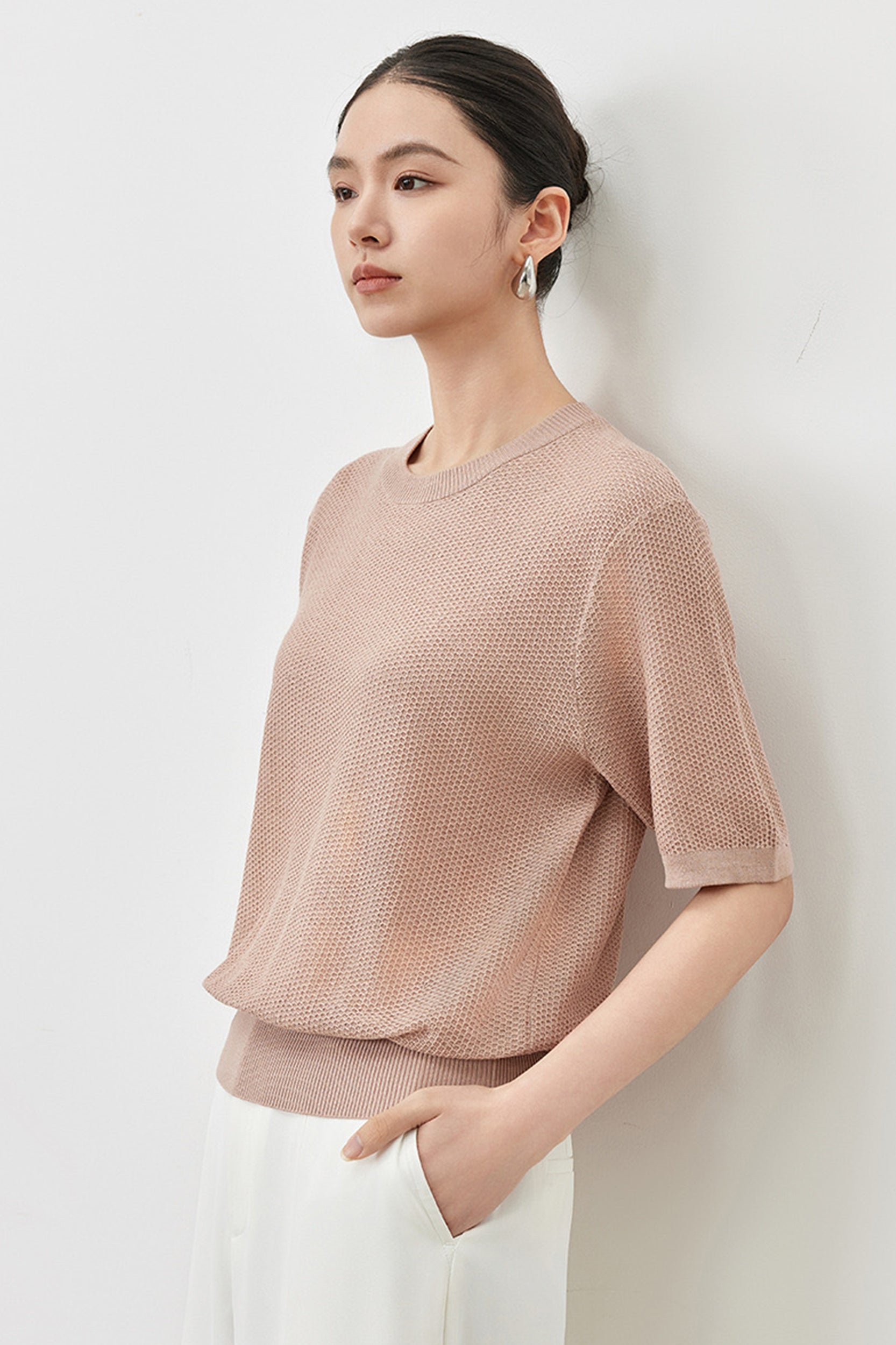 Waffle Texture Crew Neck Top