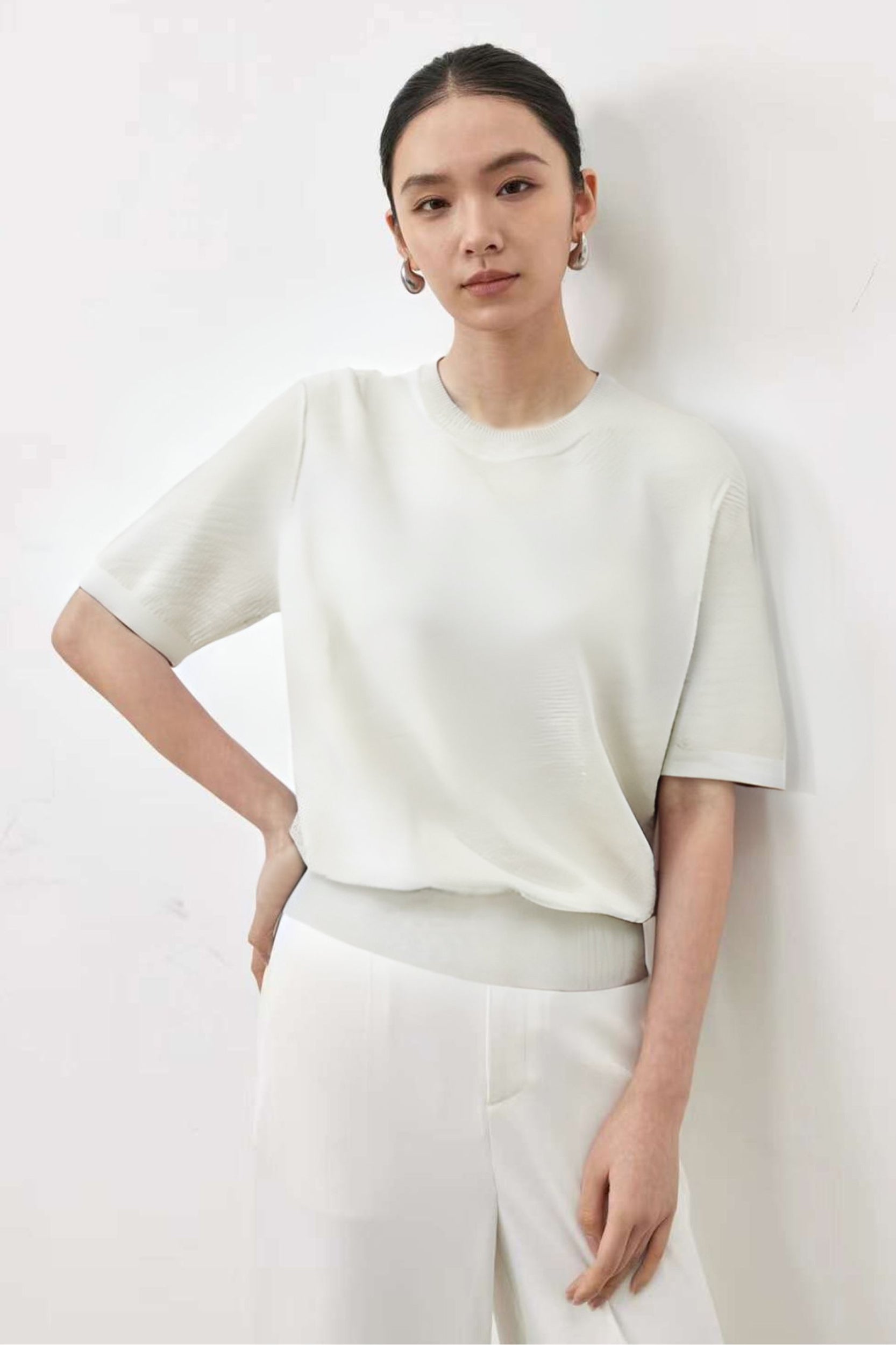 Elevate your style with the top, where luxury meets comfort. Crafted from a silky smooth cotton blend, it offers unparalleled softness. The waffle texture adds sophistication, while the classic crew neck and ribbed hem ensure timeless elegance.